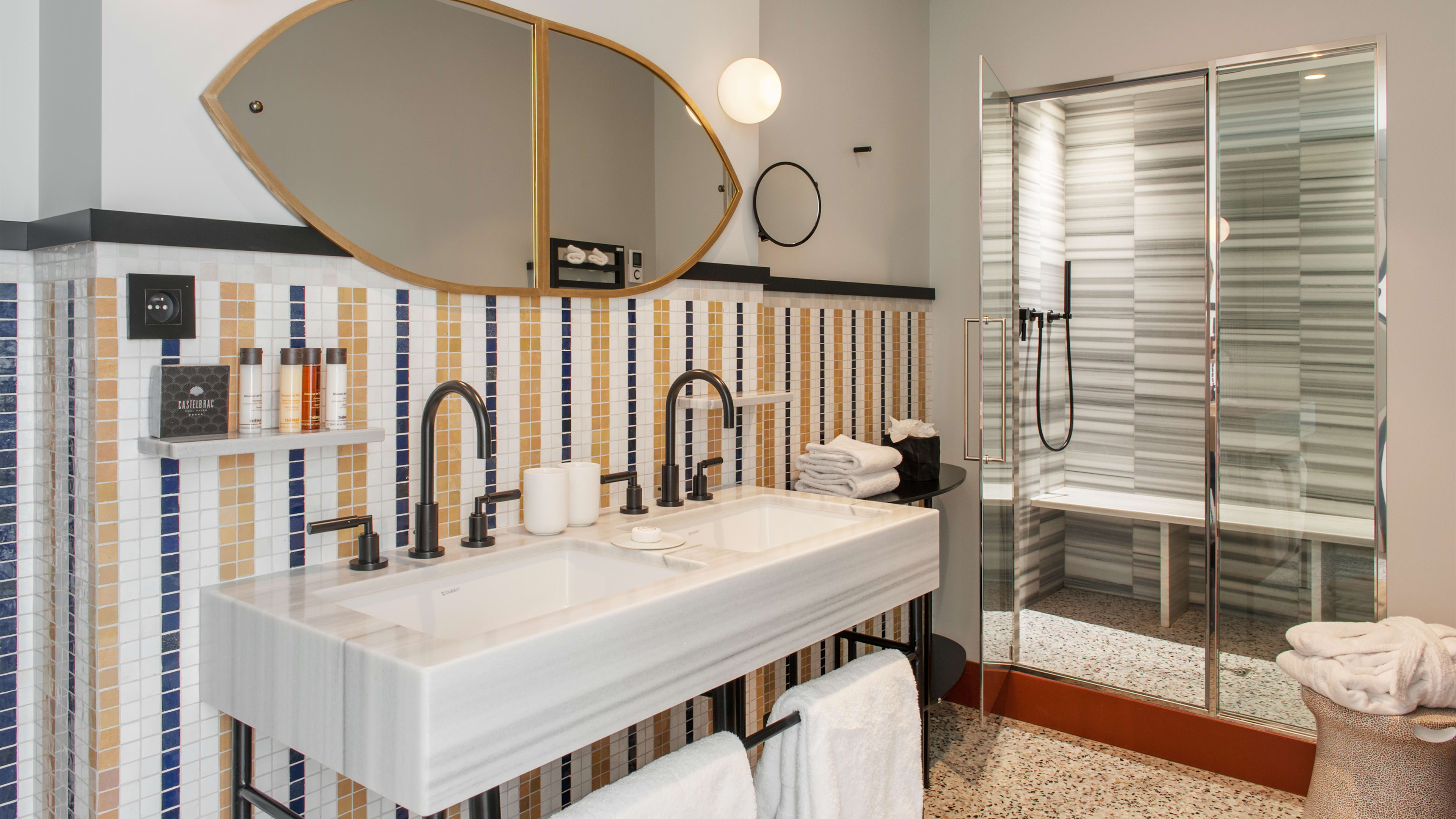 Luxury hotel Castelbrac, a Belle Époque aristocratic pile by Brittany’s coast, is a storybook stay with terraces and crenellated towers carved into a cliff face, so each room has breath-taking views of Prieuré Bay. Designers Sandra Benhamou and Léonie Alma Mason have kept the interior’s art-deco details, adding bold prints and a sea-inspired colour palette. Seafood is excellent here, and the porthole-lit bar gives new meaning to the term drink like a fish – although you should sip and savour the signature Breizh Mojitos – it was formerly an aquarium.