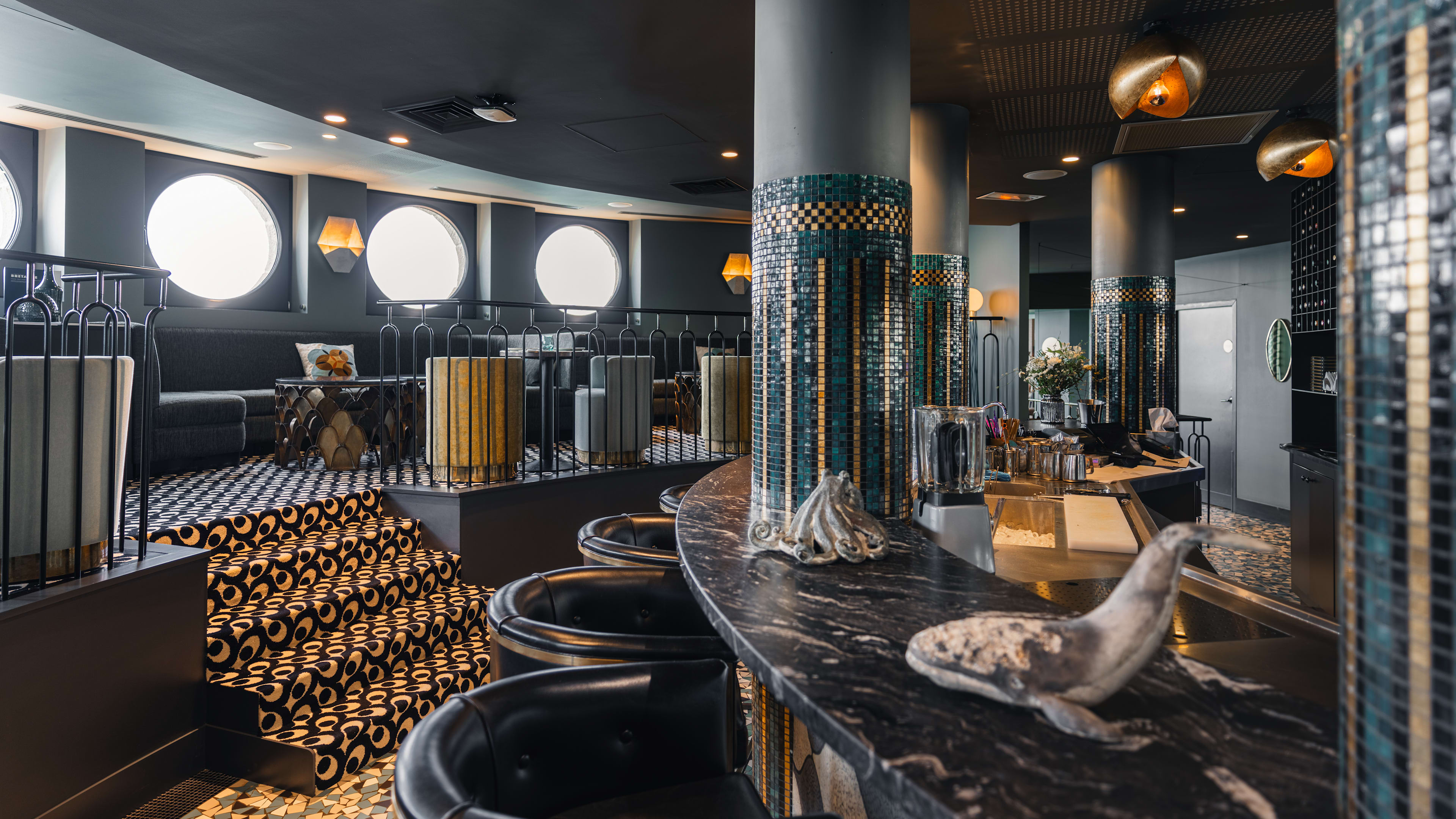 The dress circle of booths in the Aquarium Bar once housed glass tanks filled with specimens from Dinard Bay and beyond. Portholes – and the ornate ironwork doors – remain, but the fish have swum away. The signature Breizh Mojito has both of Brittany’s famed libations – calvados and cider – muddled with mint, lime and cane sugar. The champagne concoctions are fizzily fun too.