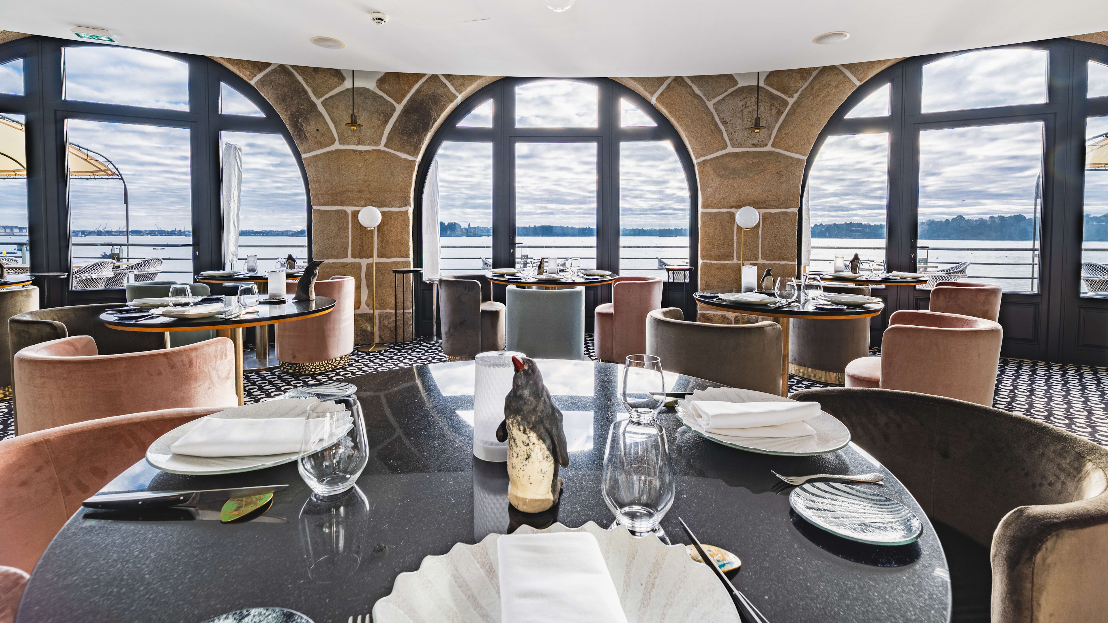 The hotel owner’s worked with Ducasse and Gagnaire, so standards are high; however, cosy conviviality is valued over shooting for Michelin stardom. In winter the Pourquoi Pas restaurant opens (named after Arctic explorer Jean-Baptiste Charcot’s ship), decked out in sea blues, greens and first-light yellows. Ingredients are sourced within 25km of the hotel, and the chef’s on first-name terms with local fisherman, farmers and bakers. Tasting and lobster menus give a glimpse of Brittany’s delicacies, and desserts are sweetly inventive. In summer light seafood and salad dishes are served on the Aquarium Terrace, one floor below.