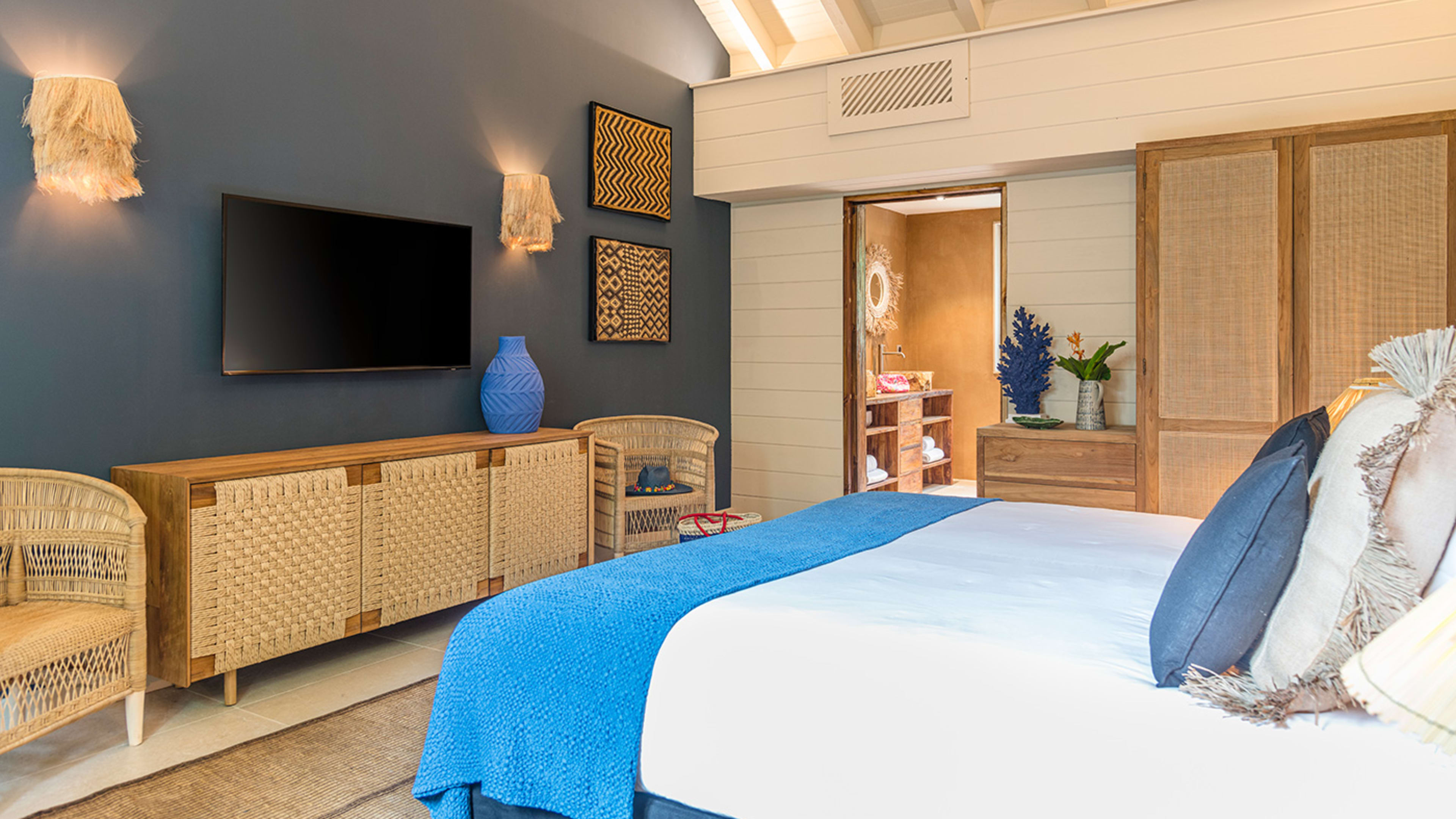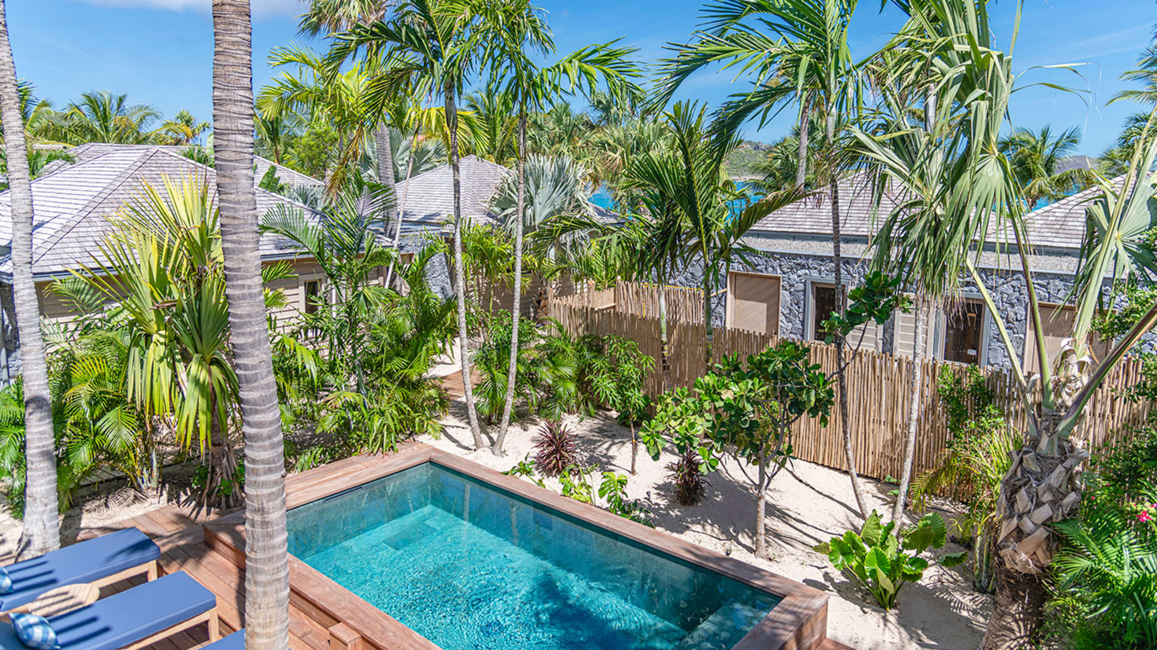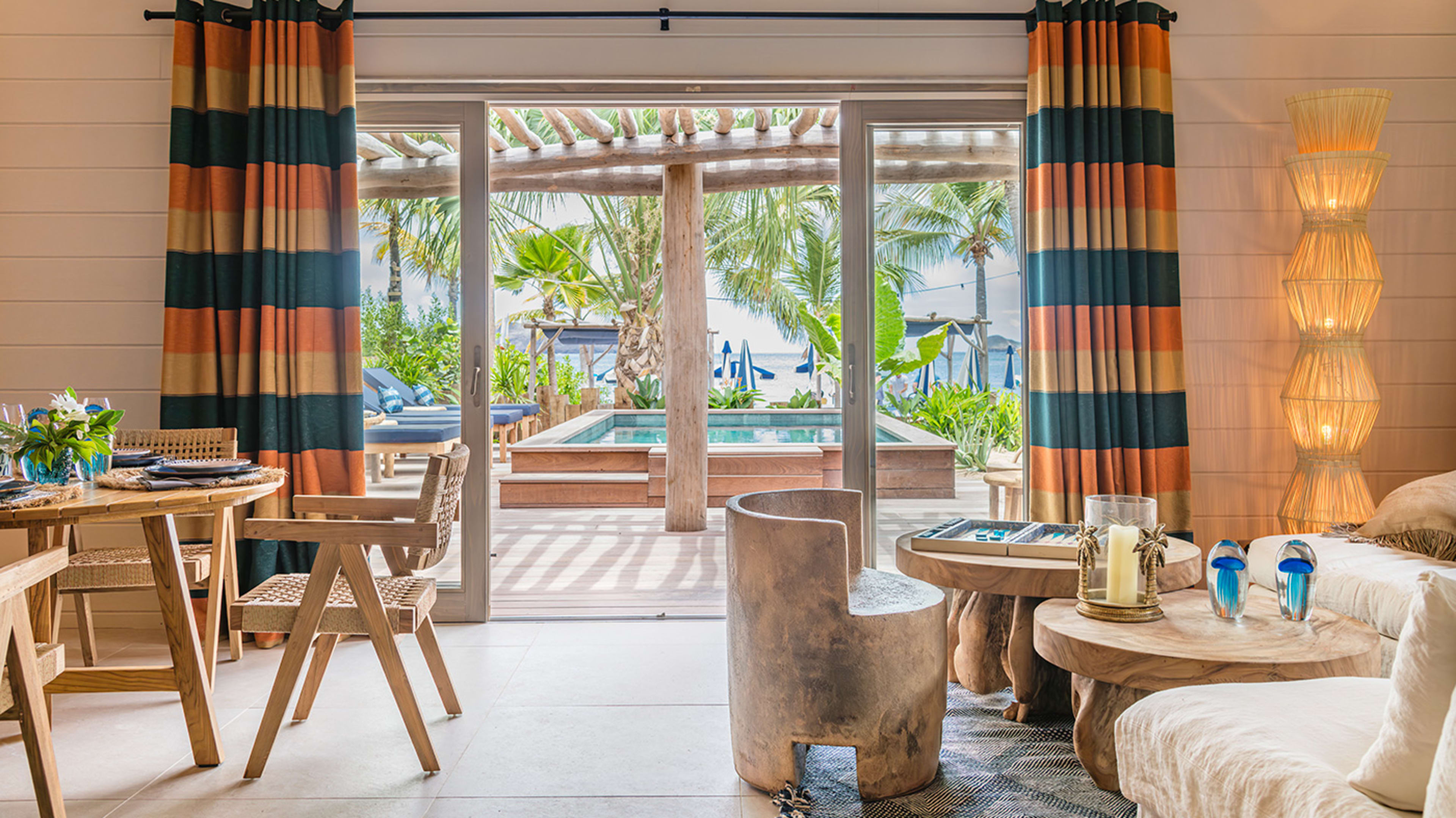 Rates include transfers to the airport or dock, à la carte breakfast. Hotel guests (excluding those in a beach house) can use sunloungers for free at Gyp Sea beach club, too (located a 10-minute drive from the hotel).