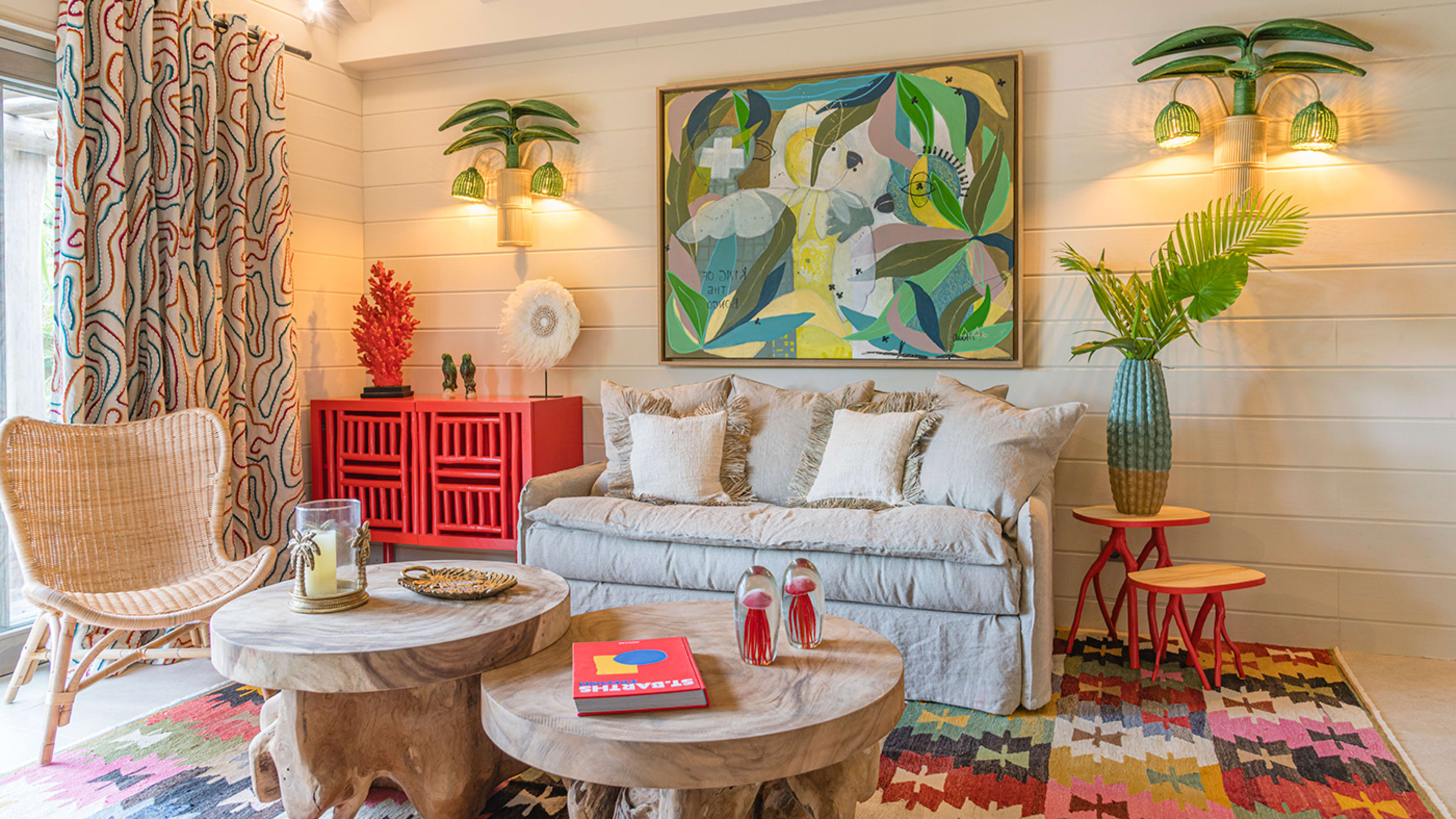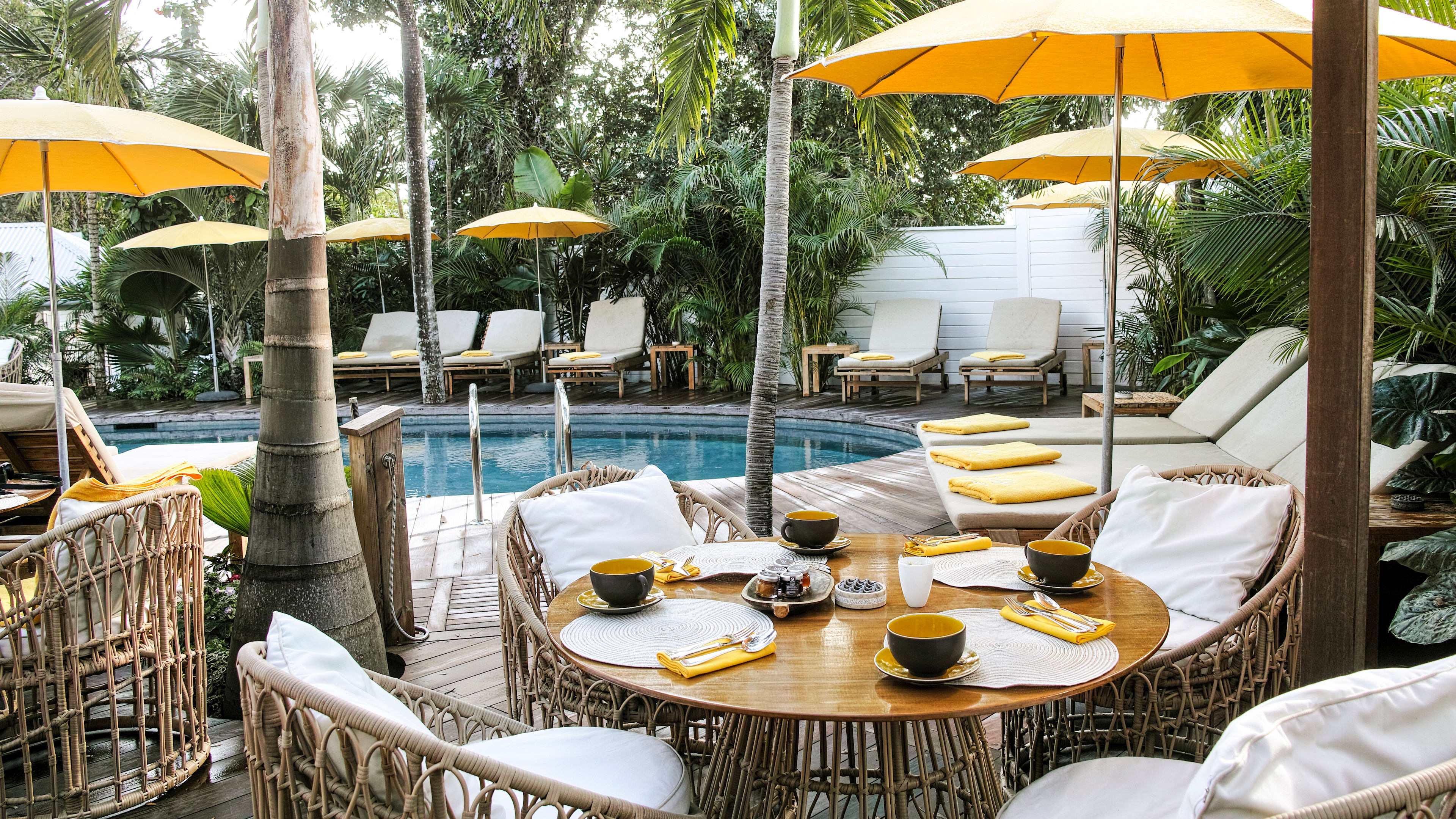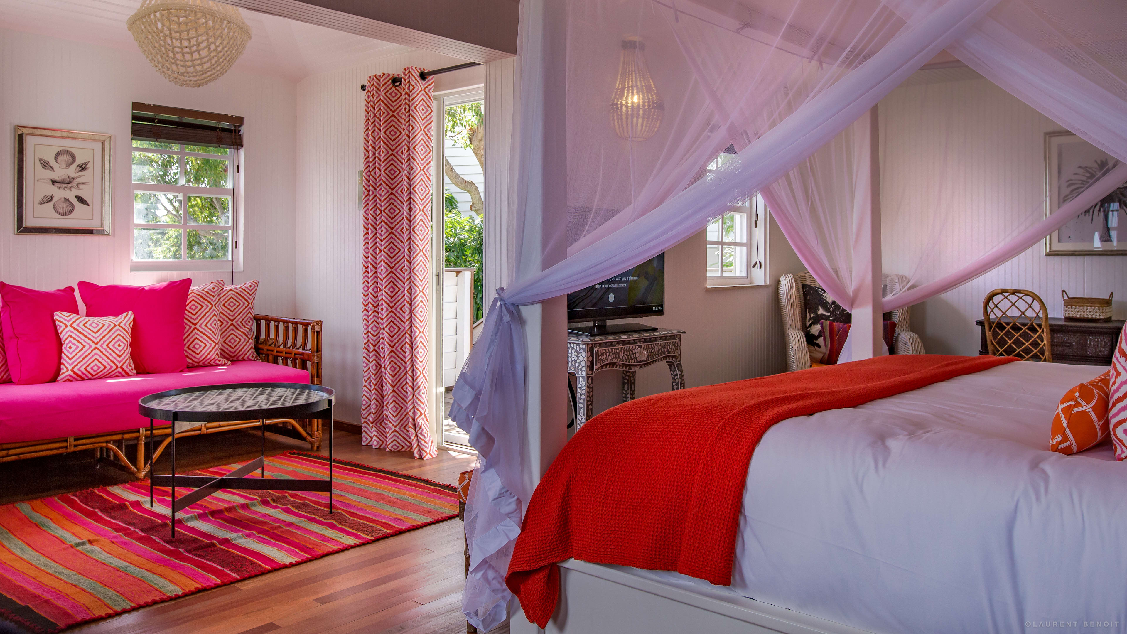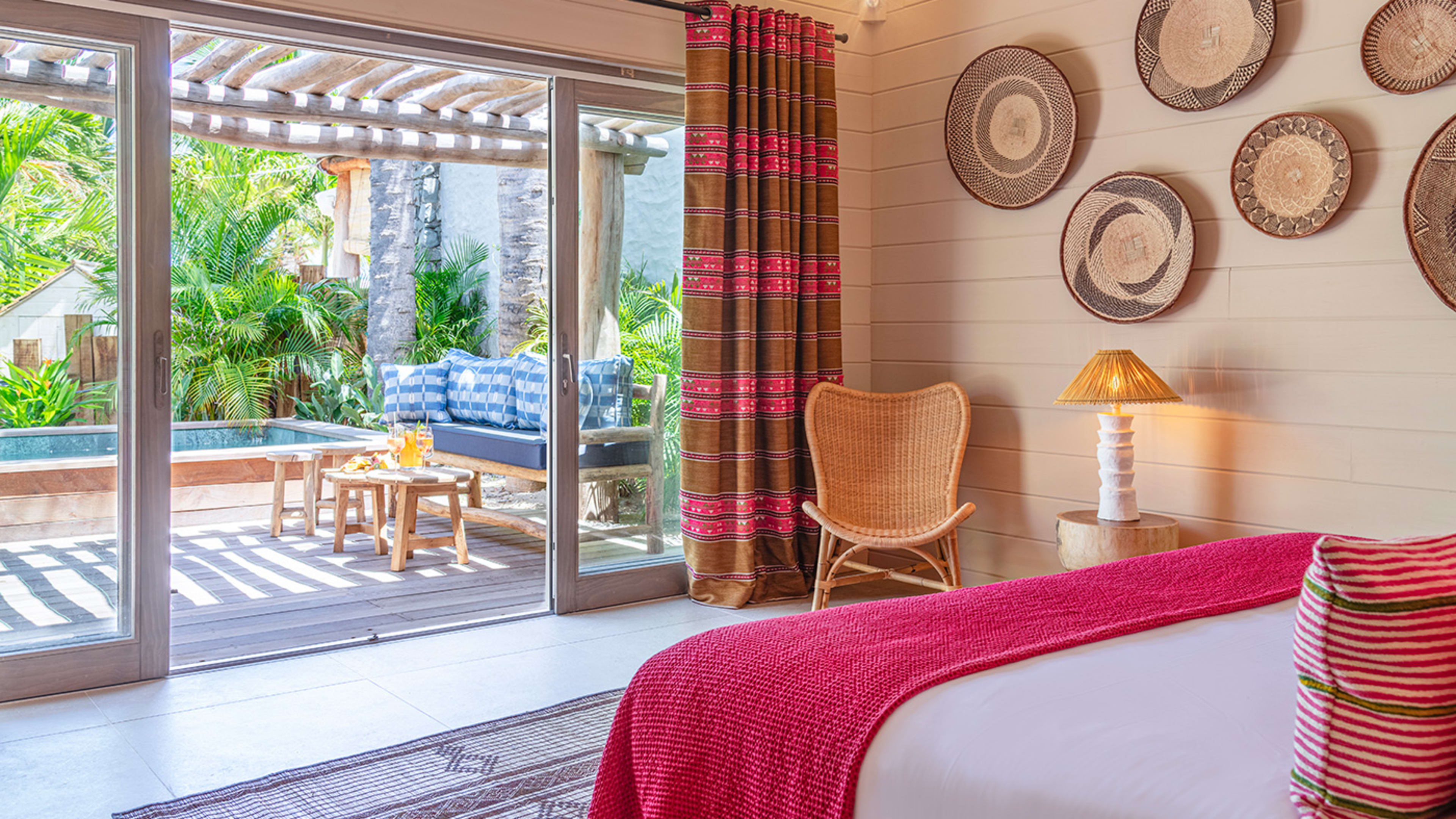 Cacti, mango trees and blooming bougainvillea surround the outdoor pool area that’s more vivid than a Pantone colour guide. Take a refreshing dip in the heated turquoise pool, then let the sun shine down on you as you recline below a lemon-yellow parasol, gazing up at clear-blue skies and lush green foliage; set beneath towering palm and banana trees, there’s always a shaded spot for some sunbathing.