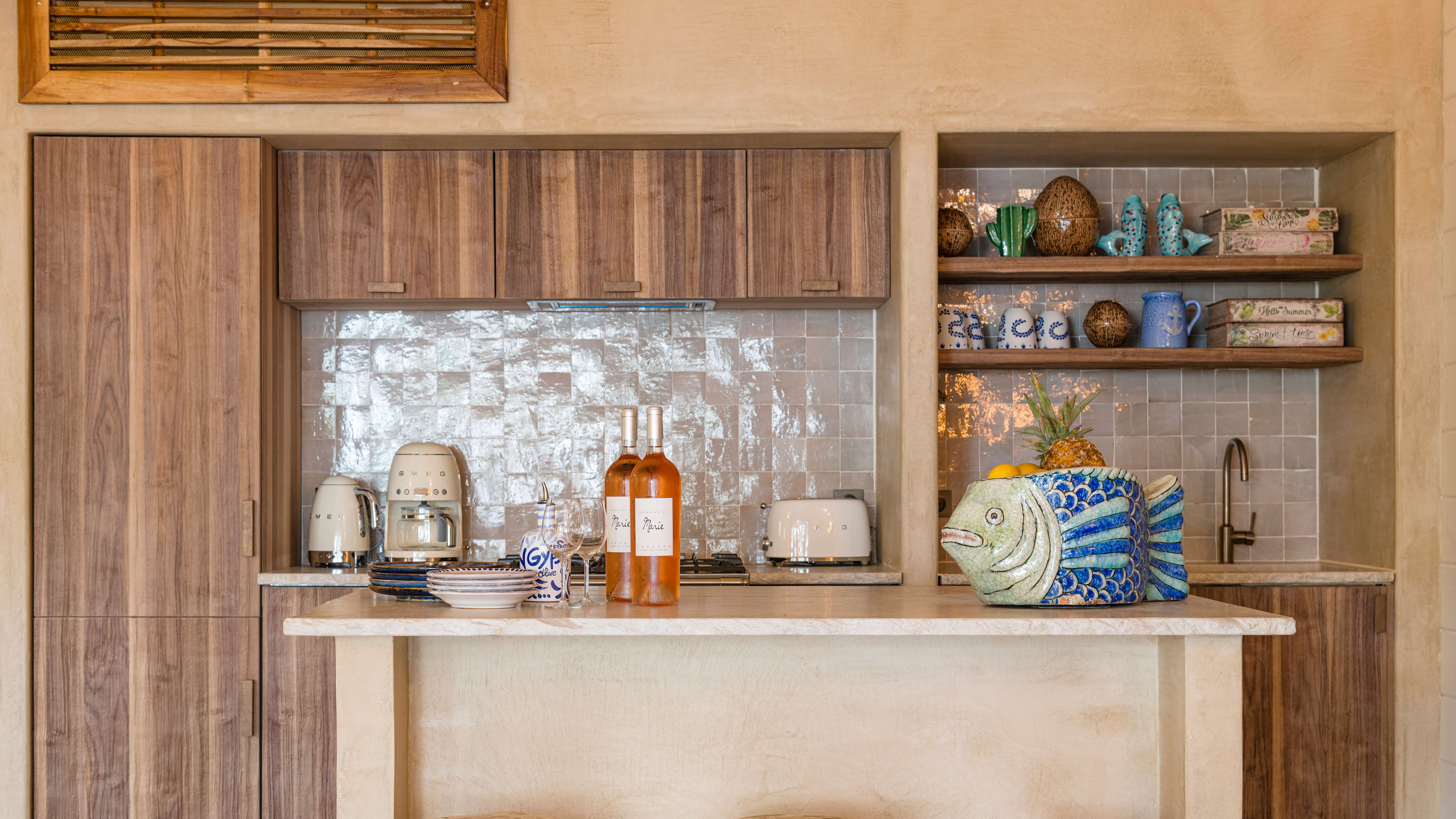 Grab a bite to eat by the pool, in the garden or in one of the lounges with light bites, such as ceasar salads, cajun grilled prawns and halloumi fries at your disposal. The laid-back beach club serves under the dim light of blue hues and hand-woven hanging lights. Playful prints, beamed ceilings and dark wood tables add a Caribbean-spin to the otherwise Amalfi-esque design. Classico Mediterranean fare – think fresh truffle pasta and zucchini carpaccio – is served alongside grilled fresh fish, spicy prawn skewers and delectable desserts. Come evening, opt for a more private dining experience at the Chef’s Table at the Hotel, where bespoke menus showcase Mediterranean and Caribbean cuisine.