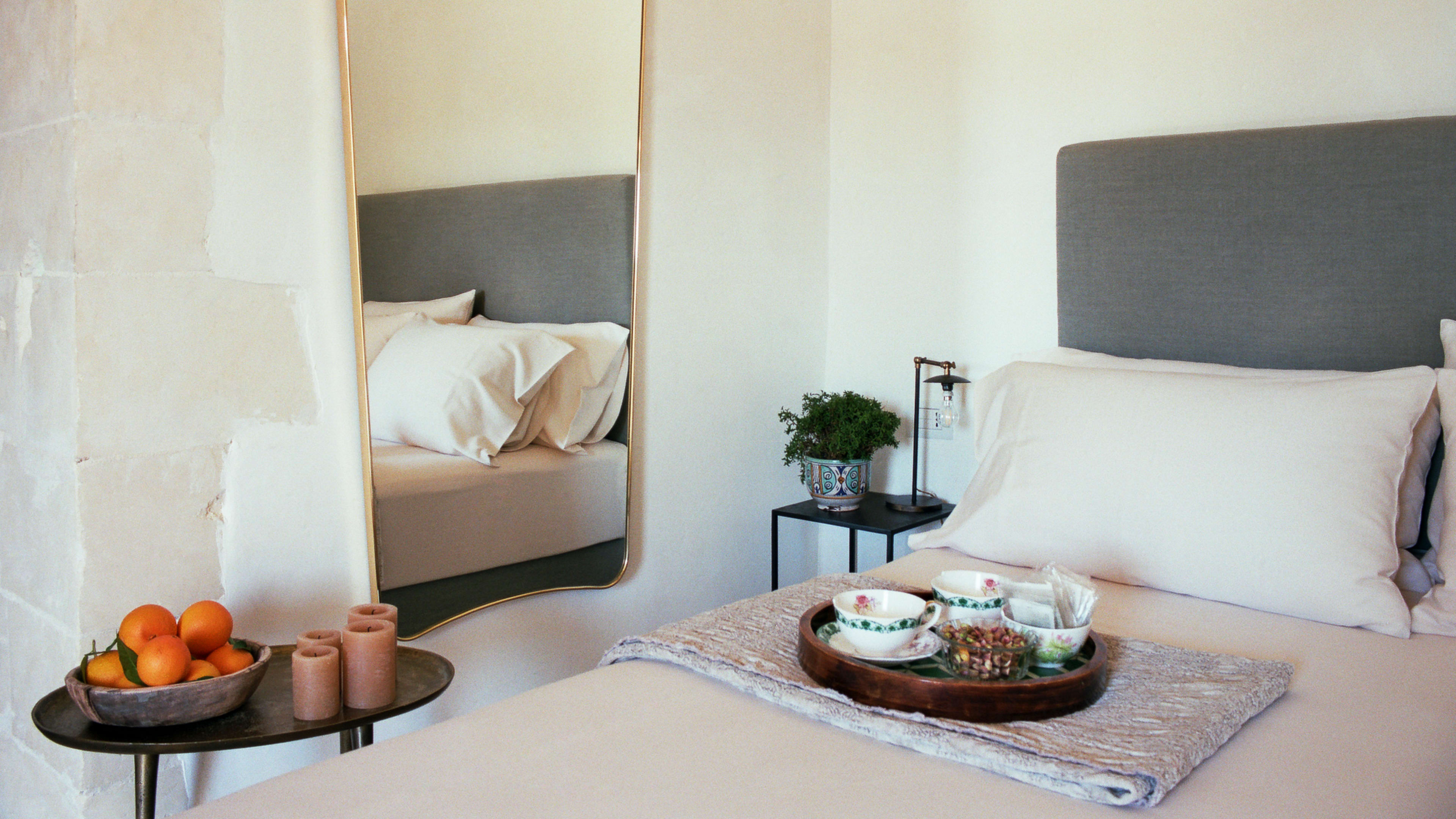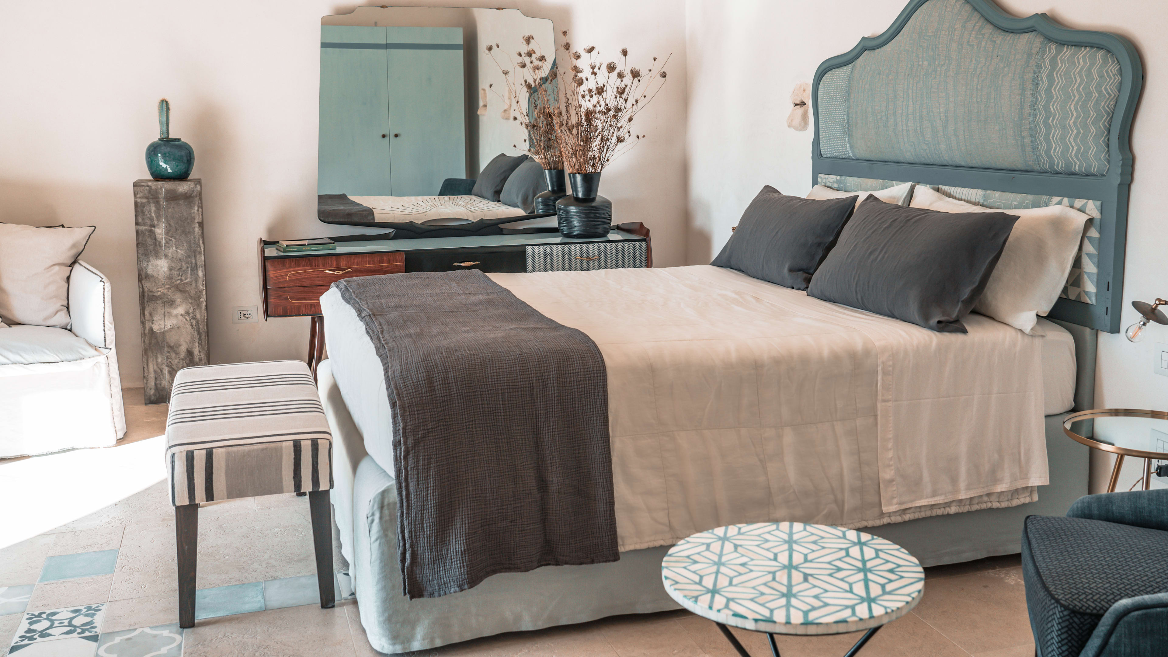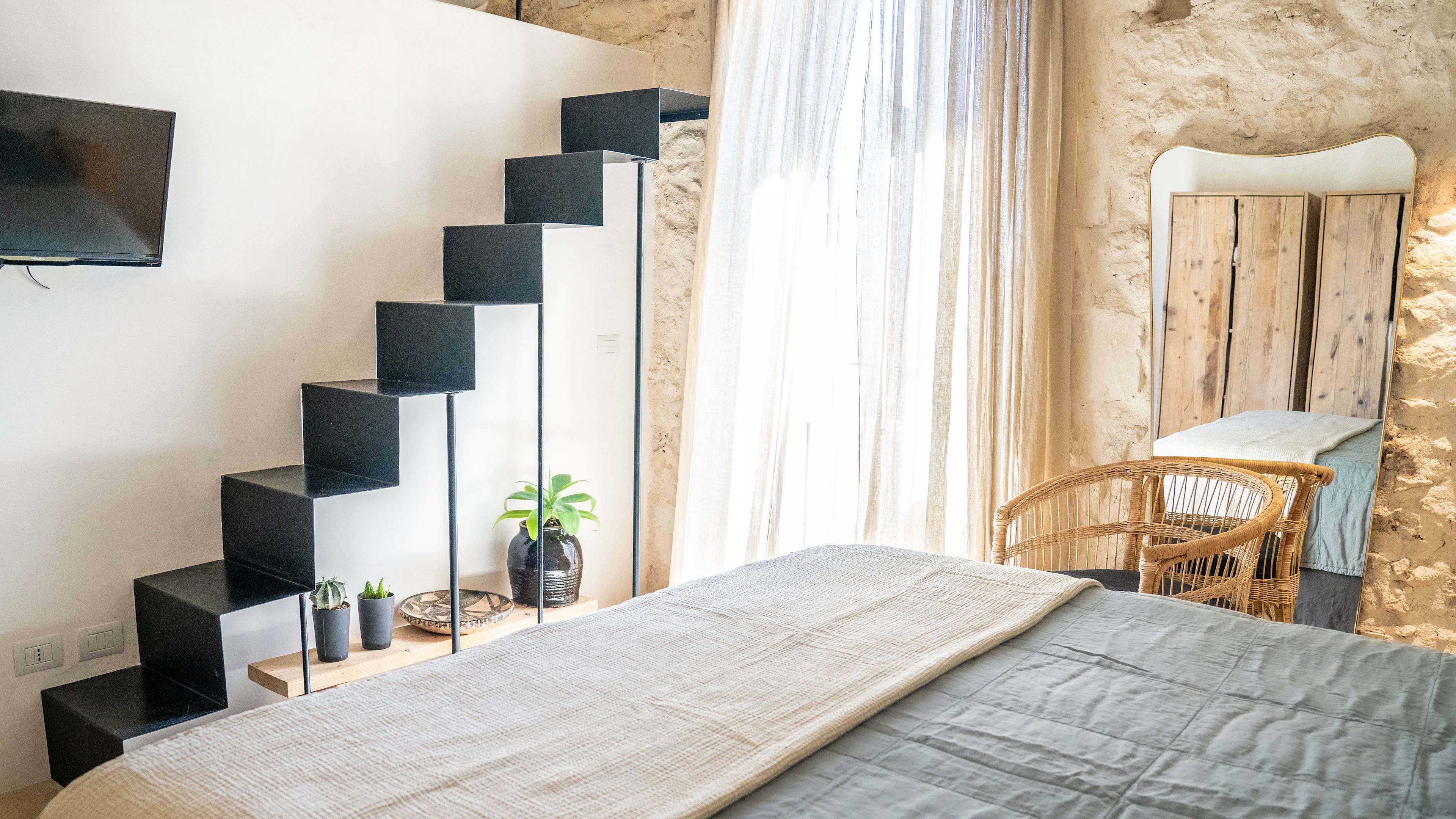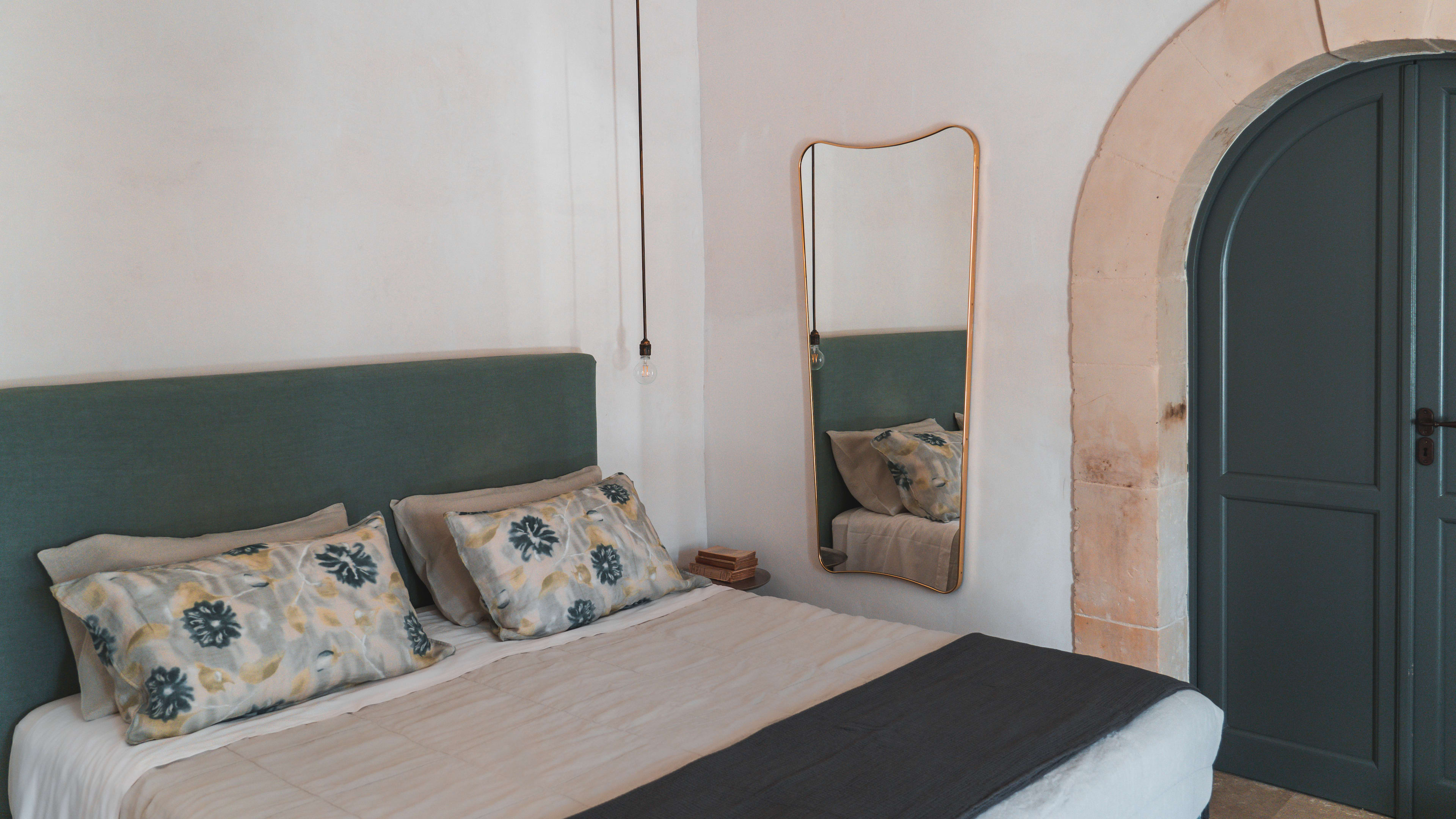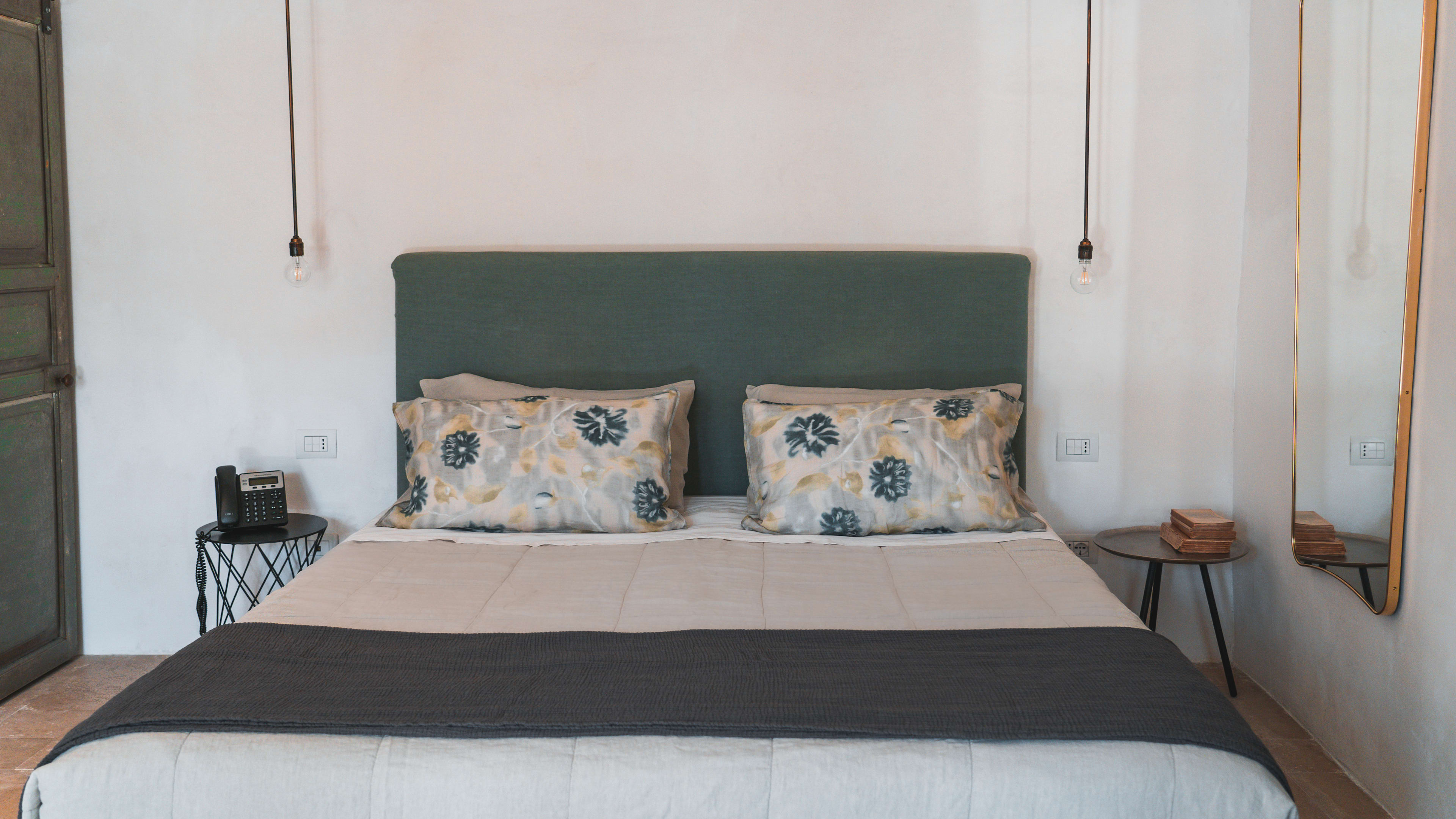 Each room is named for a work of Sicilian art, with a unique story and design. Many have restored frescoes and most have terraces or gardens. Clandestini, named for works by Giovanni Iudice, sits atop the tower, with prime valley views and a small balcony. L'Annunciata, named for a painting by Antonello da Messina, is the most romantic space, with a crystal chandelier and a spacious terrace.