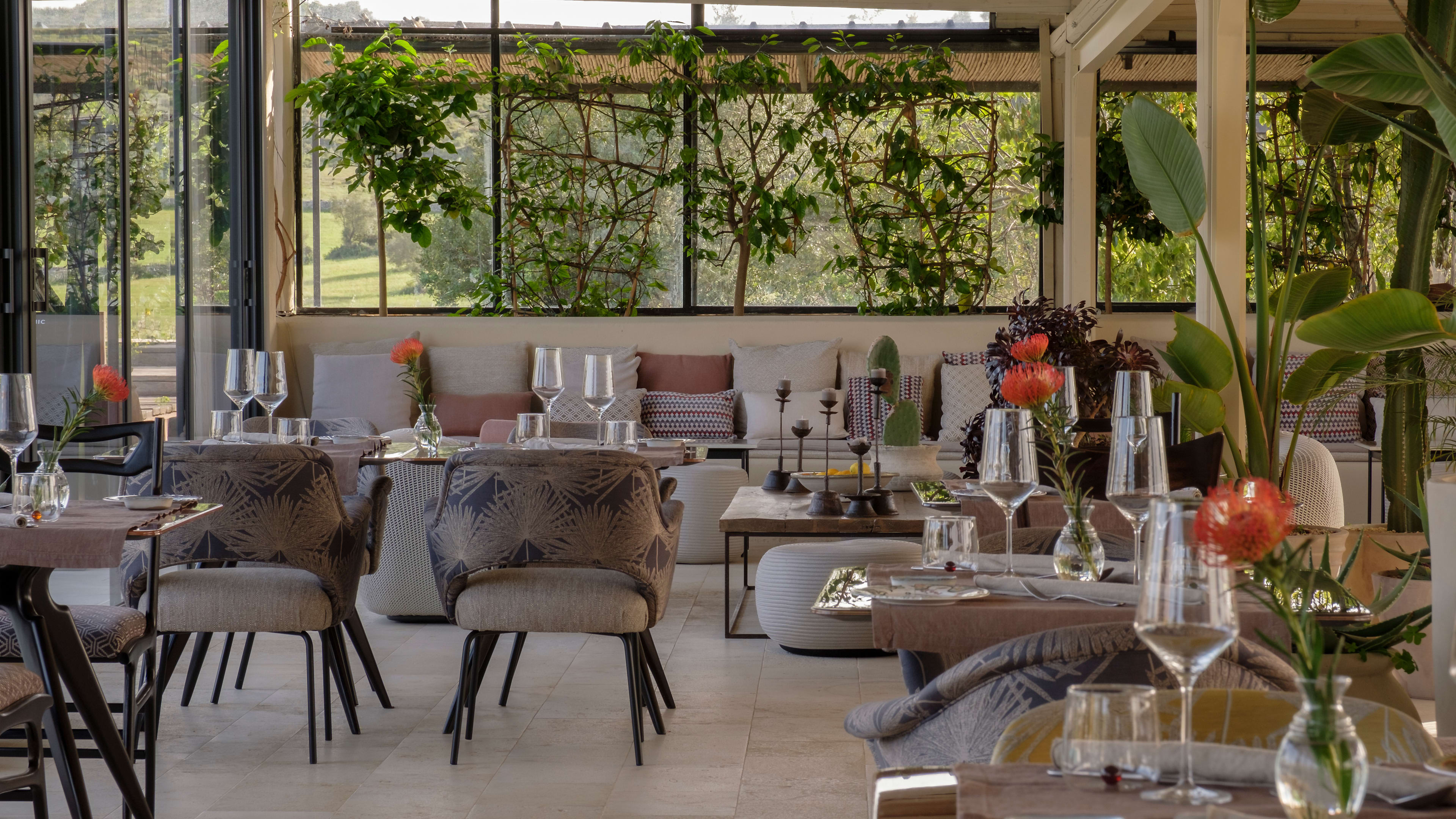 Set beneath a pergola in the Limonaia area overlooking verdant fields, the pool bar and lounge is open throughout the day, serving modern Sicilian dishes, with many ingredients coming straight from the property’s organic gardens for cold salads and seasonal specials.