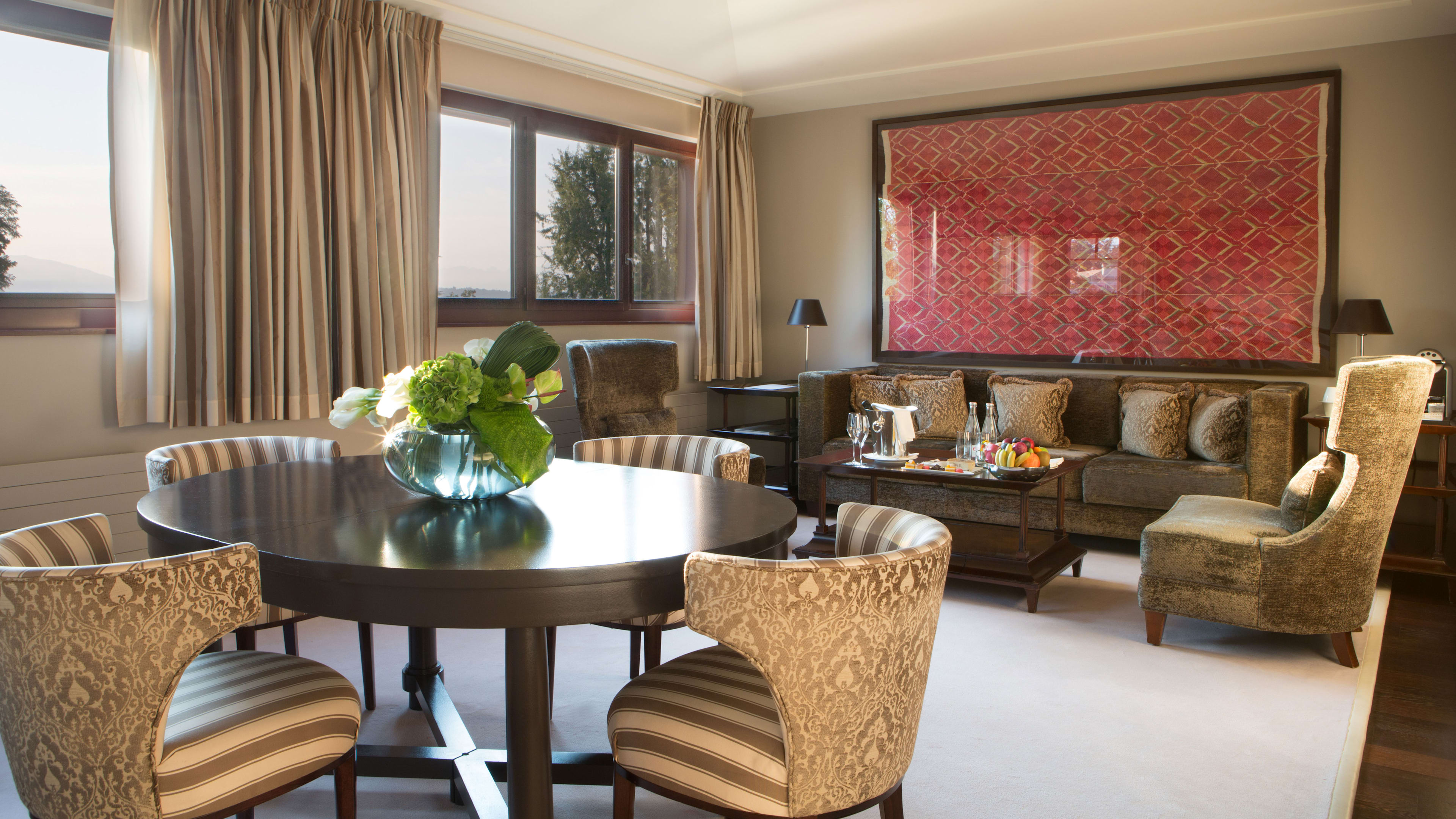 There are four restaurants to choose from: Tsé Fung, the Loti Restaurant & Bar, Café Lauren and the Lodge. You’re in for a fine-dining Cantonese treat at Tsé Fung, the only Michelin-starred Chinese restaurant in Switzerland: draped in red velvet and silk hangings, the restaurant echoes the glamour of a 1930s Shanghai grand palace hotel. It’s helmed by chef Frank Xu and at every dinner, a selection of his signature dishes are served at the centre of the table to be shared family style. Taking style cues from an enchanted forest, the Loti dishes out international cuisine – crispy langoustines, creamy risottos and tender steaks – throughout the day and a seriously decadent Sunday brunch. There's afternoon tea and tapas plates too and live music every Wednesday and Thursday plus seasonal events. It’s also a breakfast hub, although your morning meal can easily be served in Café Lauren or the bar if you’d prefer. Health-conscious Café Lauren is, appropriately, in the spa, so perfectly pampered guests can pad over between treatments. It’s open for luxuriously late breakfasts and lunches; order egg-white omelettes, fruit-filled smoothies and prettily plated salads. Come summer, the Lodge’s menu is chock full of marine flavours and fresh salads. With a laid-back atmosphere and a mouth-watering tapas menu to boot, it makes a fine spot to while away those long, sunny afternoons under the Genevese sun.