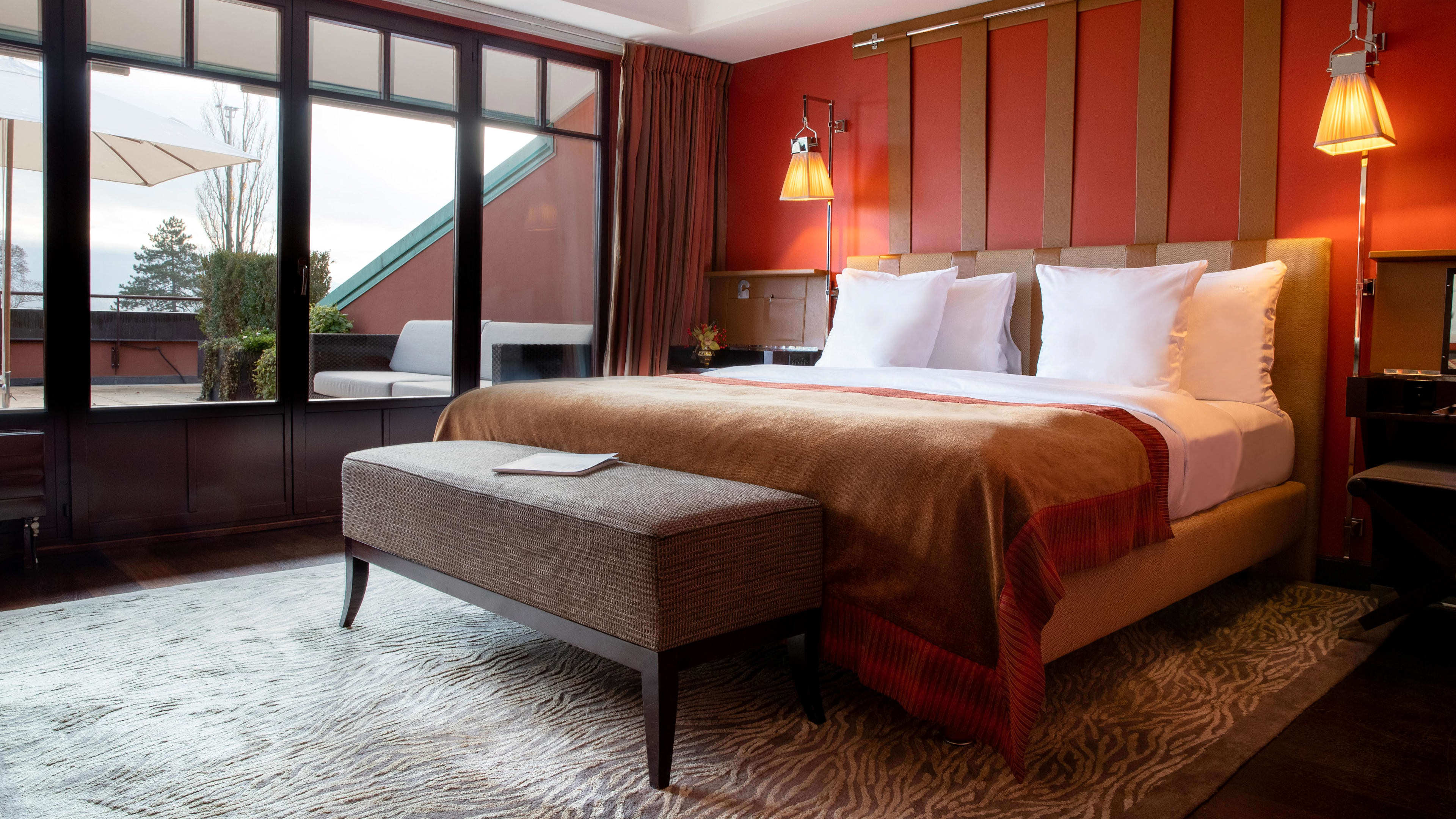 Genève-Cornavin station is five kilometres away. Private transfers can be arranged for CHF85 (in a Mercedes E-Class) or CHF115 (in a Mercedes S-Class or V-Class); there’s a CHF30 surcharge for transfers between 8pm and 8am.
