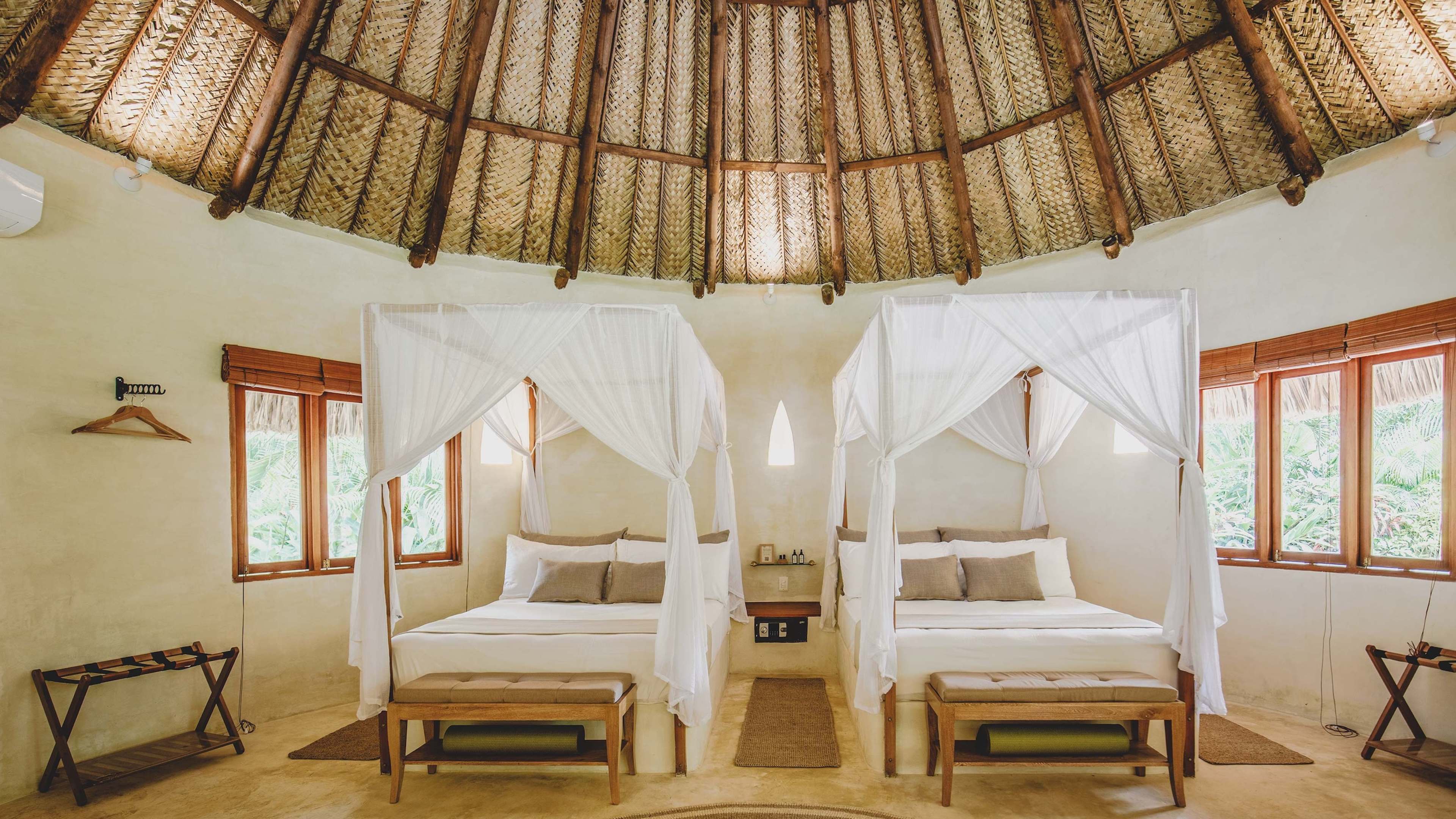 There’s no pool but each palapa has its own hot tub that can be filled on request. Staff will also gladly set up sunloungers on the banks of the Palomino River, where you can spot the howler monkeys swinging between the trees and follow the steps down to the water for a dip.