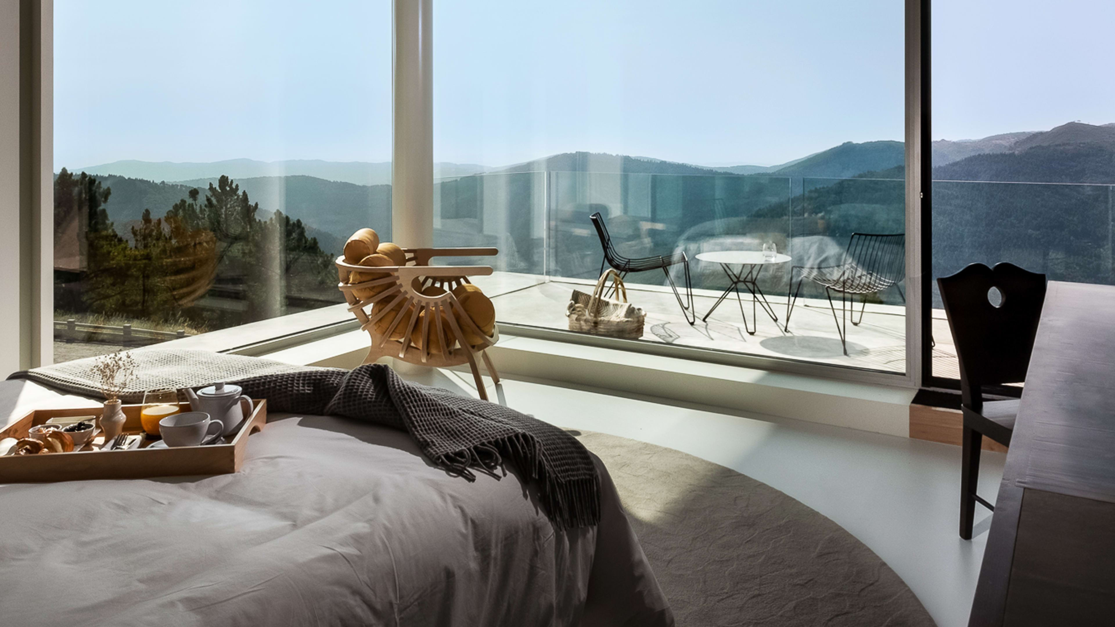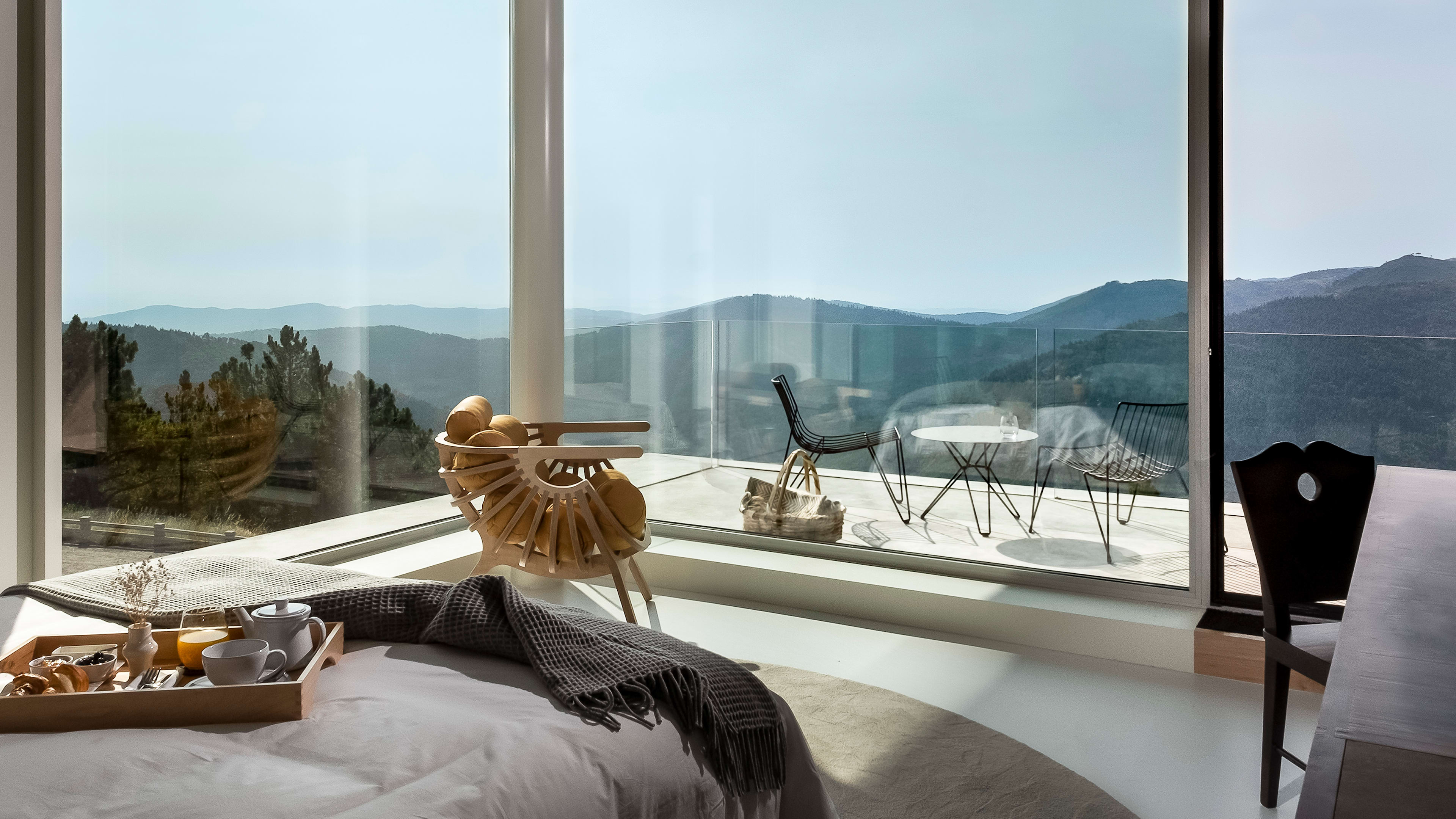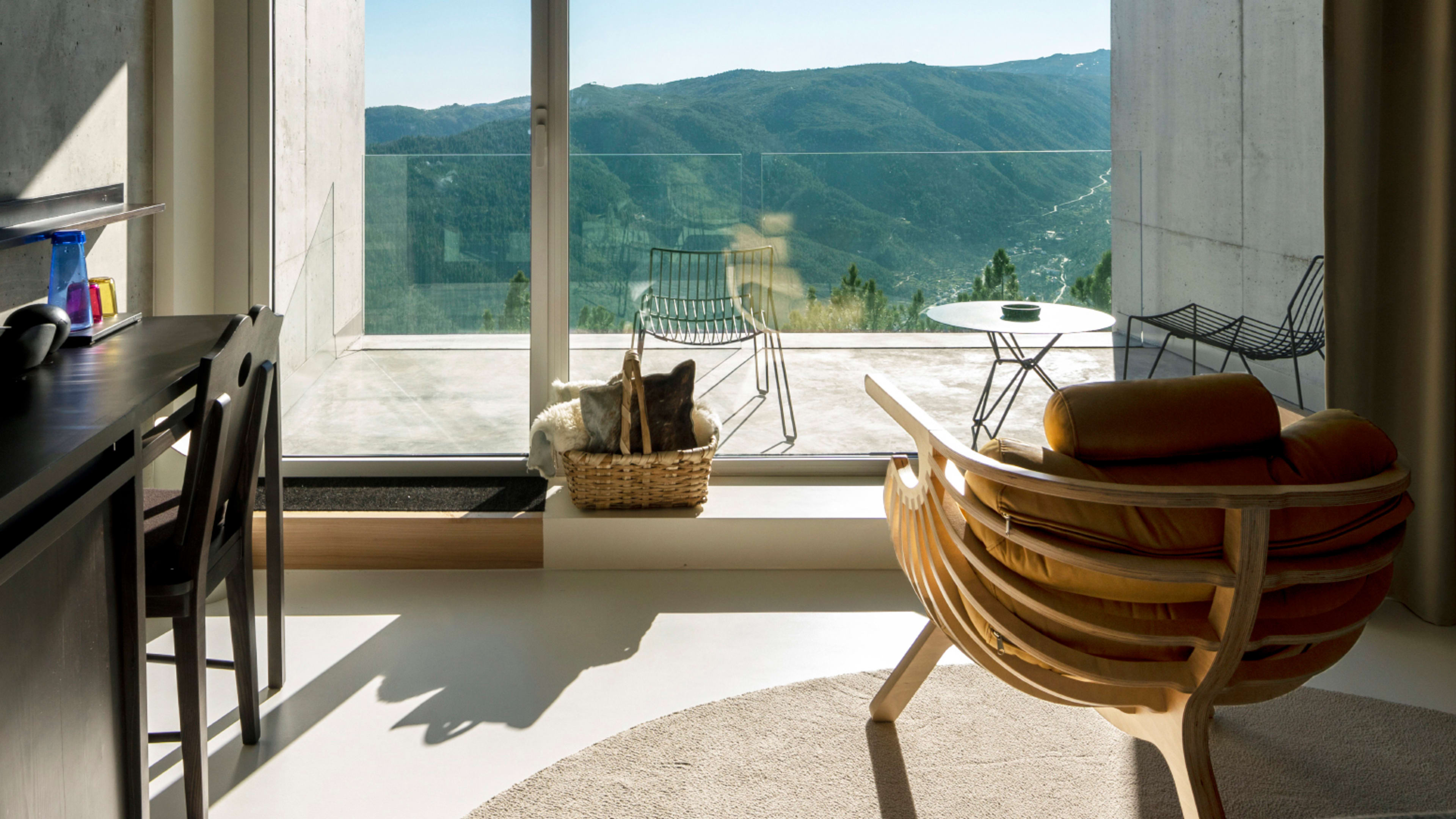 Meals are served in the hotel’s glass-fronted restaurant with jaw-dropping views, where head chef Manuel Figueira reimagines rustic Portugese dishes. Above the tables is a constellation of burel stars in autumnal hues – the art installation pays homage to the history of the wool industry in this shepherding region. The trad-with-a-twist dishes include fish soup with a puff-pie pastry topper, goat grilled over hot coals and perfectly executed flans for dessert.