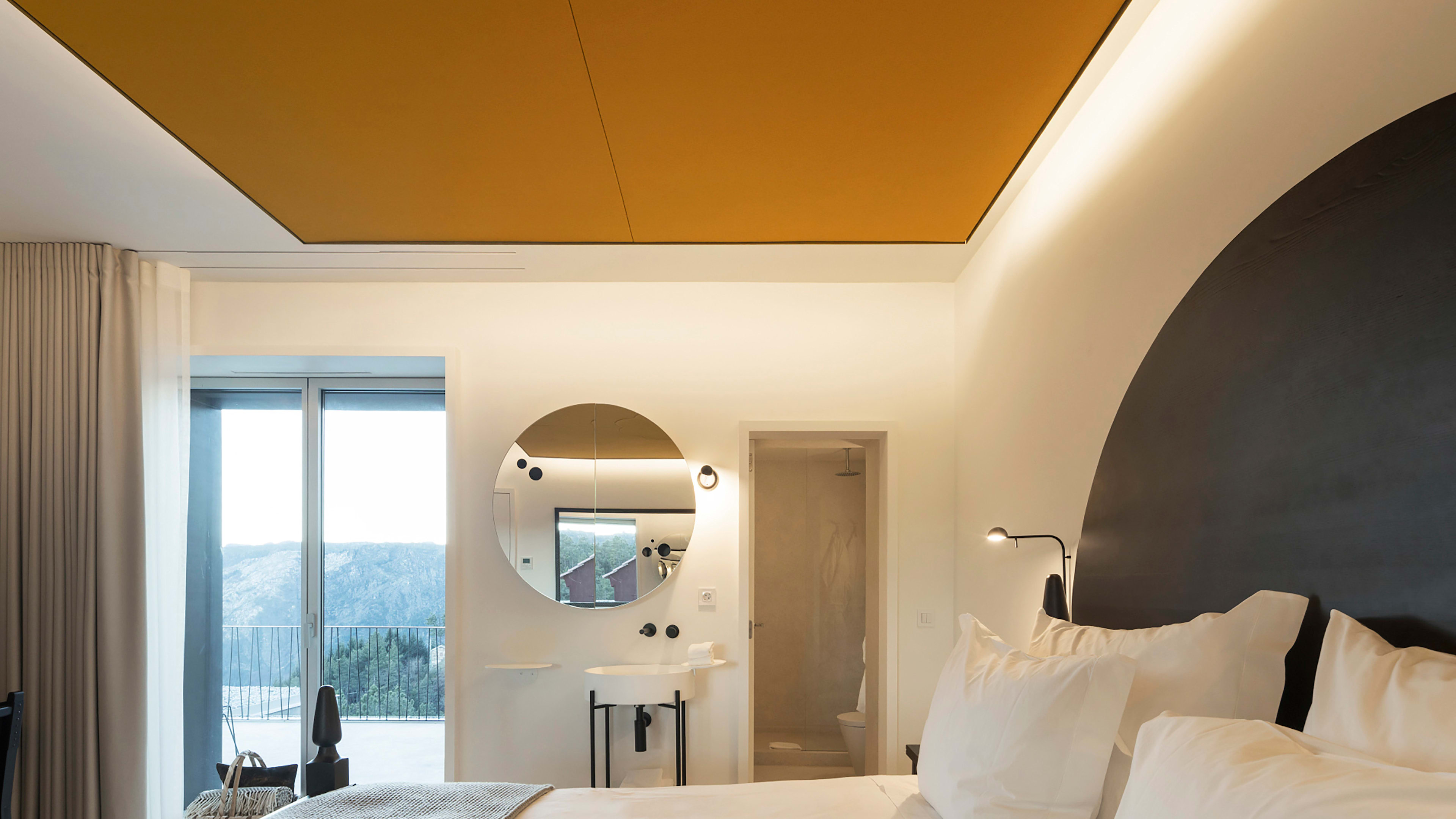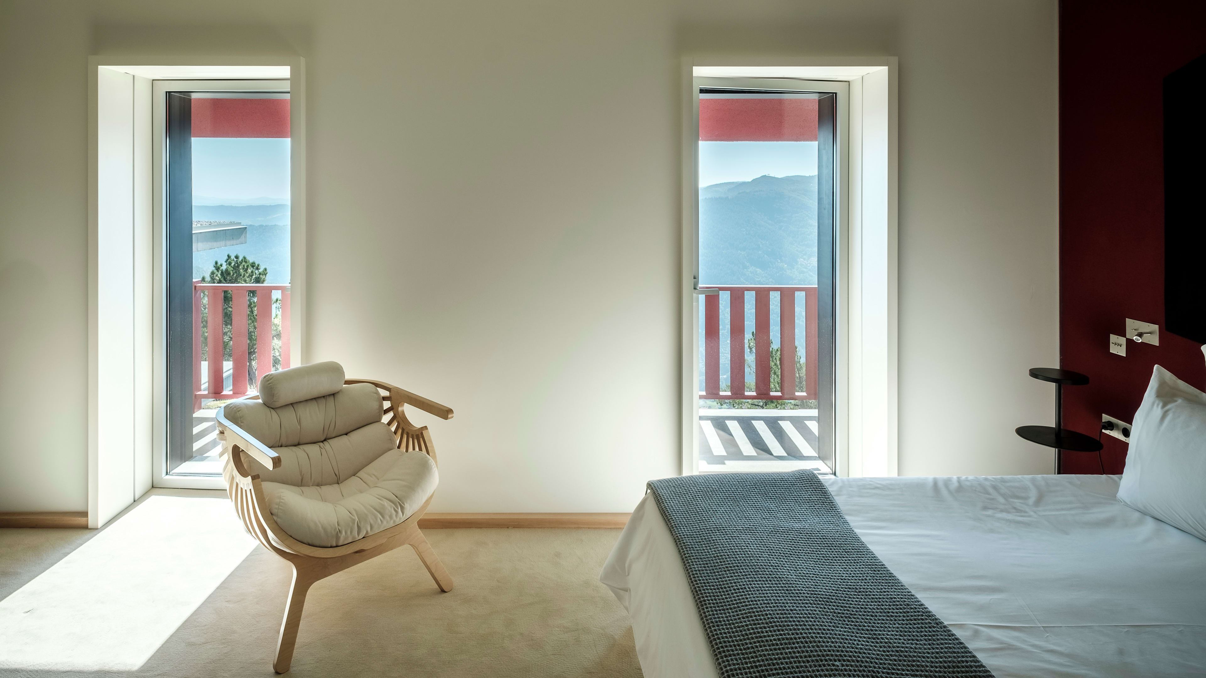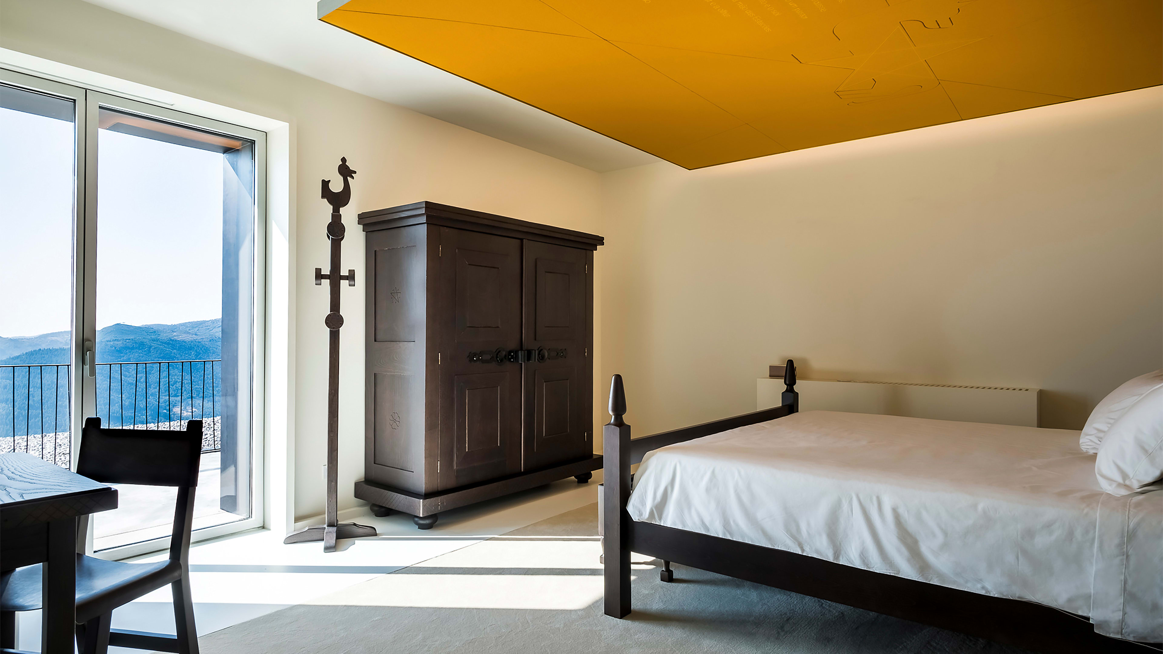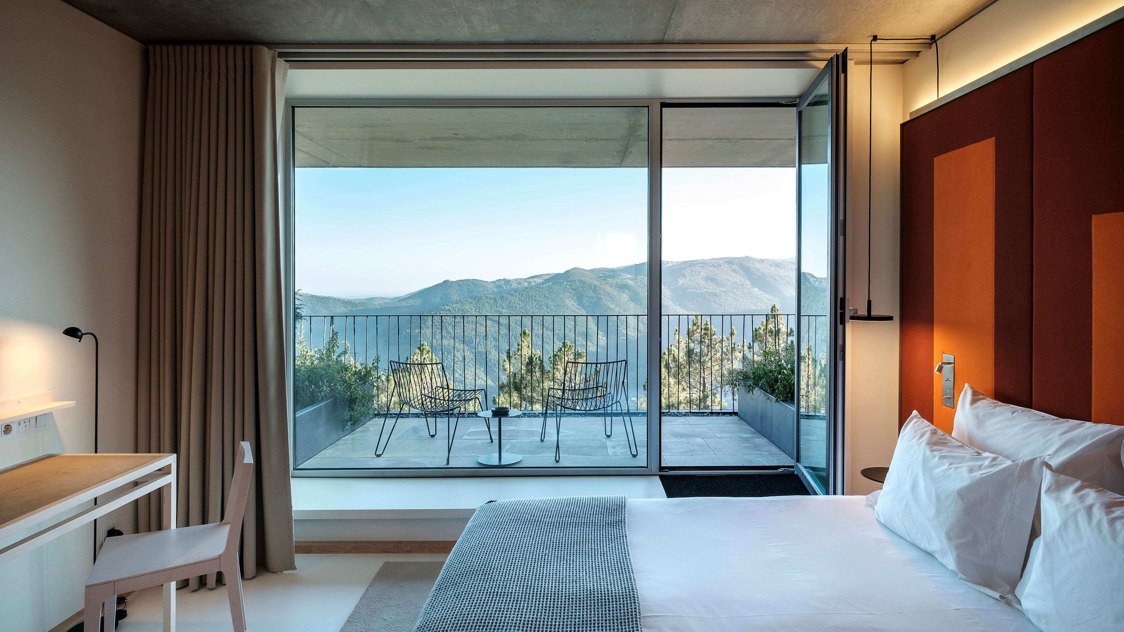Meals are served in the hotel’s glass-fronted restaurant with jaw-dropping views, where head chef Manuel Figueira reimagines rustic Portugese dishes. Above the tables is a constellation of burel stars in autumnal hues – the art installation pays homage to the history of the wool industry in this shepherding region. The trad-with-a-twist dishes include fish soup with a puff-pie pastry topper, goat grilled over hot coals and perfectly executed flans for dessert.