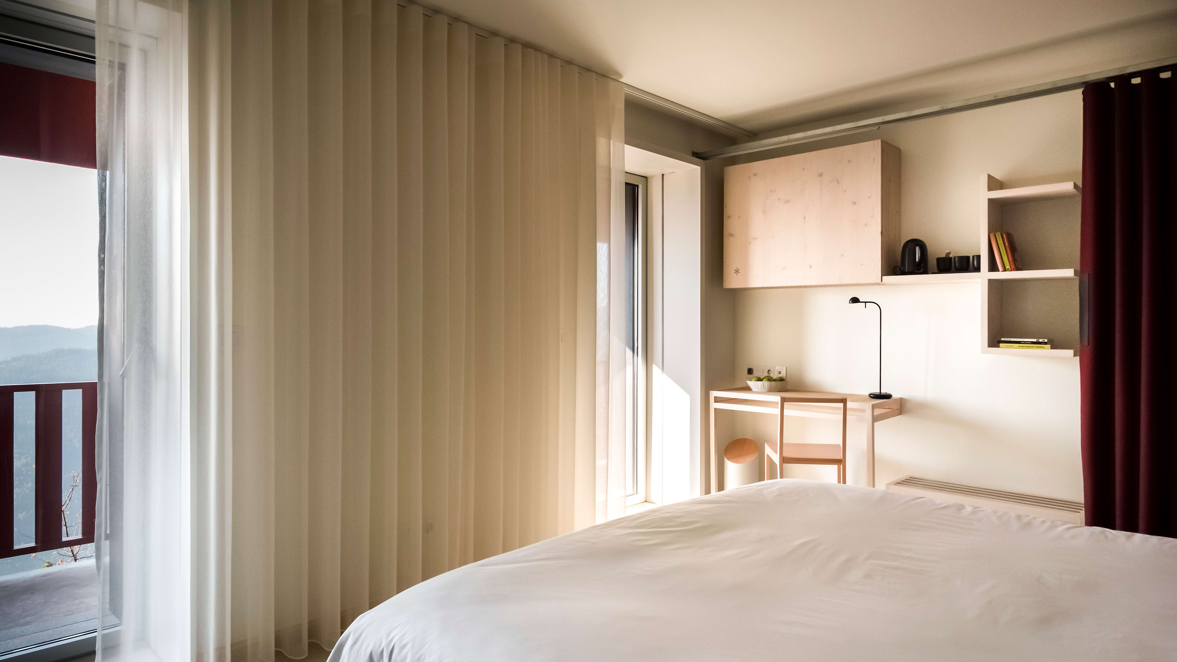 We’re particularly partial to the Premium Panorama Room which lives up to its billing thanks to cinematic valley views from the furnished private terrace. The Instagrammable interiors are set off by soothing burel panels in slate grey.