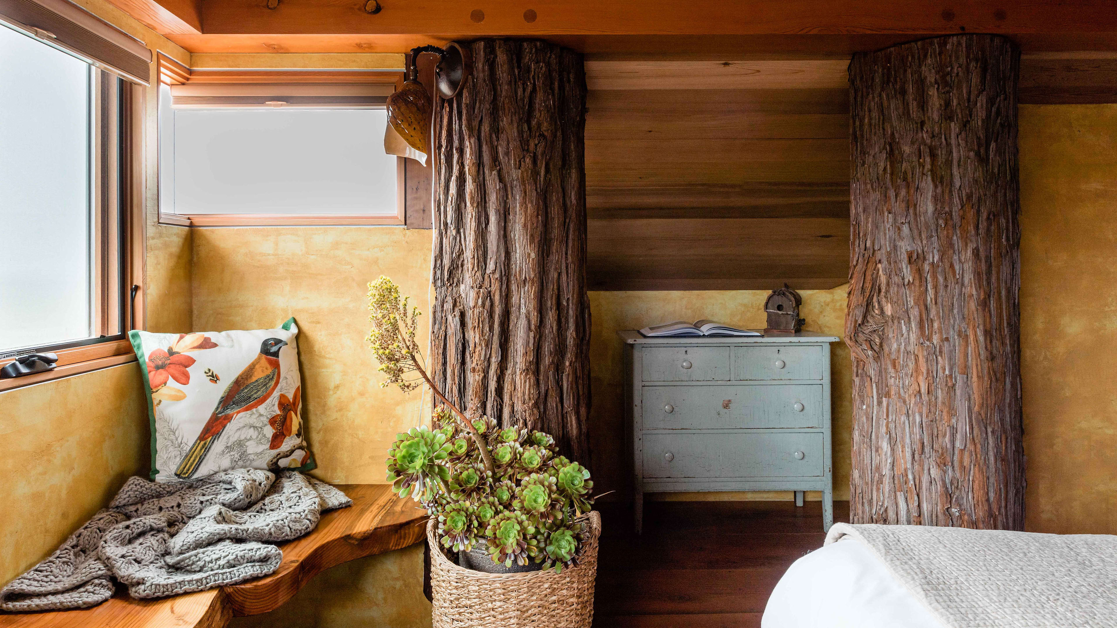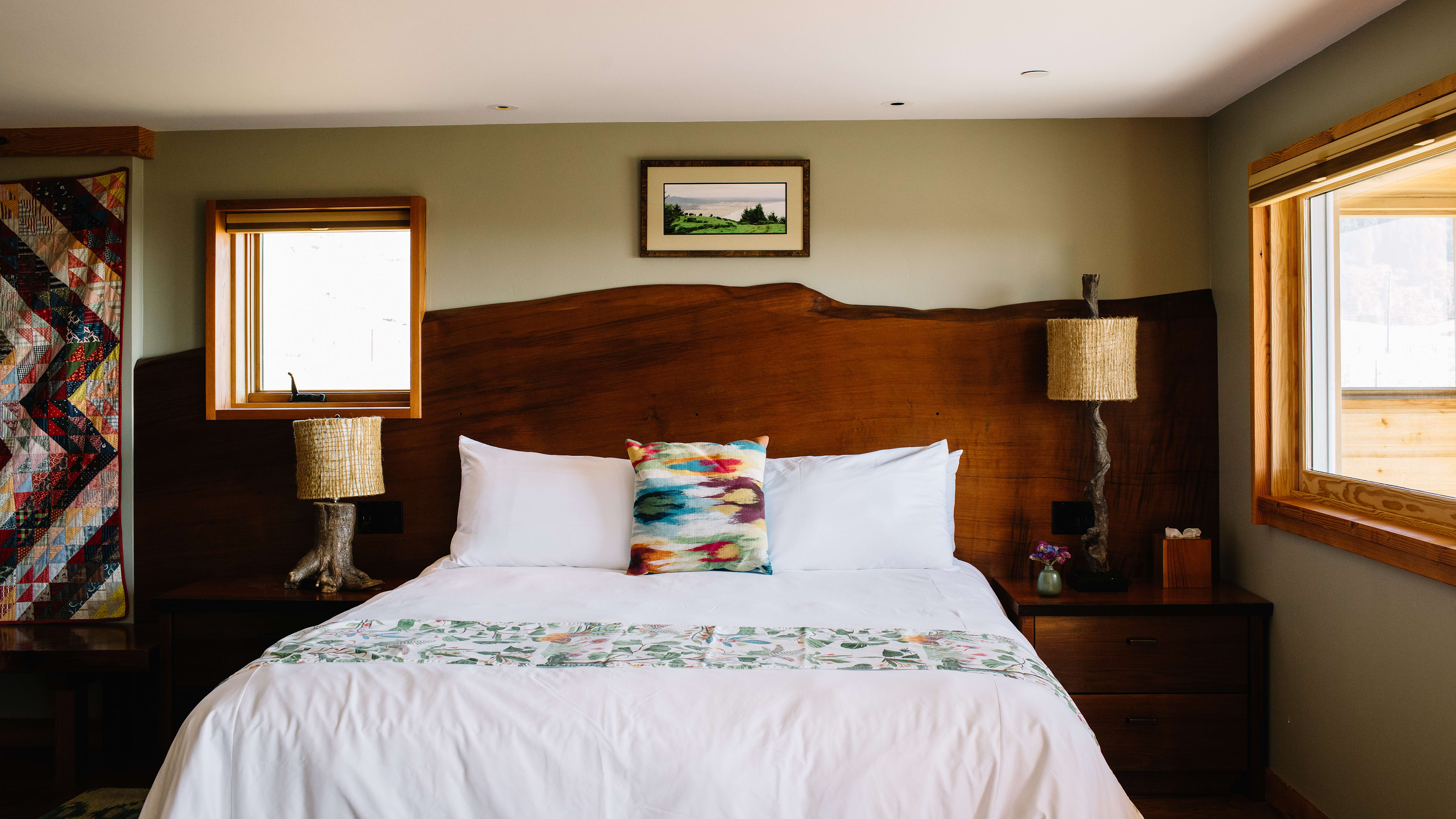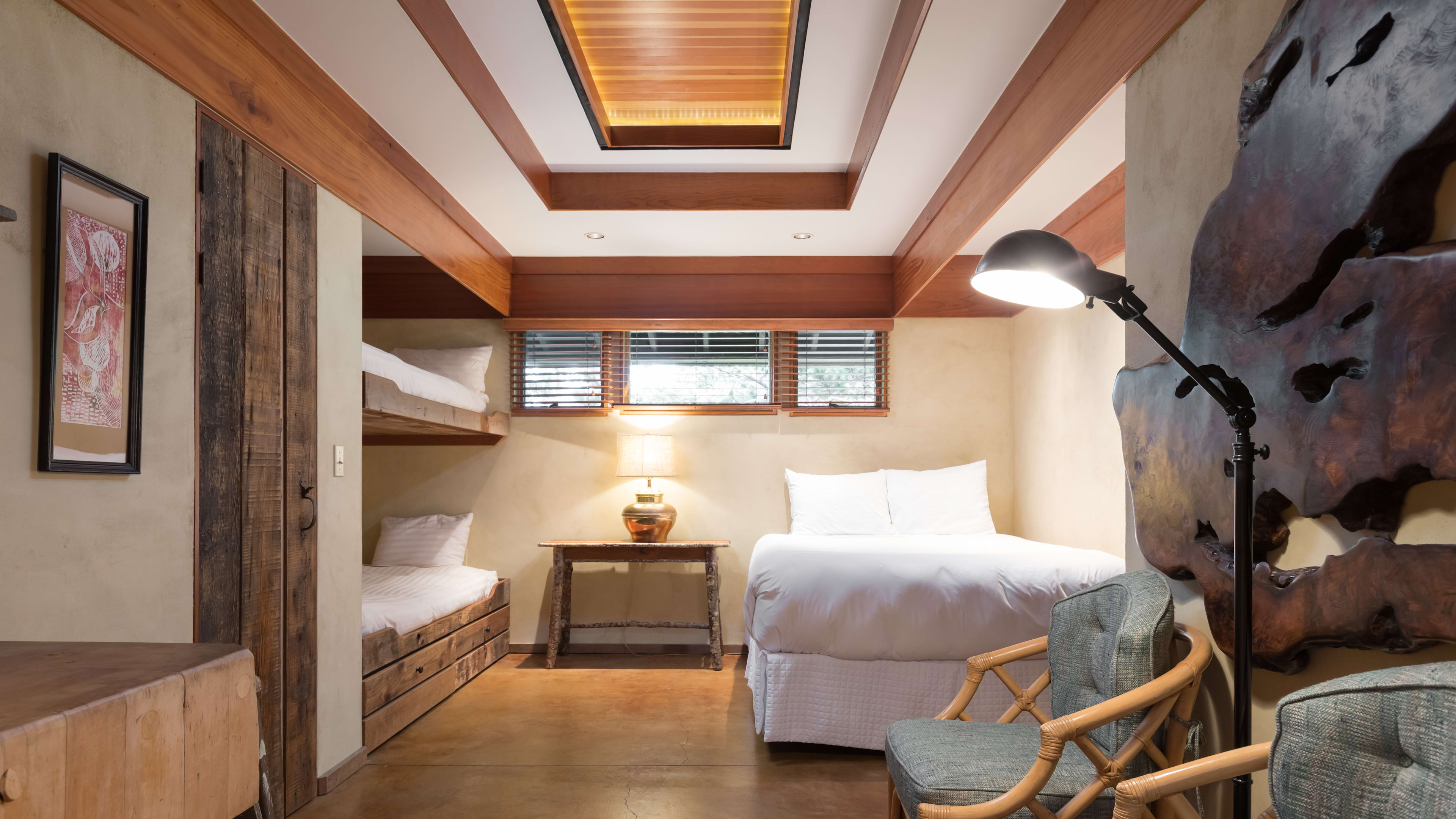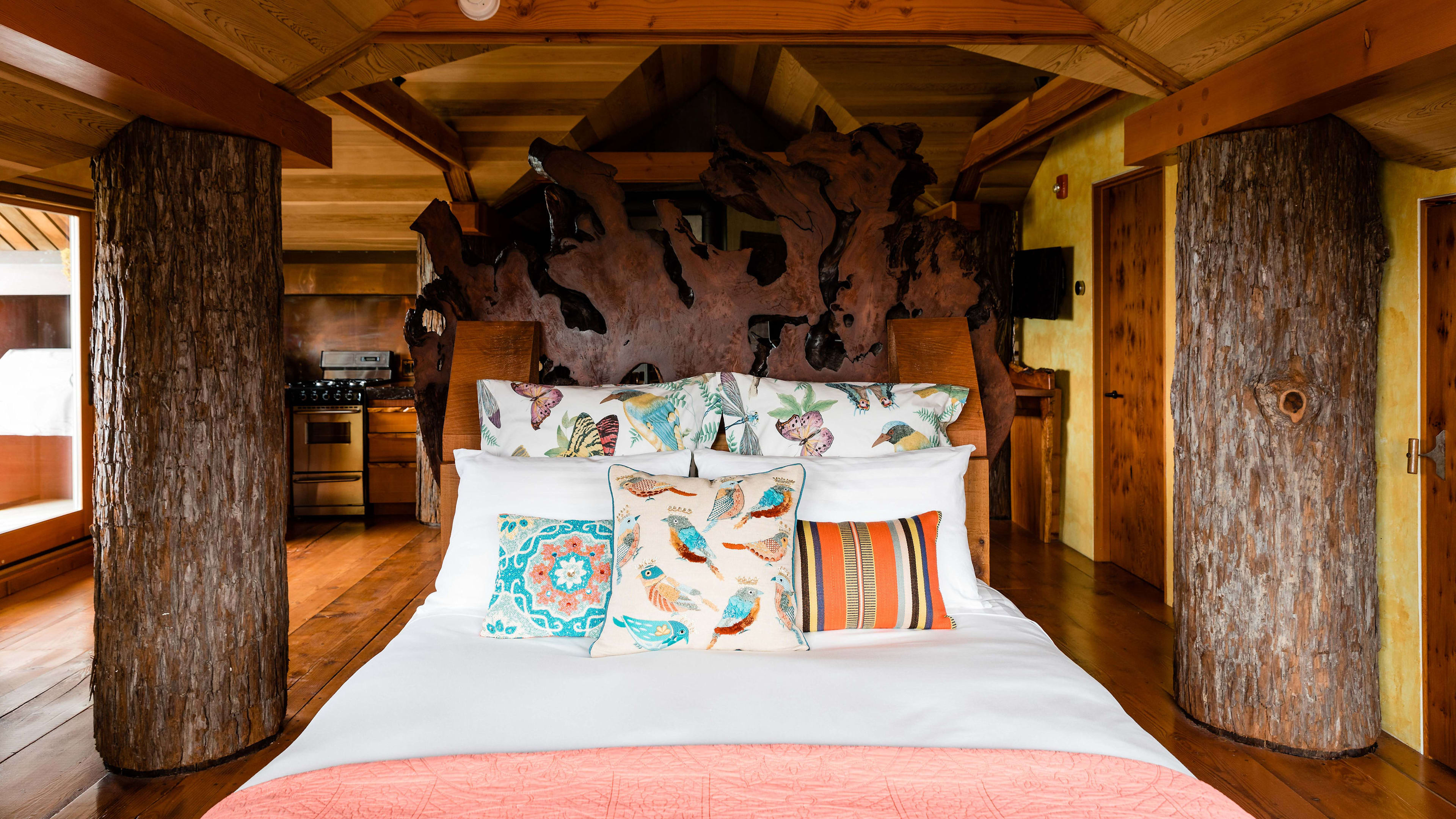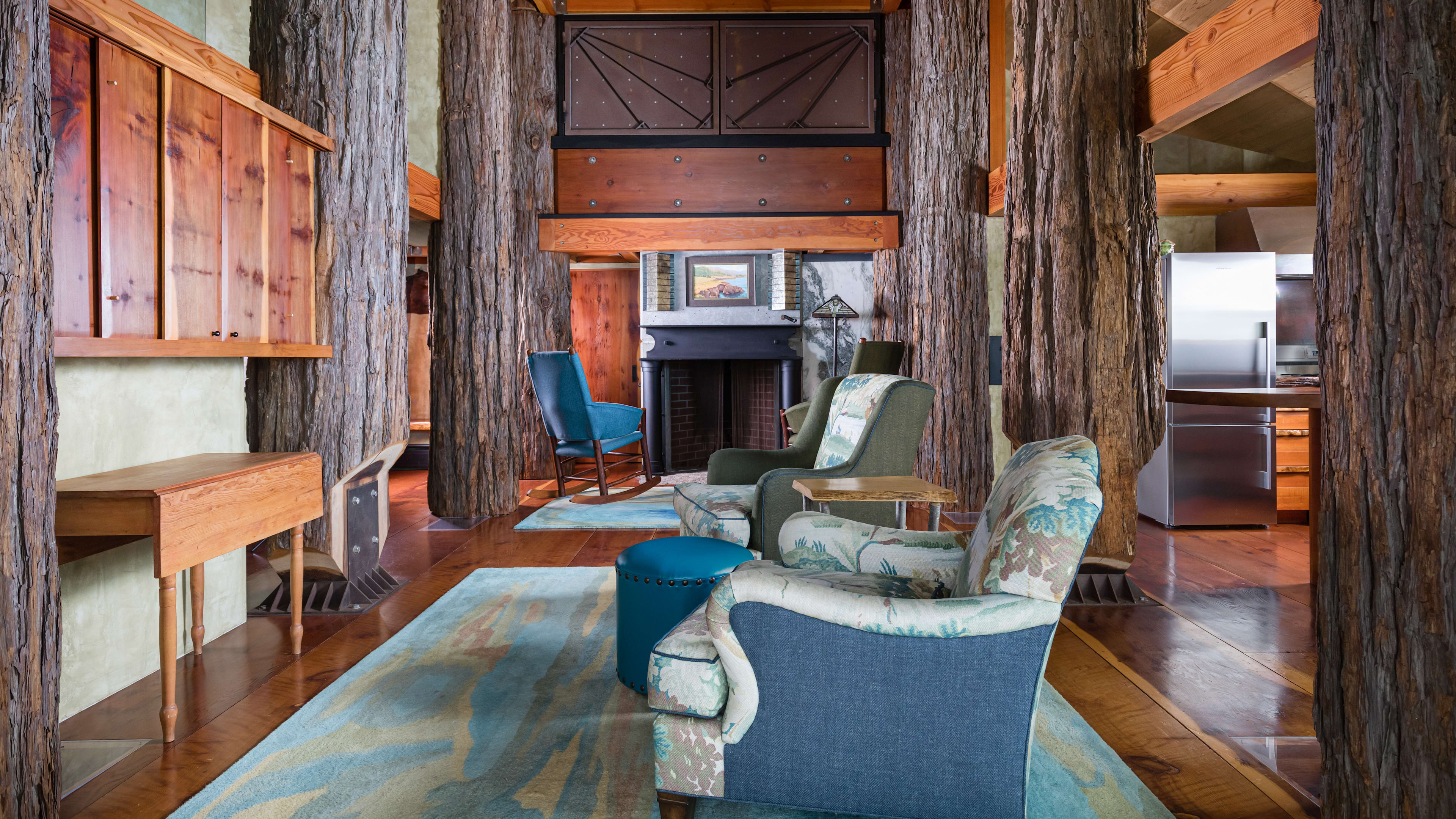 The hotel owners love a picnic, and trails have tables along the way where you can stop for a scenic bite to eat. Just ask nicely and the kitchen will put together a tempting array of delicacies made with local ingredients and a bottle of local wine. Snackers will be delighted to find housemade granola bars in their room and freshly baked cookies left out in the main inn. Alongside the earth-made wonders, the hotel’s craftsmanship is something to behold, whether it’s the giant stone fireplace big enough to stand in, the many uses for redwoods or the 20-panel frieze in the library, made in the style of famed US architects the Greene Brothers.