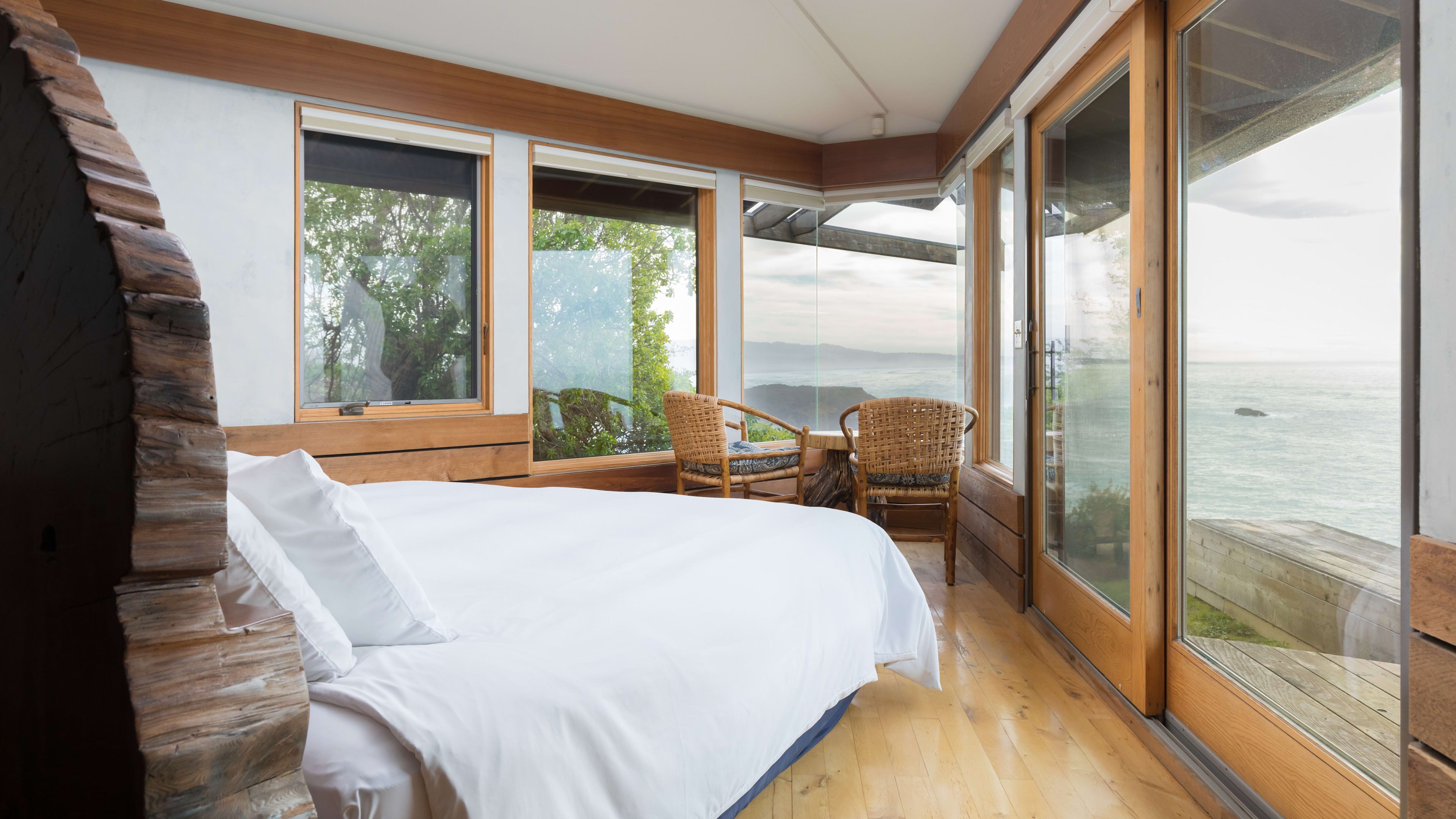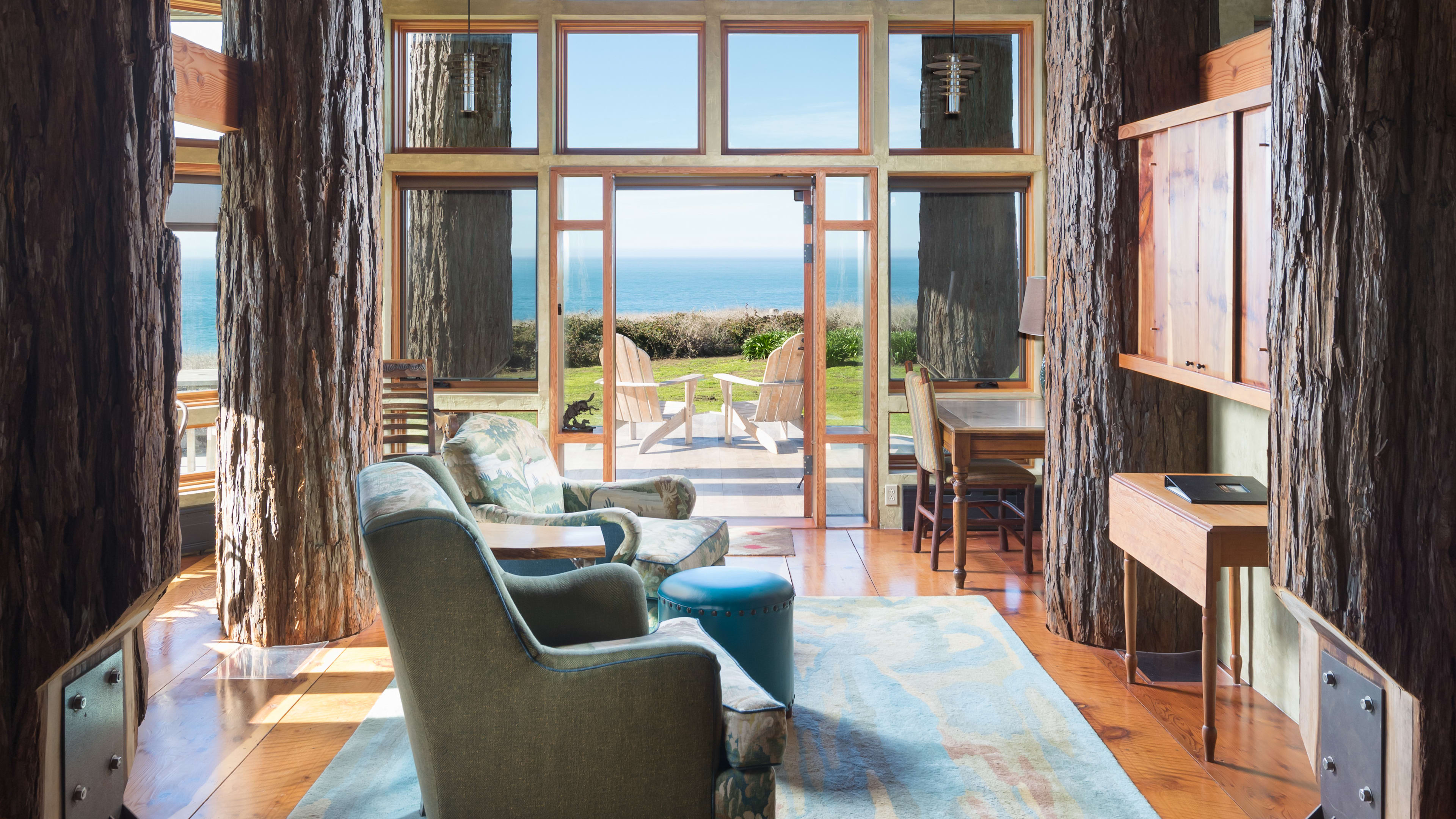 The fireside in the main inn is so large that you can safely warm yourself by standing inside it, so there’s space for huddling around with a glass of something warming and high proof from Mendocino County. Or take a pew at yet another feat of carpentry, the live-edge redwood bar, to sip on local wines (vintners expanding out from Napa have created a boom in indie wines locally in recent years), or something a little further afield, say a straw-hued Sauternes from Château d'Yquem. Guests are invited to enjoy snacks and small bites between 5:30-6:30pm with signature cocktails and a well-curated selection of still and sparkling wines available. If a storm is rolling in (and waves do hurdle the bluffs), listen out for the summons to the main inn to watch the tempest play out, while enjoying a glass of whiskey, of course.