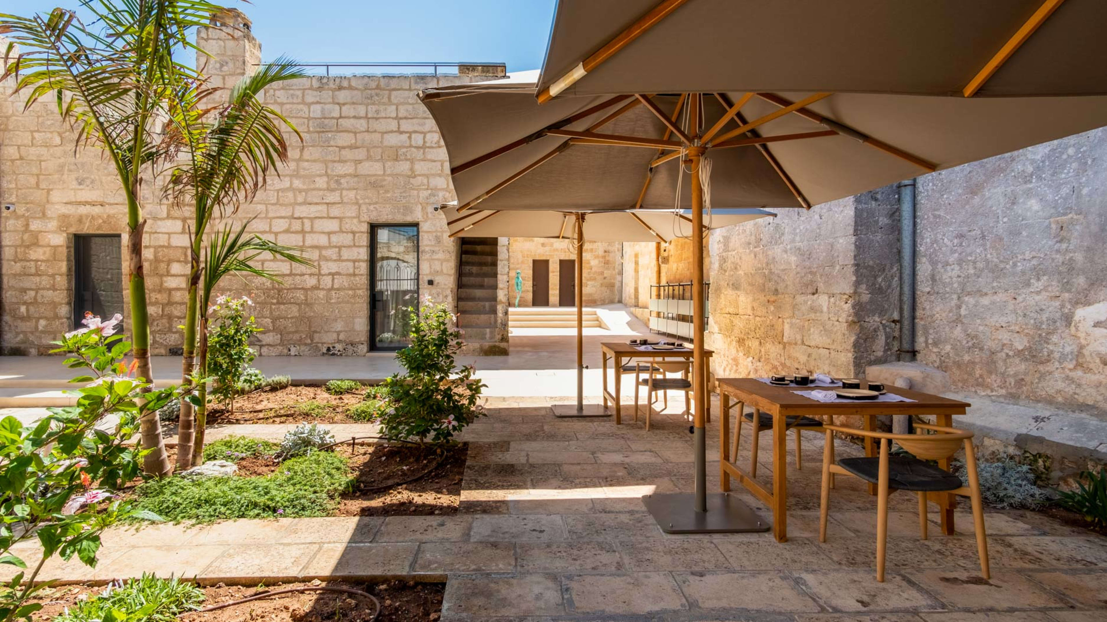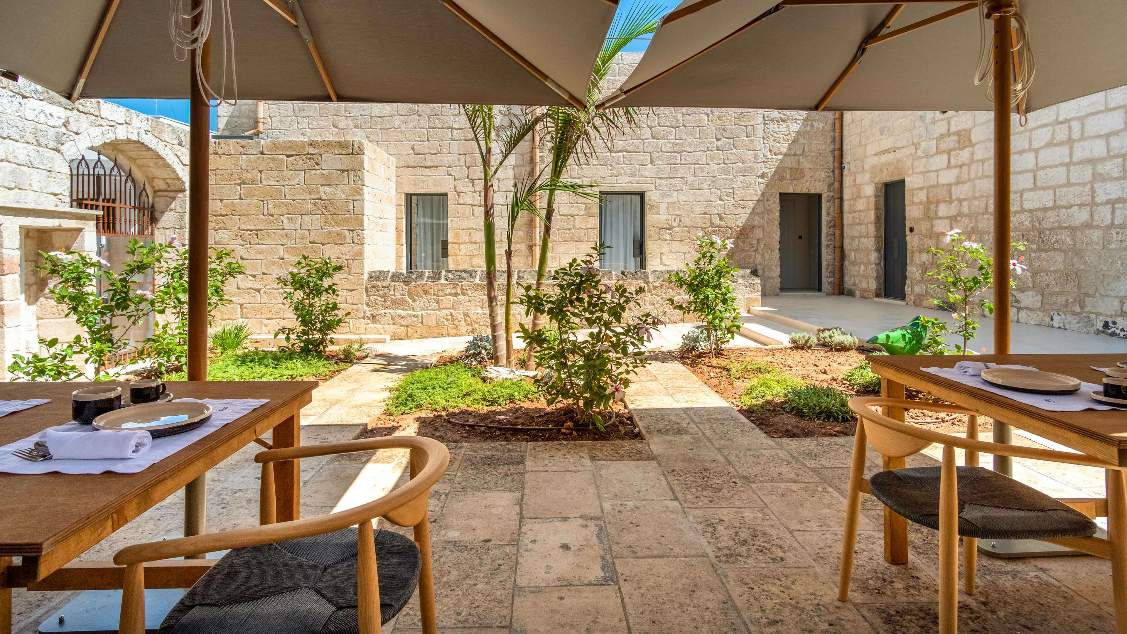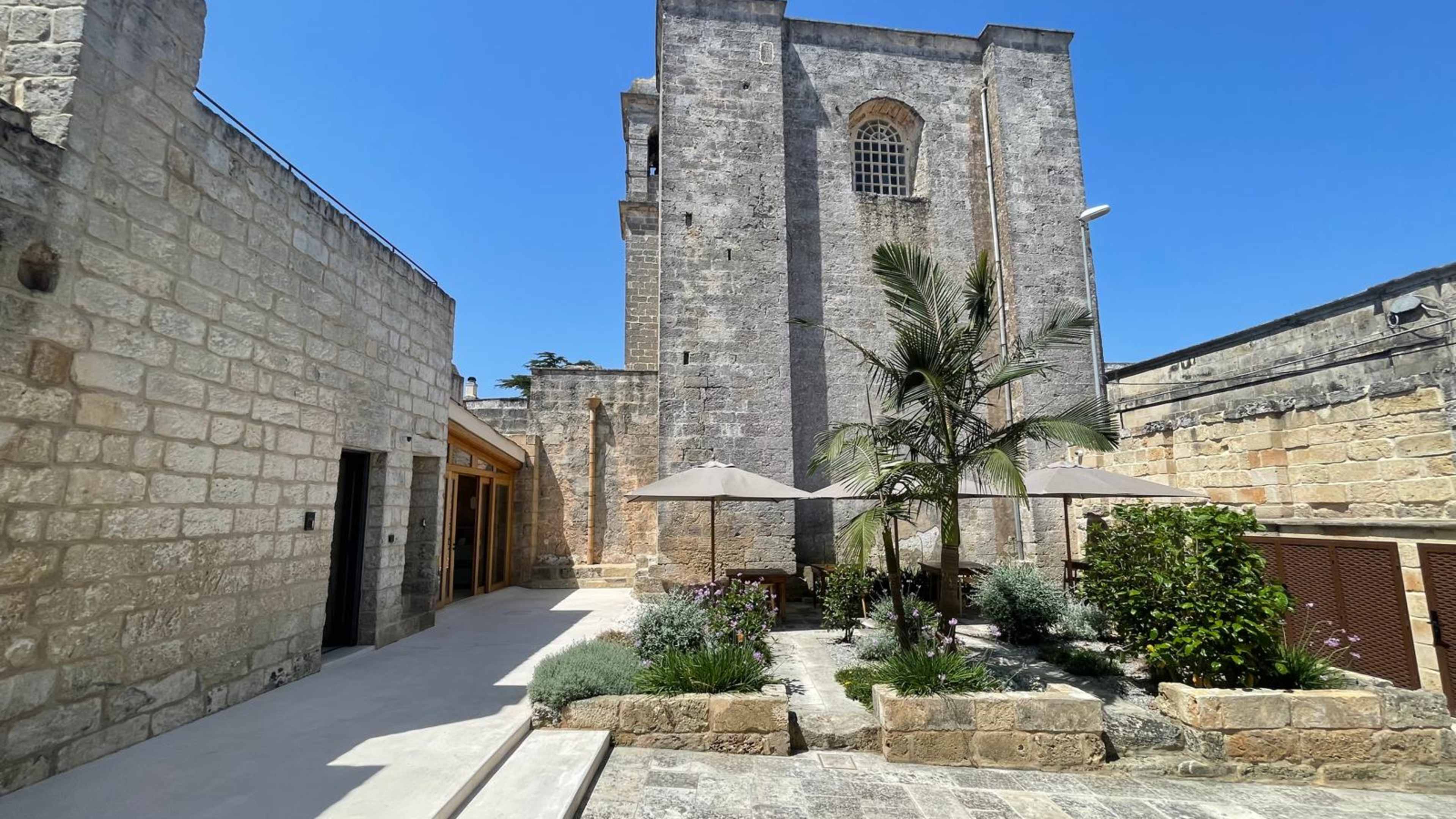 Breakfast is served in the oldest part of the mansion, just beneath the bell tower of the chapel next door. Fill up on sweet homemade cakes, biscuits and cream-filled pastries and linger over coffee in the courtyard. There are also eggs cooked to order, plus cheeses, salami, salads and fruit to be had. The Bistrot (available for cooking classes in advance) showcases Salento cuisine in a welcoming, homely setting.