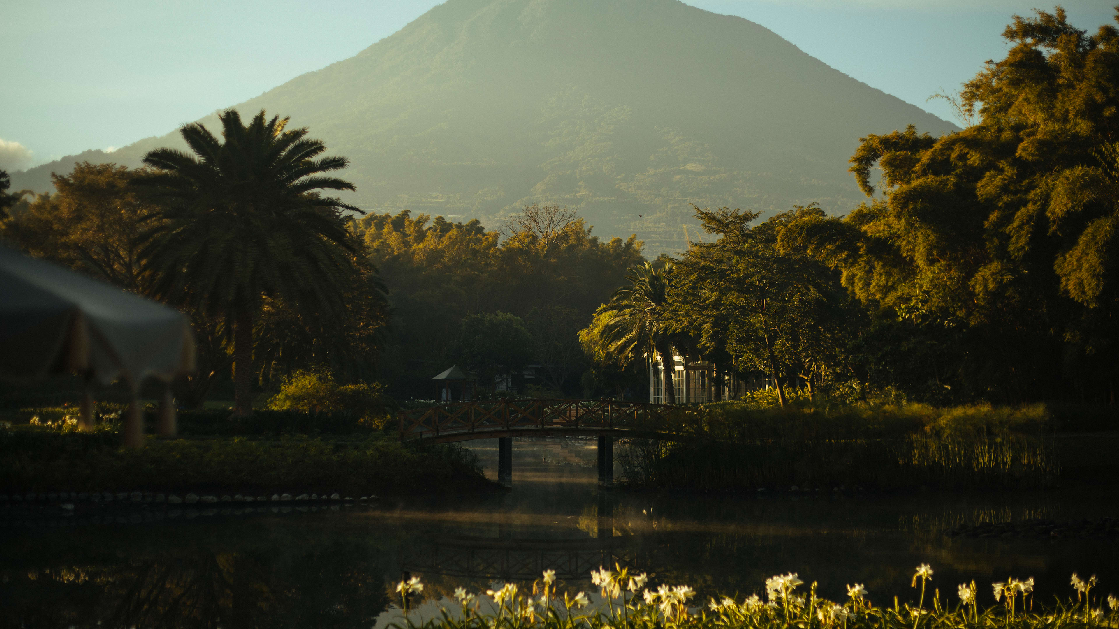 Grab a candlelit table by the lake for a romantic evening accompanied by the moonlight silhouette of Volcán de Agua and soundtracked by cicadas singing in the trees.