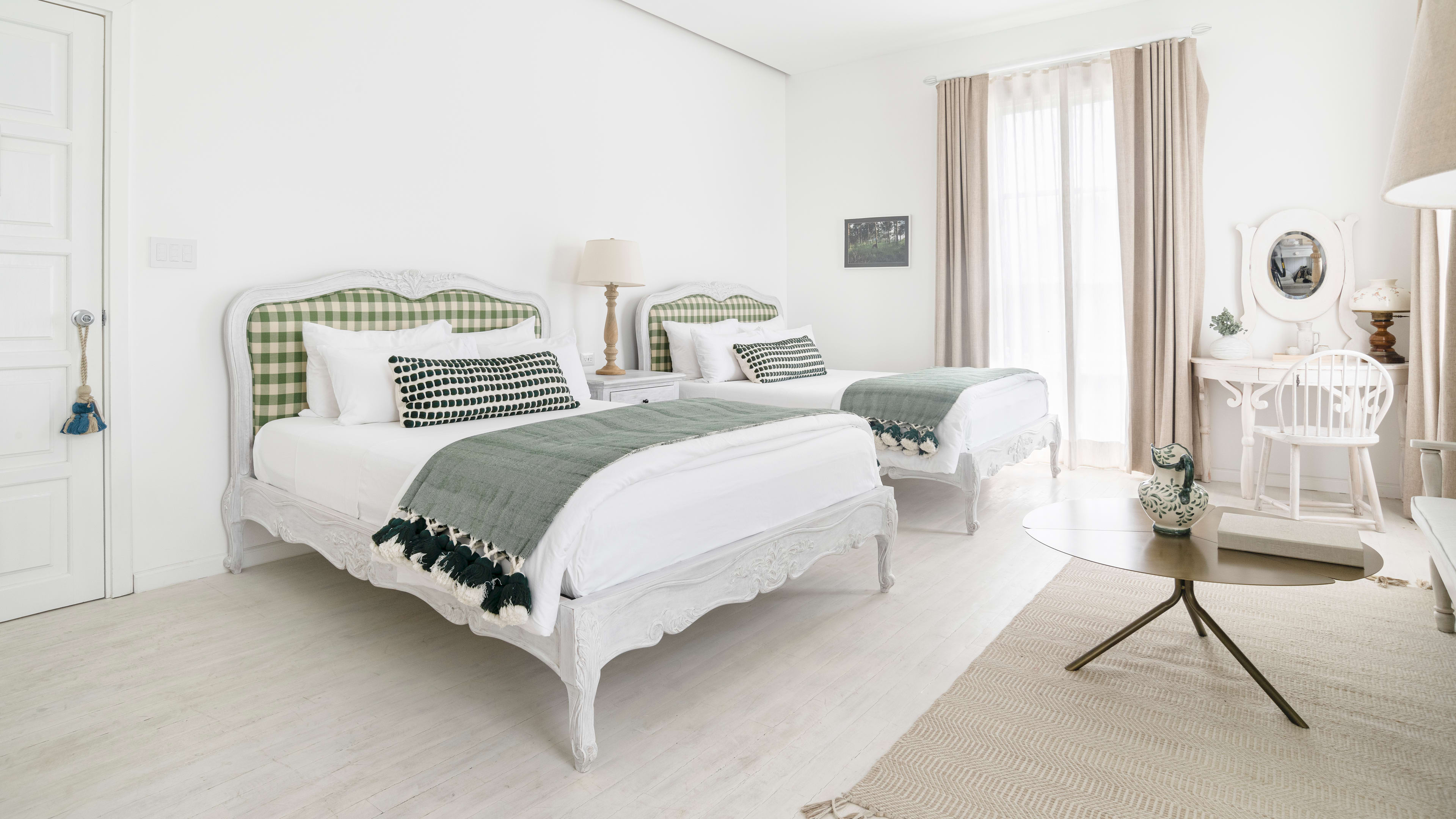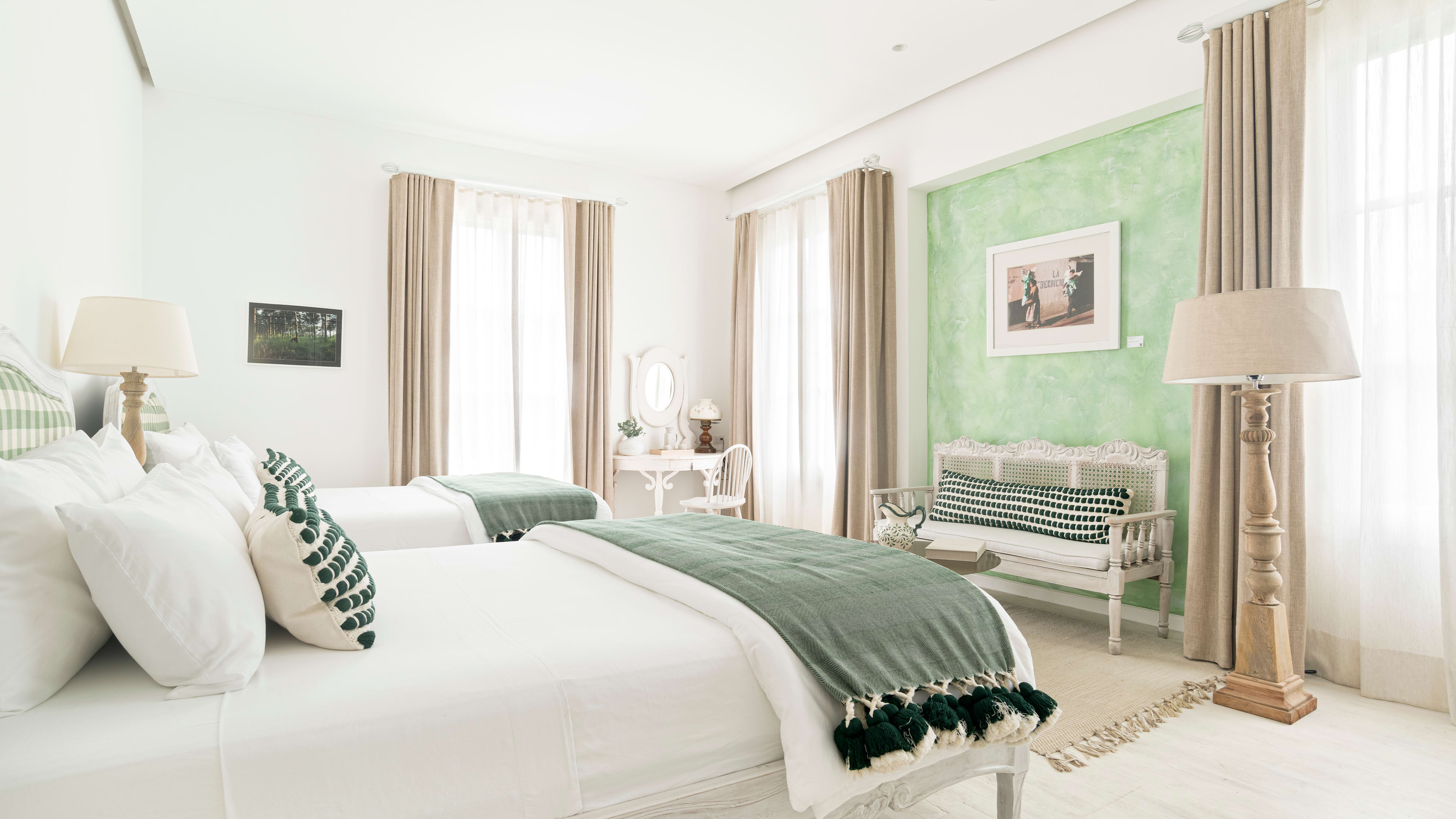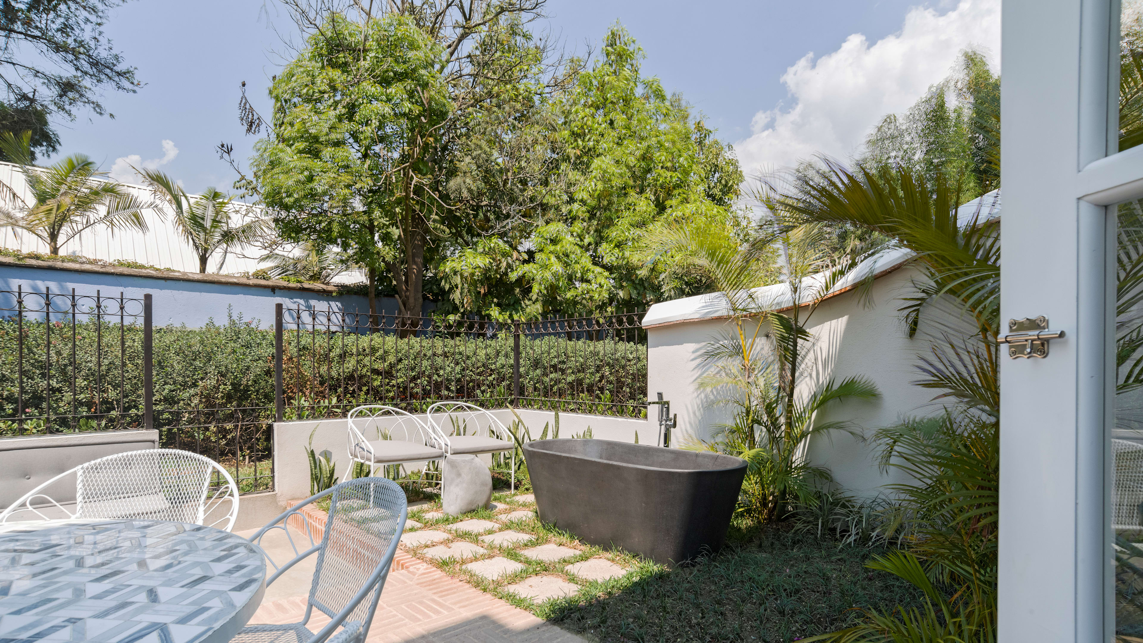 Each room and suite at Villa Bokéh has been individually designed with its own unique colour palette, and dressed with artworks and textiles from or inspired by Guatemala, such as photographer Mitchell Denburg’s black-and-white portraits of Antiguan locals and fine century-old tapestries curated by Guatemalan textile maestro Violeta Gutiérrez Caxa. You can expect hand-carved colonial-style furniture, vintage mirrors, statement rugs and big, beautiful, tiled bathrooms. All of which makes picking a favourite room like picking a favourite child. That said, we favour the Indigo suite for its fresh tones of white and baby blue, mezzanine seating area, and large balcony that frames superb views of the gardens and volcano beyond.