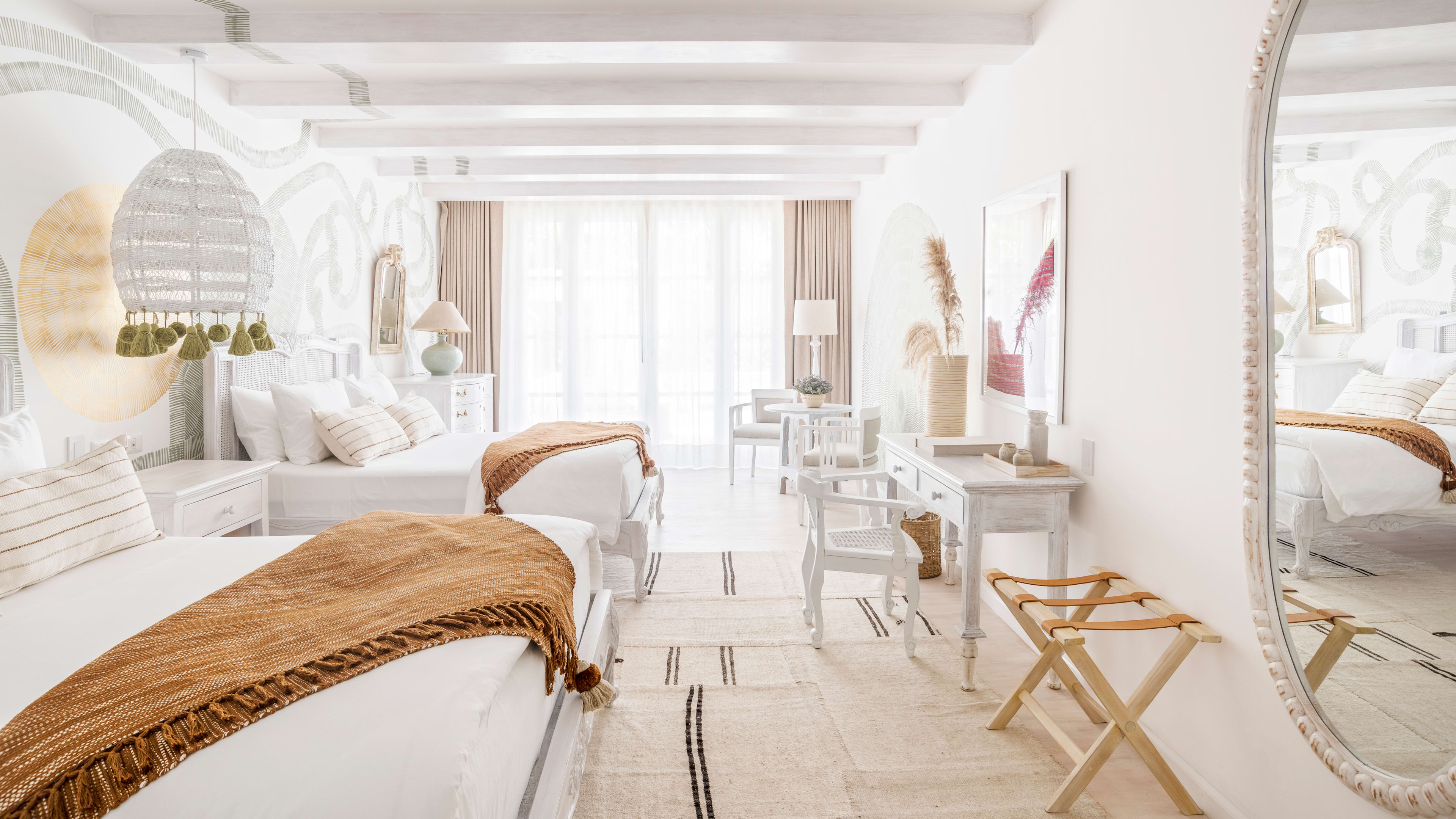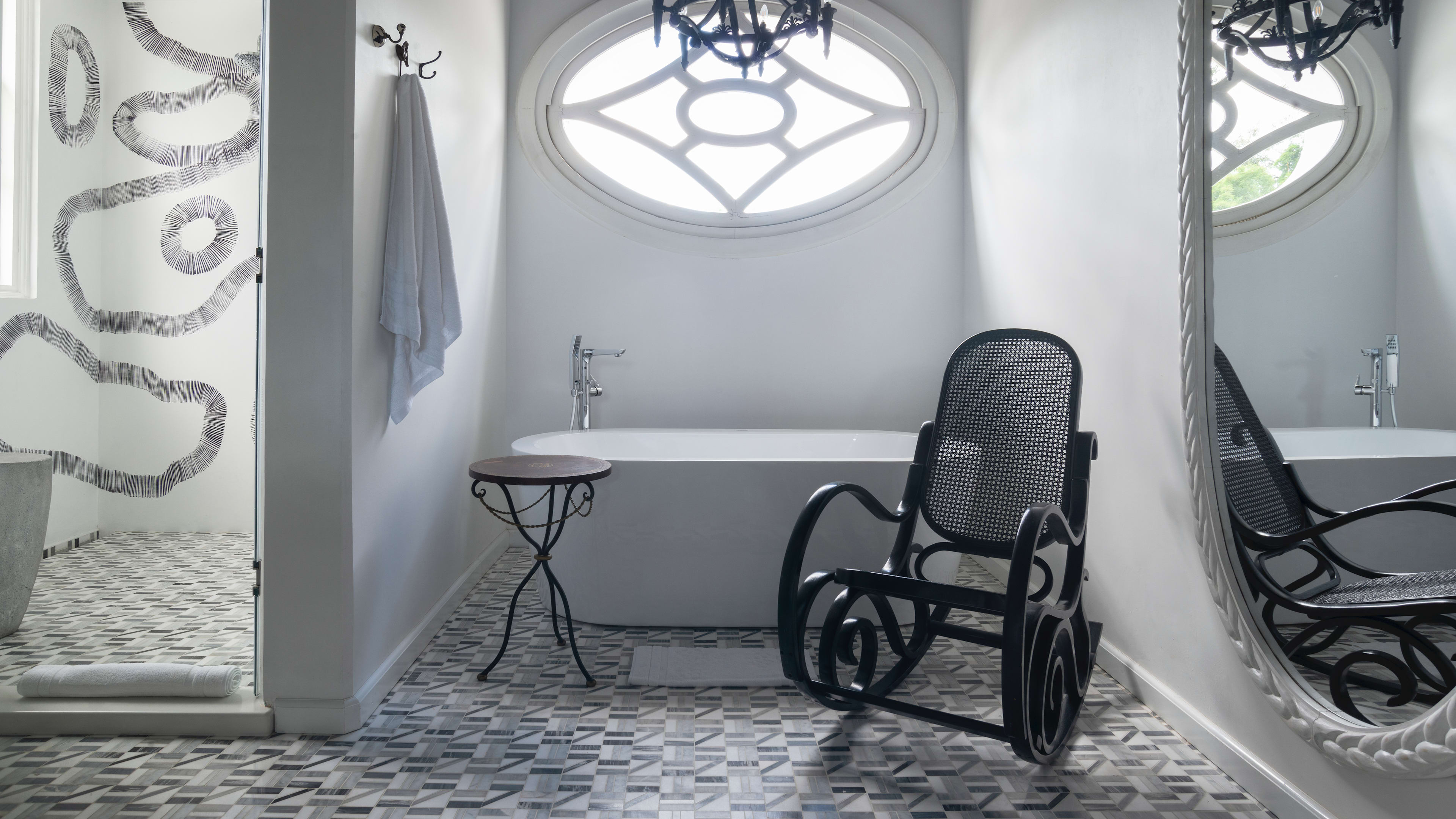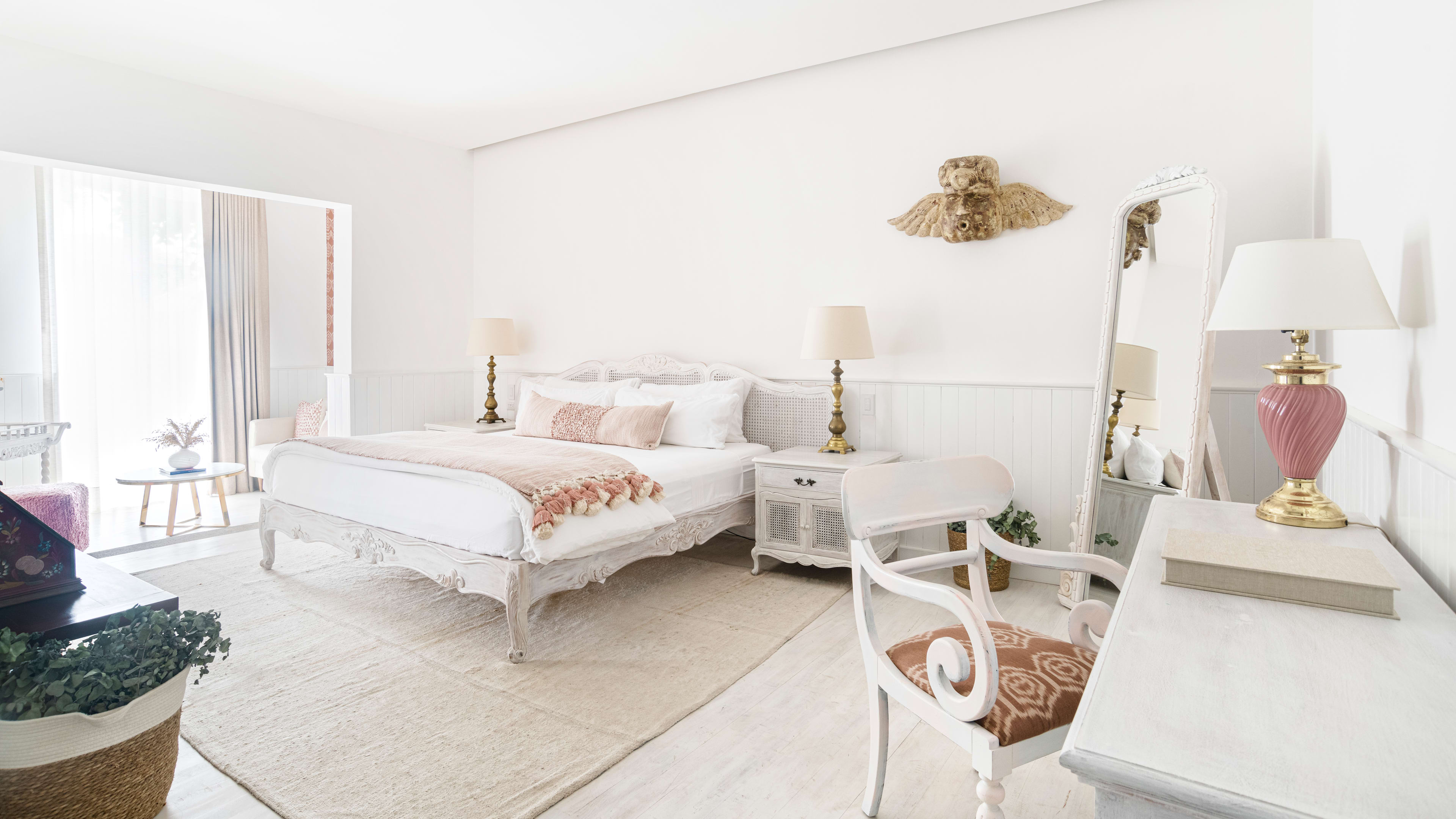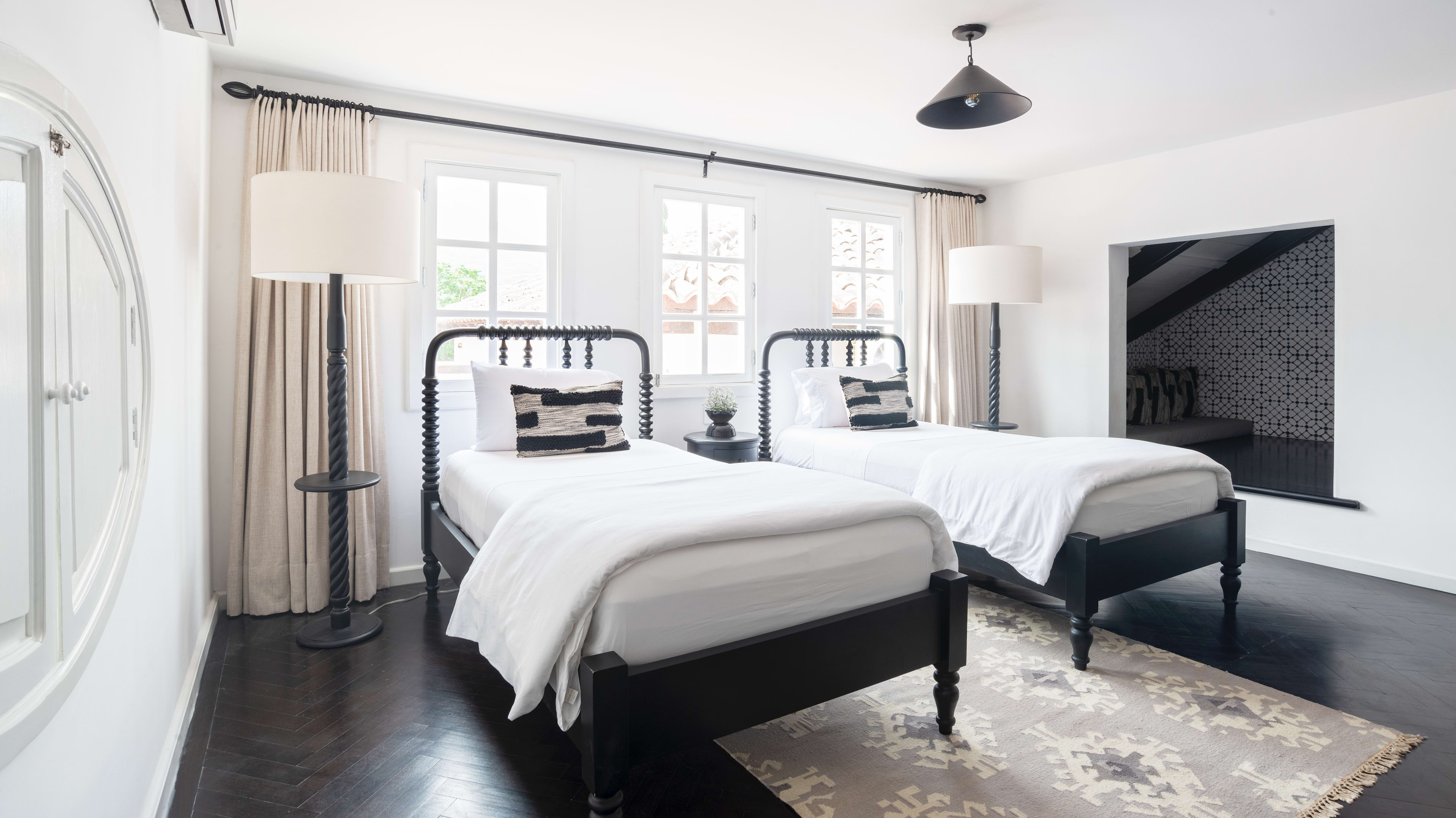 Each room and suite at Villa Bokéh has been individually designed with its own unique colour palette, and dressed with artworks and textiles from or inspired by Guatemala, such as photographer Mitchell Denburg’s black-and-white portraits of Antiguan locals and fine century-old tapestries curated by Guatemalan textile maestro Violeta Gutiérrez Caxa. You can expect hand-carved colonial-style furniture, vintage mirrors, statement rugs and big, beautiful, tiled bathrooms. All of which makes picking a favourite room like picking a favourite child. That said, we favour the Indigo suite for its fresh tones of white and baby blue, mezzanine seating area, and large balcony that frames superb views of the gardens and volcano beyond.