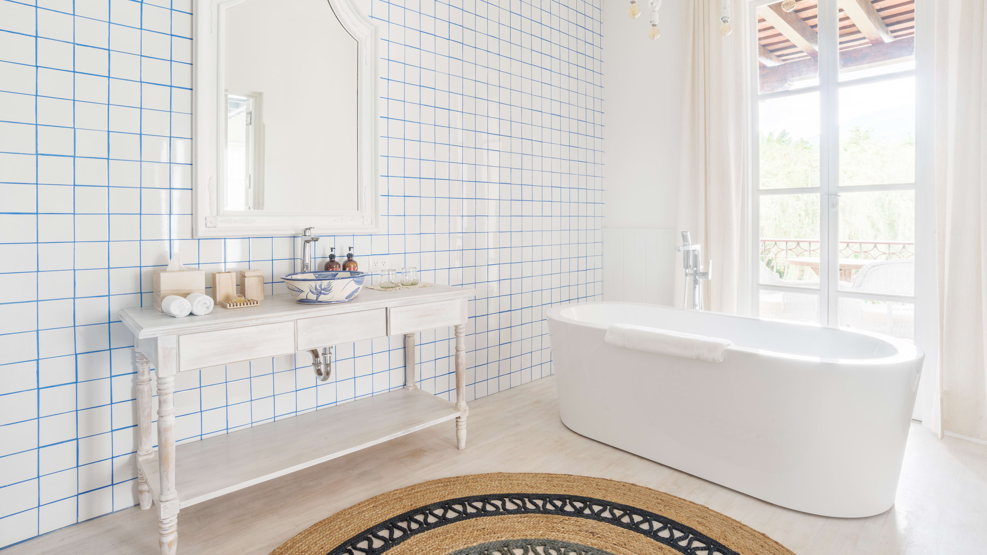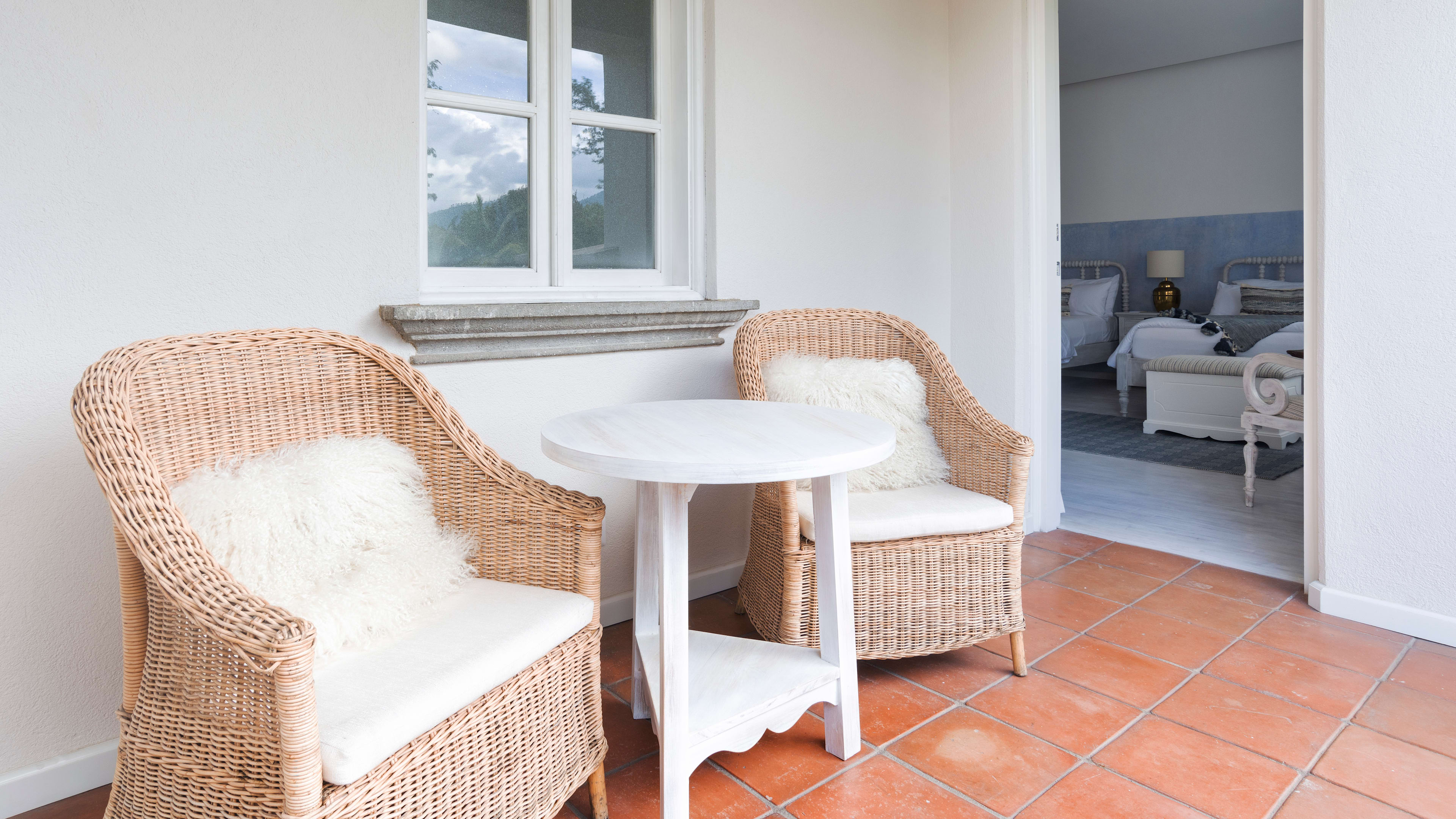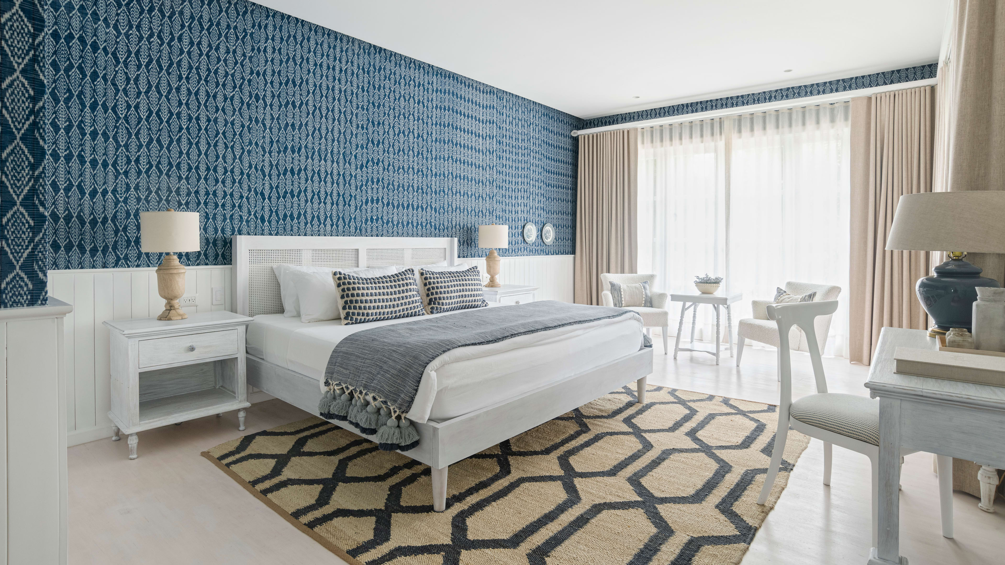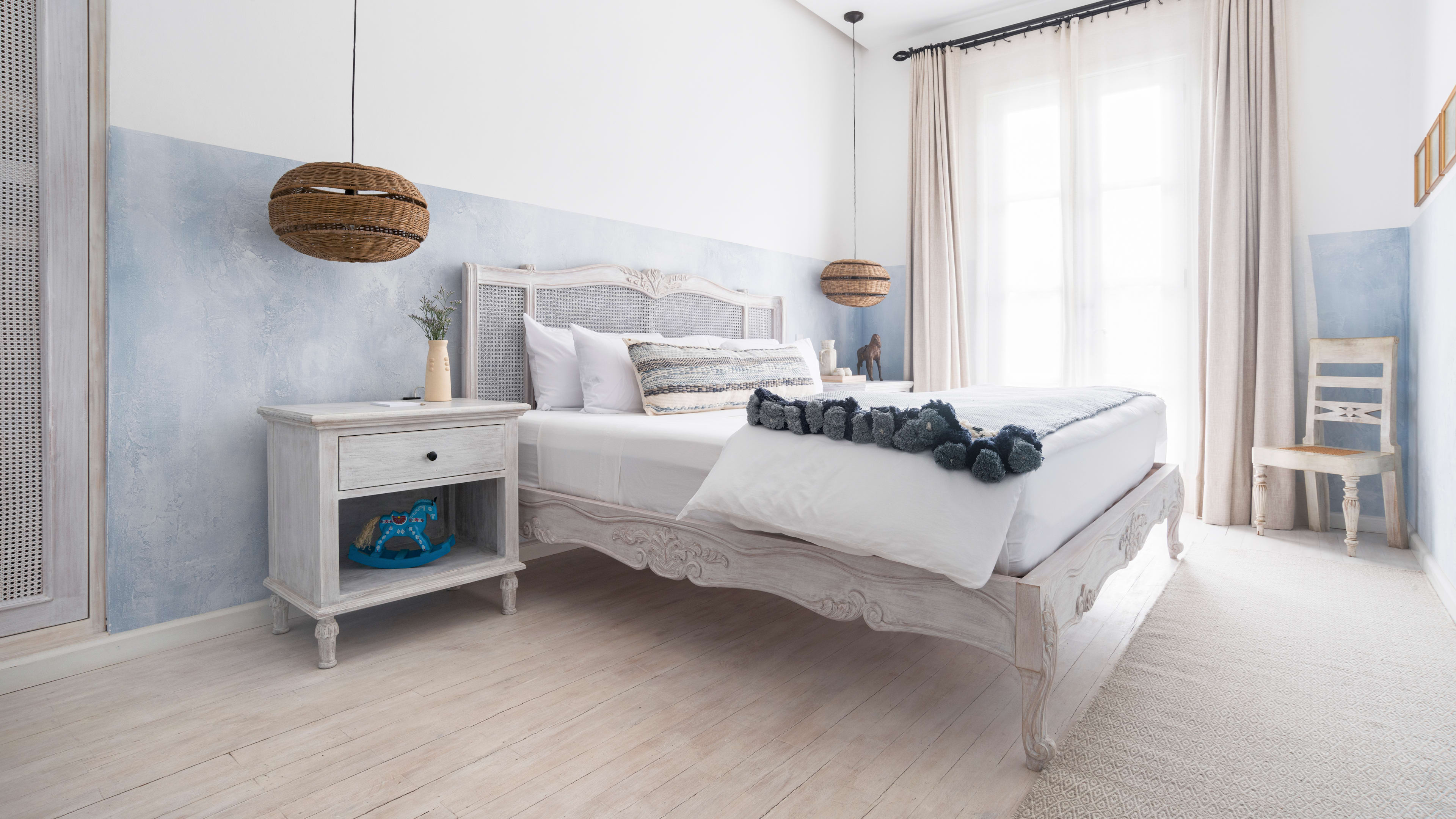 Villa Bokéh’s polished terracotta-tiled floors and red pantile rooftops sandwich a gleaming white colonial hacienda complete with fairy-tale turrets and lofty cypress trees out front. Follow the meandering lakeside path to the turquoise outdoor pool with its blue-and-white parasols, or wander the extensive gardens where intoxicating scents of lilies, purple agapanthus, and vibrant bird of paradise flowers are accompanied by a symphony of birdsong. If even a gentle wander seems like an unnecessary exertion, retreat to the vine-draped verandah, where marshmallow-soft sofas provide perfect vantage points for daydreaming as fluffy white clouds drift across the volcano – don’t worry, it hasn’t erupted in over 80,000 years, so you’re quite safe.