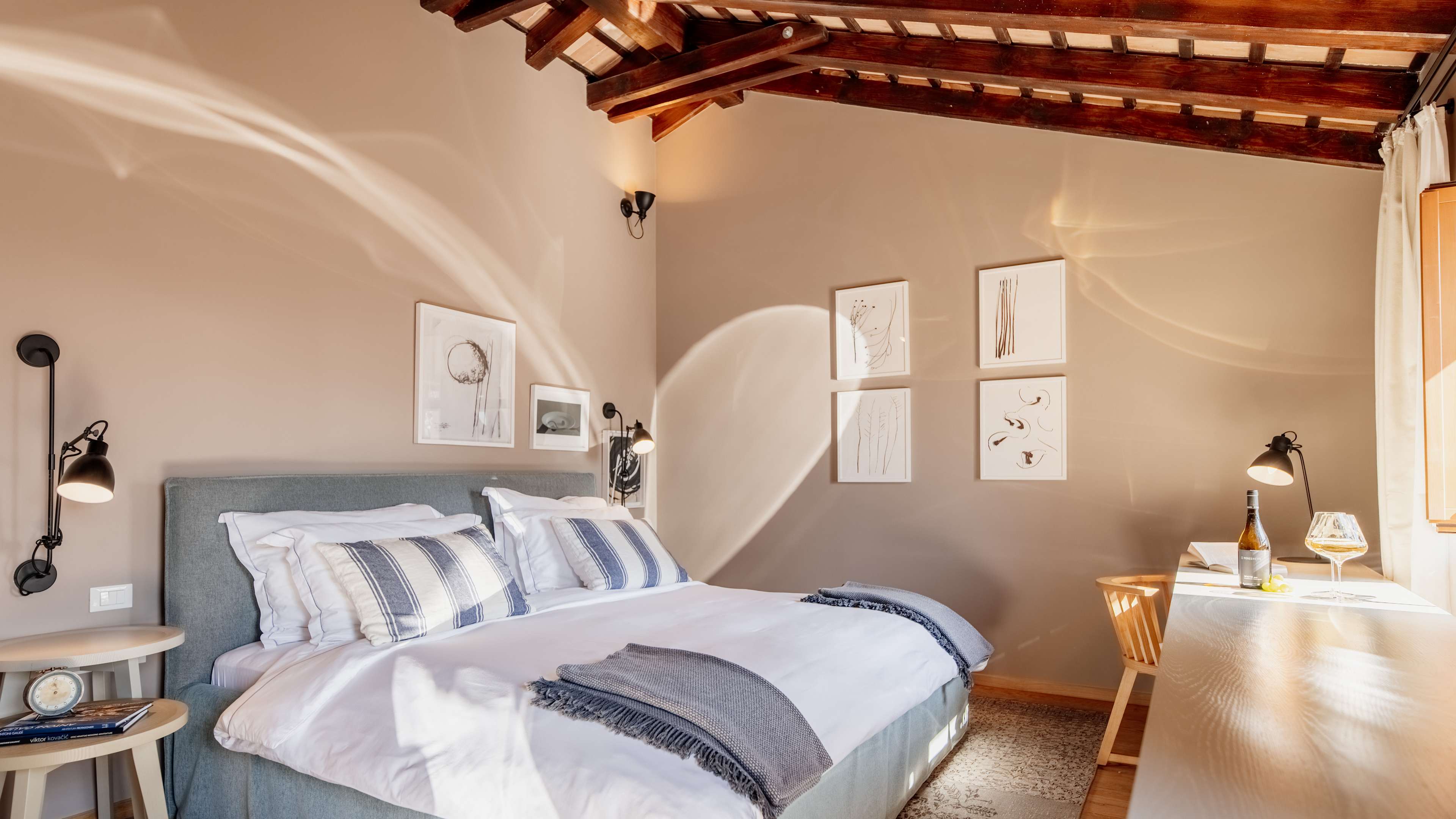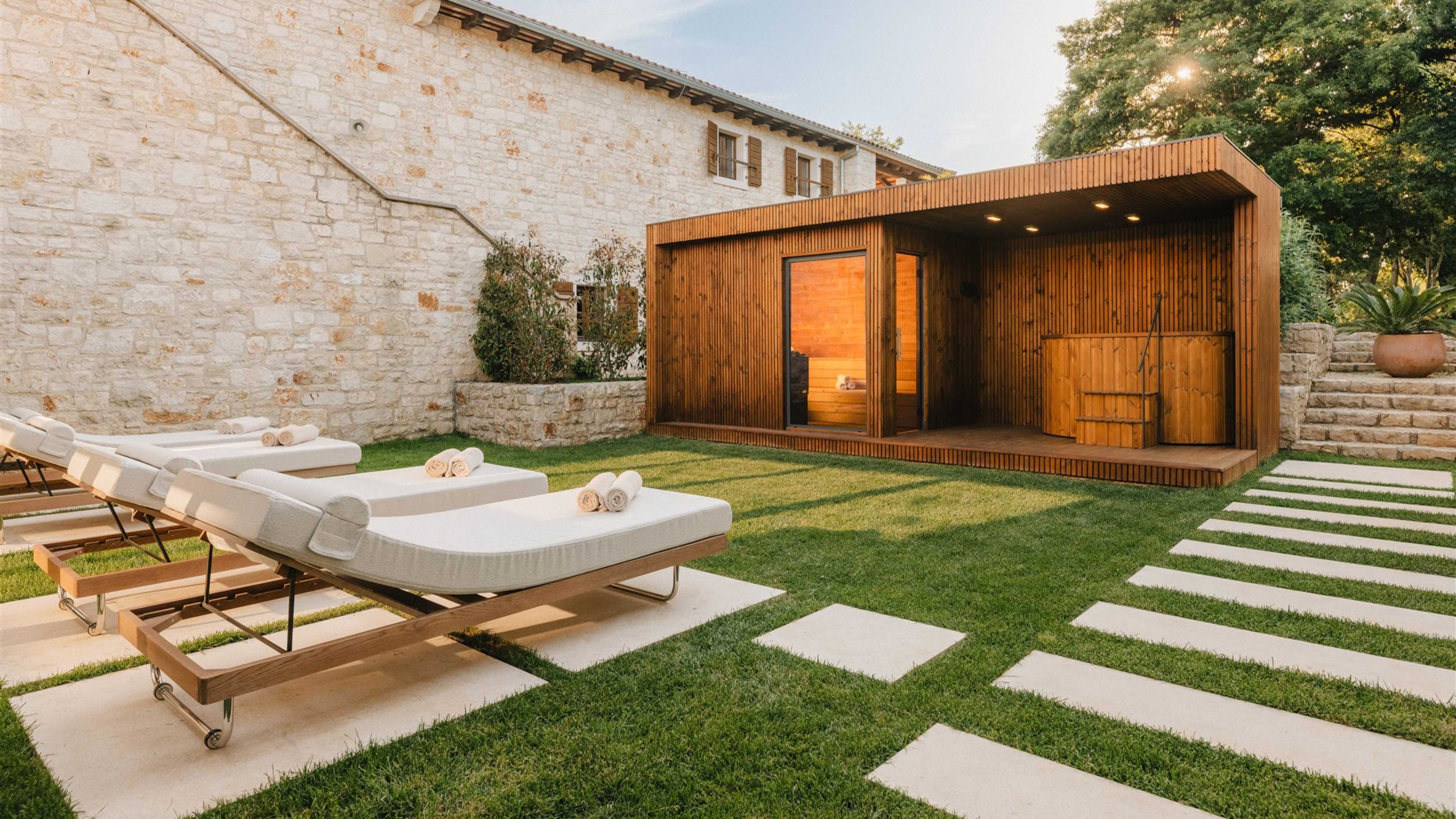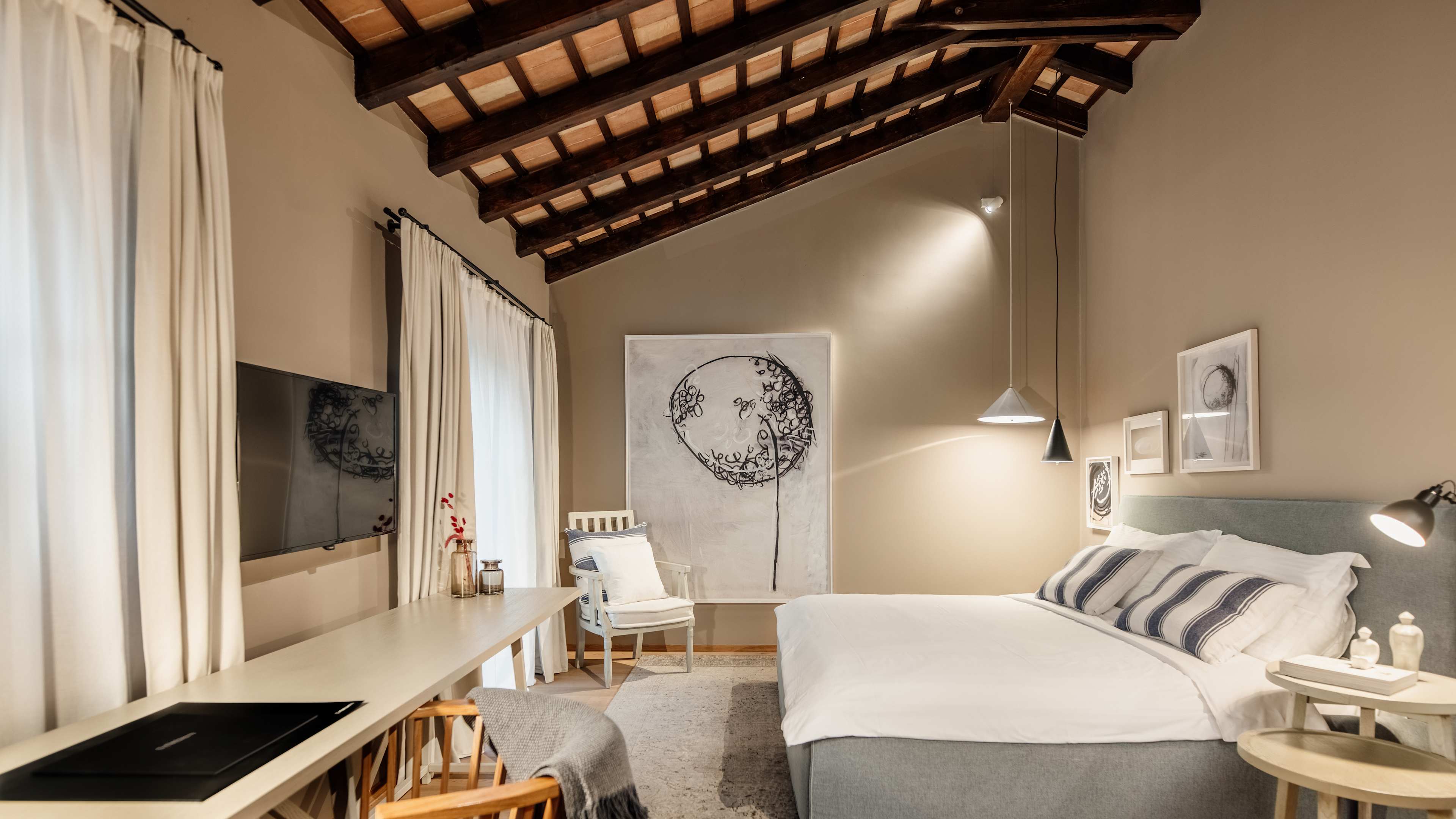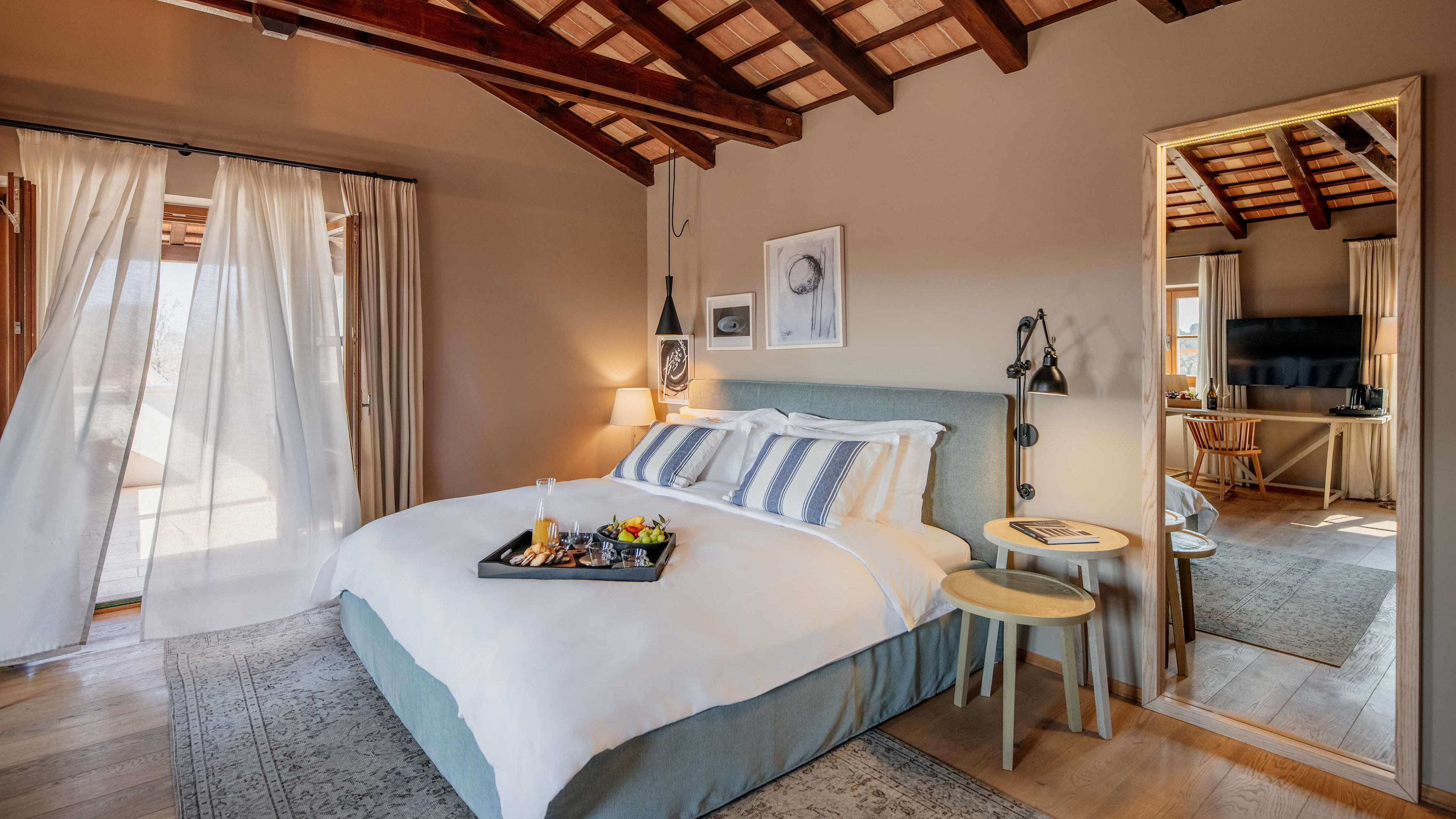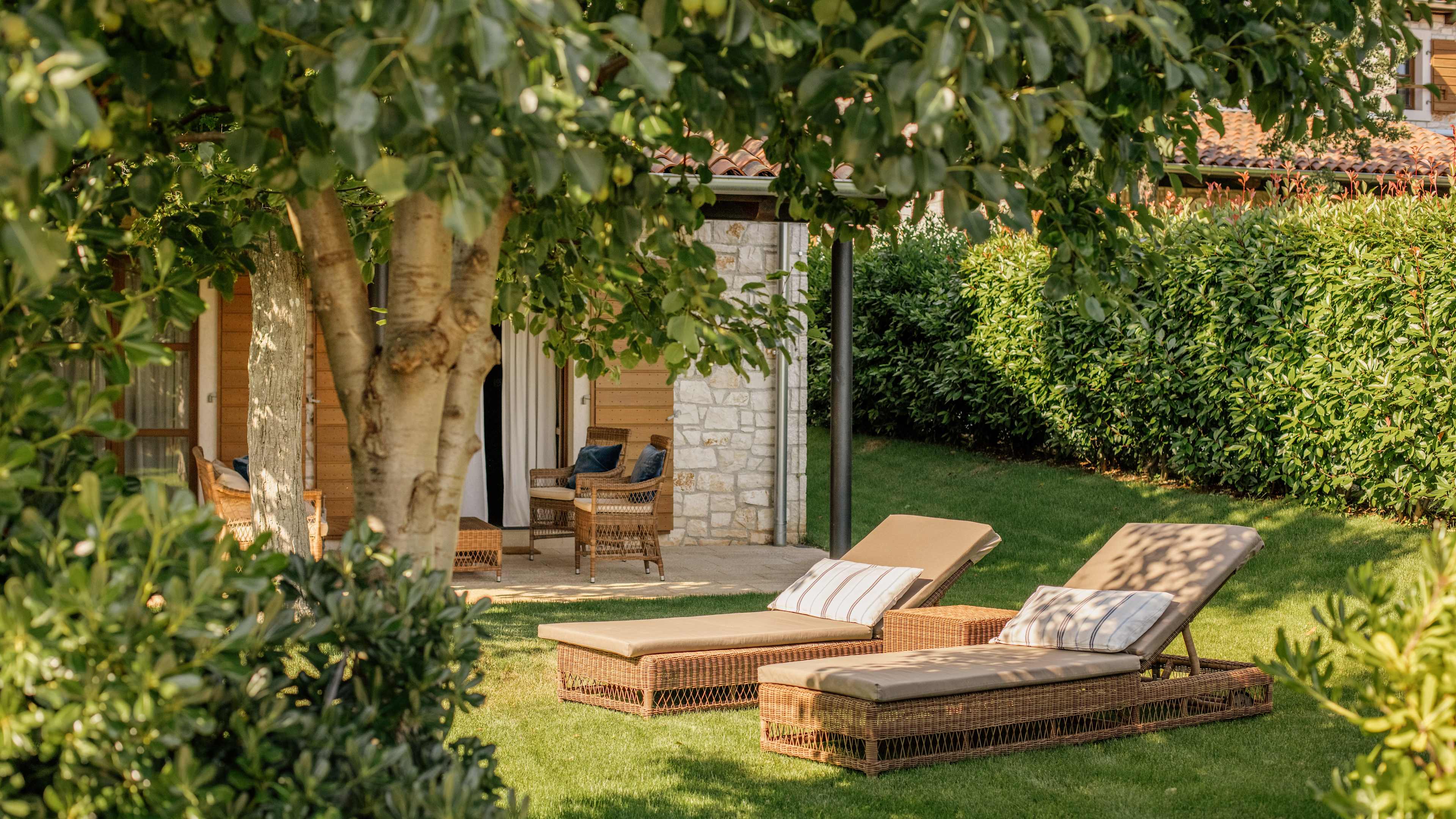 With accommodation that ranges in size from a generous 28-square-metre bedroom to a private three-bed villa big enough to get lost in, there’s stacks of choice here. Somewhere in between the two, the One Bedroom Residence, clocks in at a roomy 75 square metres, with beautifully carved wooden beams in the bedroom, smart living and dining areas, a spacious bathroom with dual sinks and a walk-in shower, and a terrace. Upgrade and you’ll get a private pool in your garden. Where better to watch those famous Istrian sunsets as the crickets chirp and the ice clinks lazily in your second or third Negroni of the evening?
