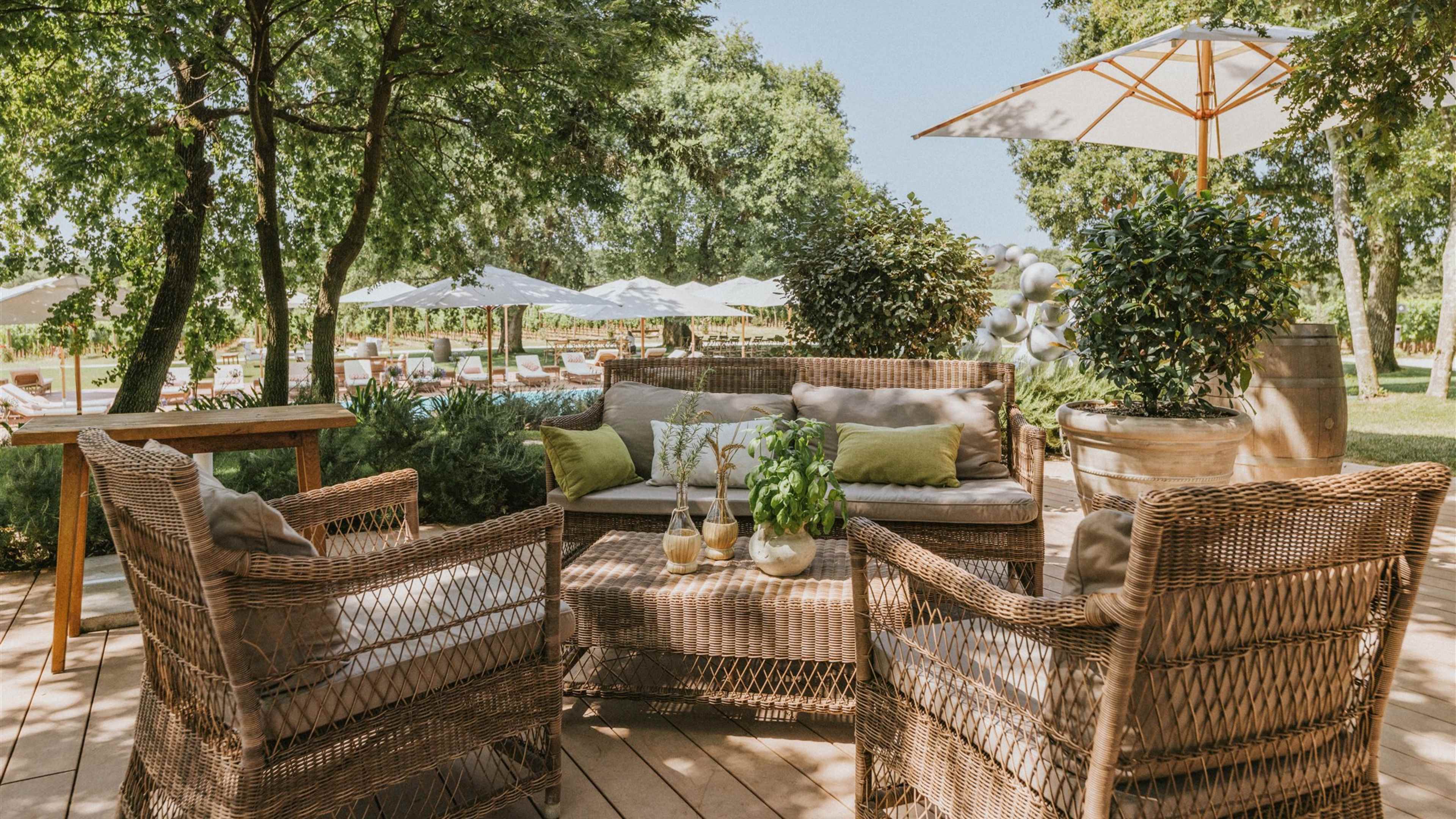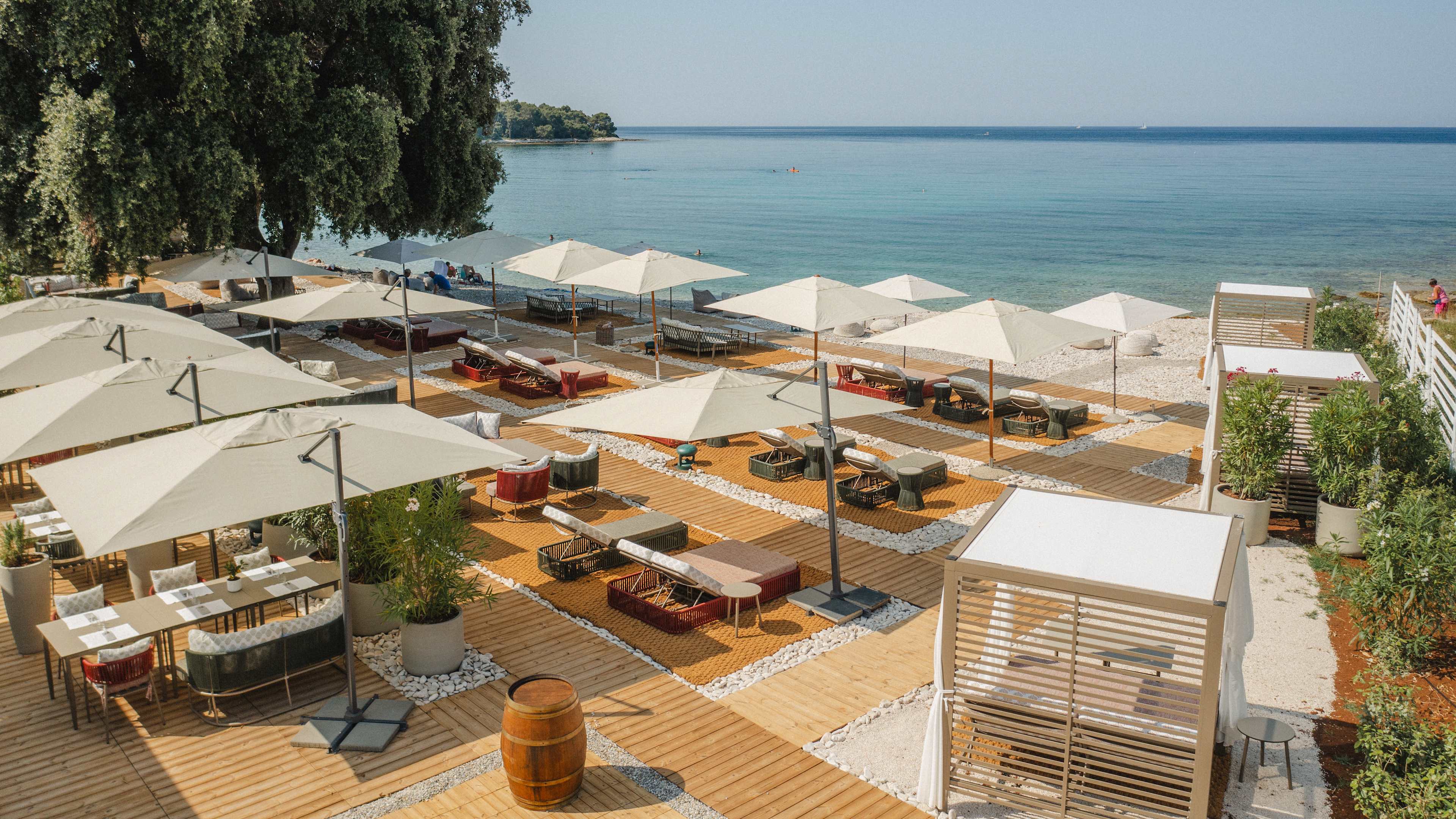 Sink into oversized zebra-stripe armchairs in the Lobby Bar with one of the estate’s classic rosé wines or head down to the Meneghetti Beach Club, where there’s absolutely no shame at all in ordering an ice cream and a pina colada as you watch the Adriatic gently lapping the shore from your lounger.