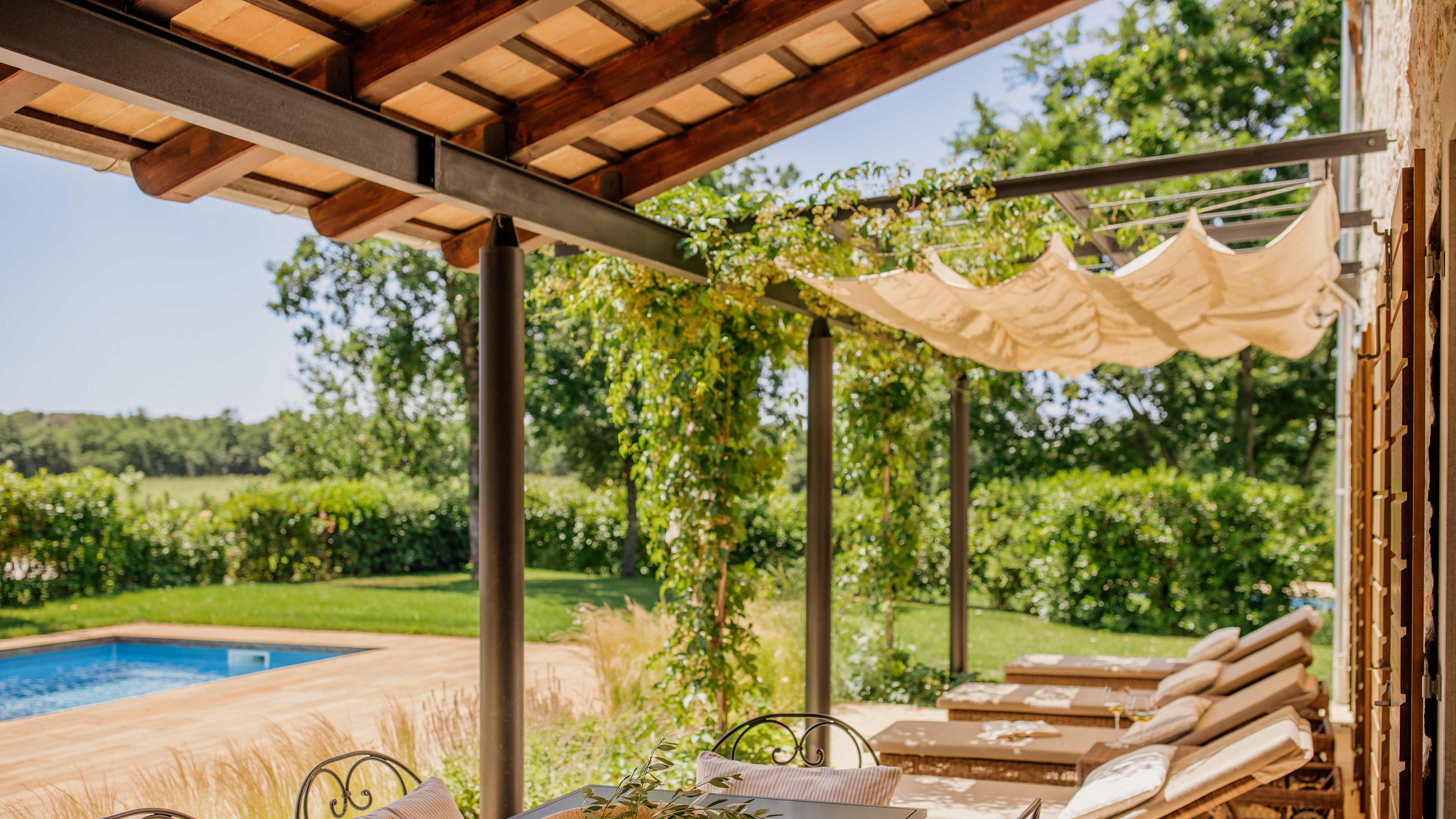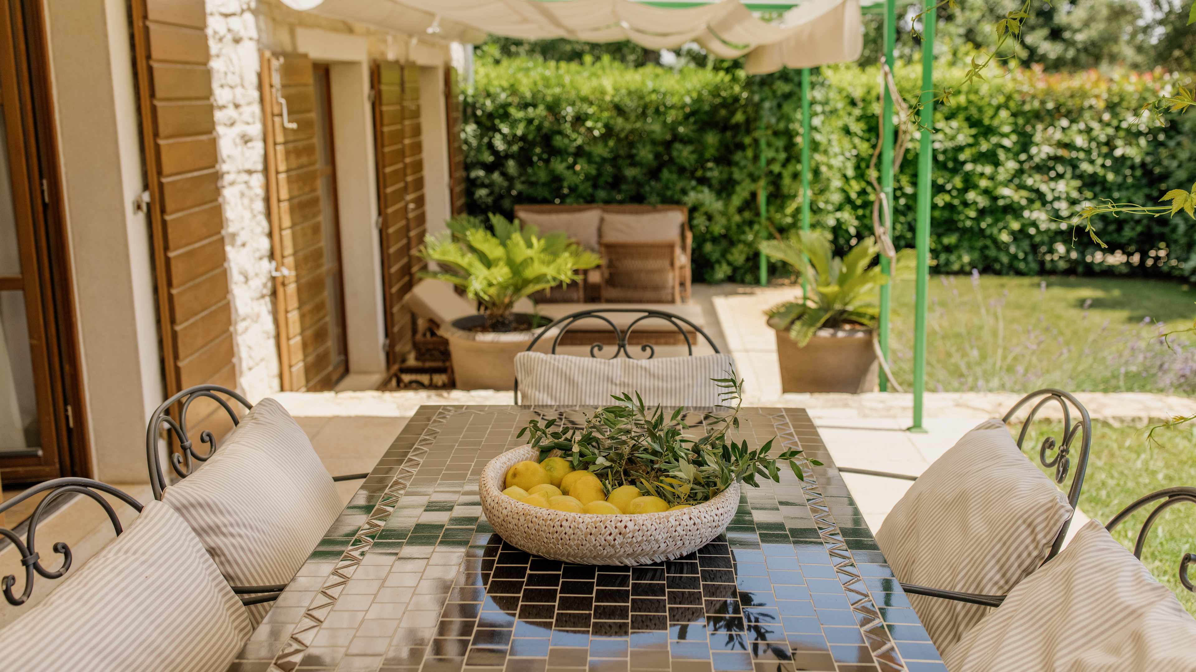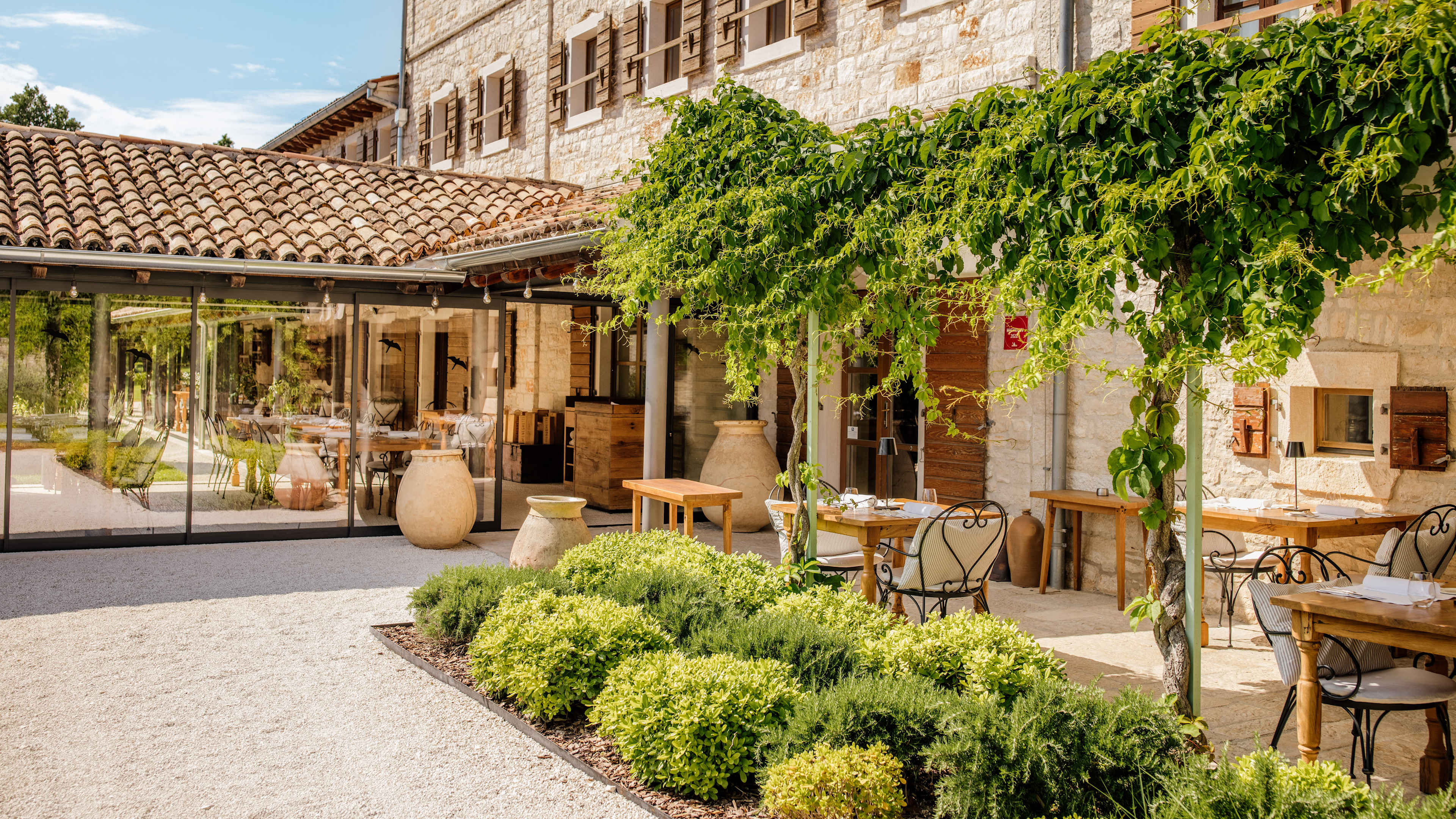 Tables beneath the pergola in the courtyard for the win. Those old Istrian stone walls look just dreamy by the light of a flickering candle.