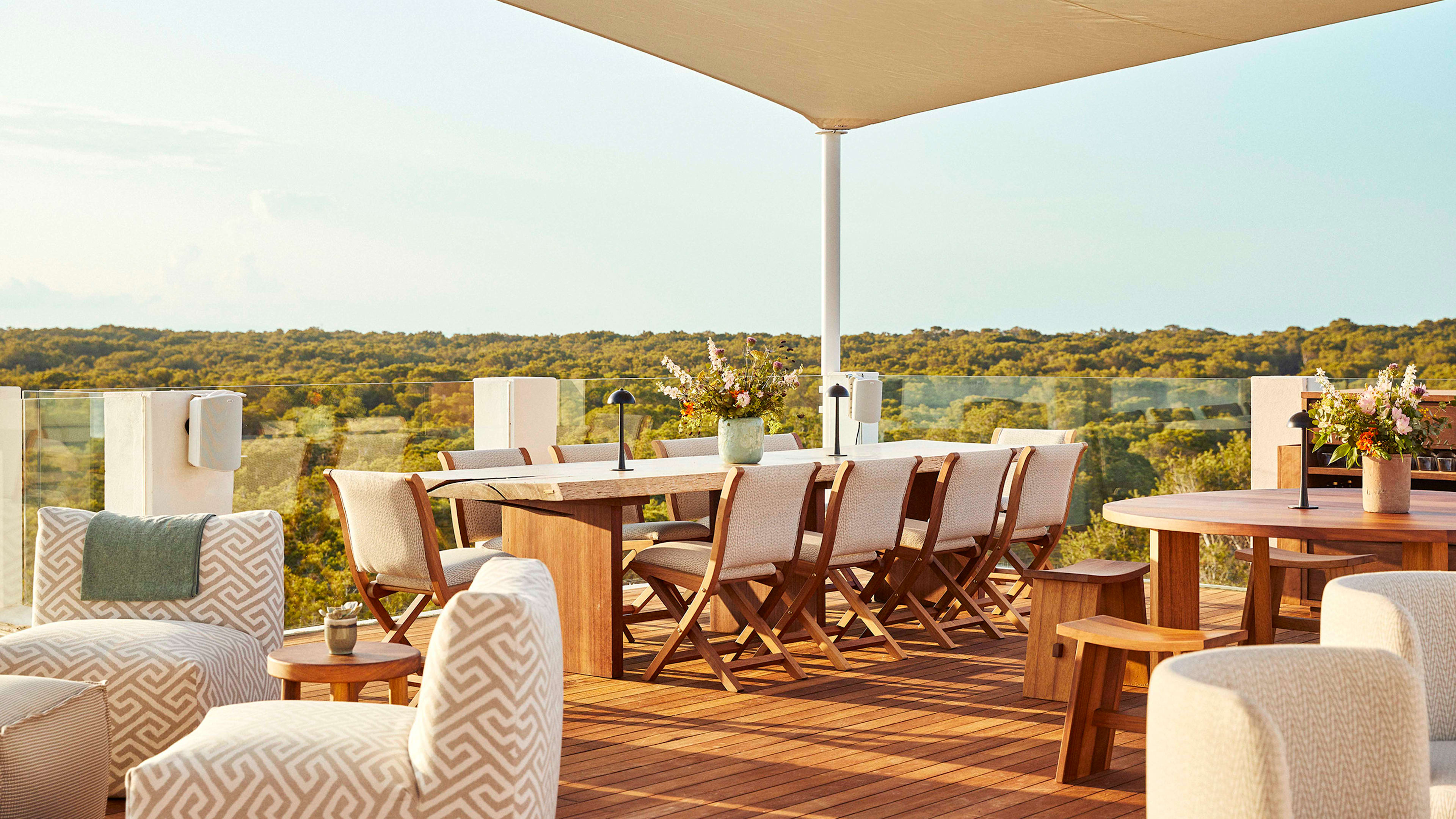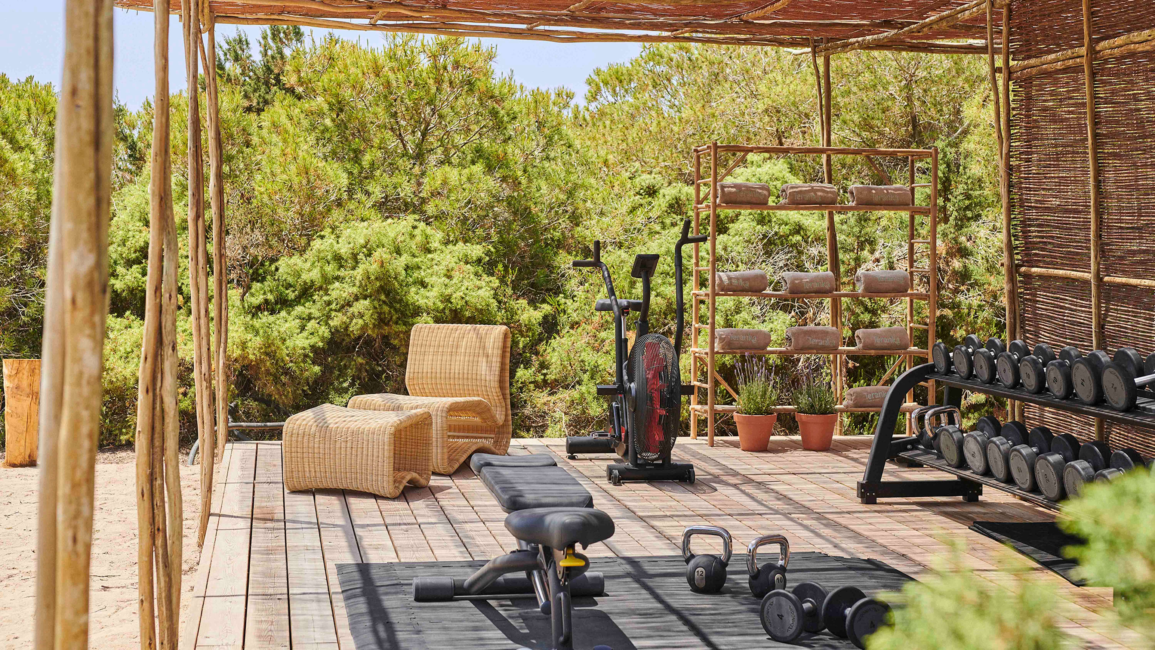 Being generally too hot to use during much of the day, the hotel’s open yoga deck encourages you to roll out of bed for energising sun salutations on the first rays. Bed too comfy? You can also wait until sunset to join guided yoga, meditation, and pilates sessions. Surrounded by scented juniper and pine woods and soundtracked by the gentle swoosh of the nearby sea, the setting could hardly be more conducive to finding (or indeed losing) yourself. If working out is more your bag, the hotel’s open-air jungle-style gym has been built to blend into its natural surroundings.