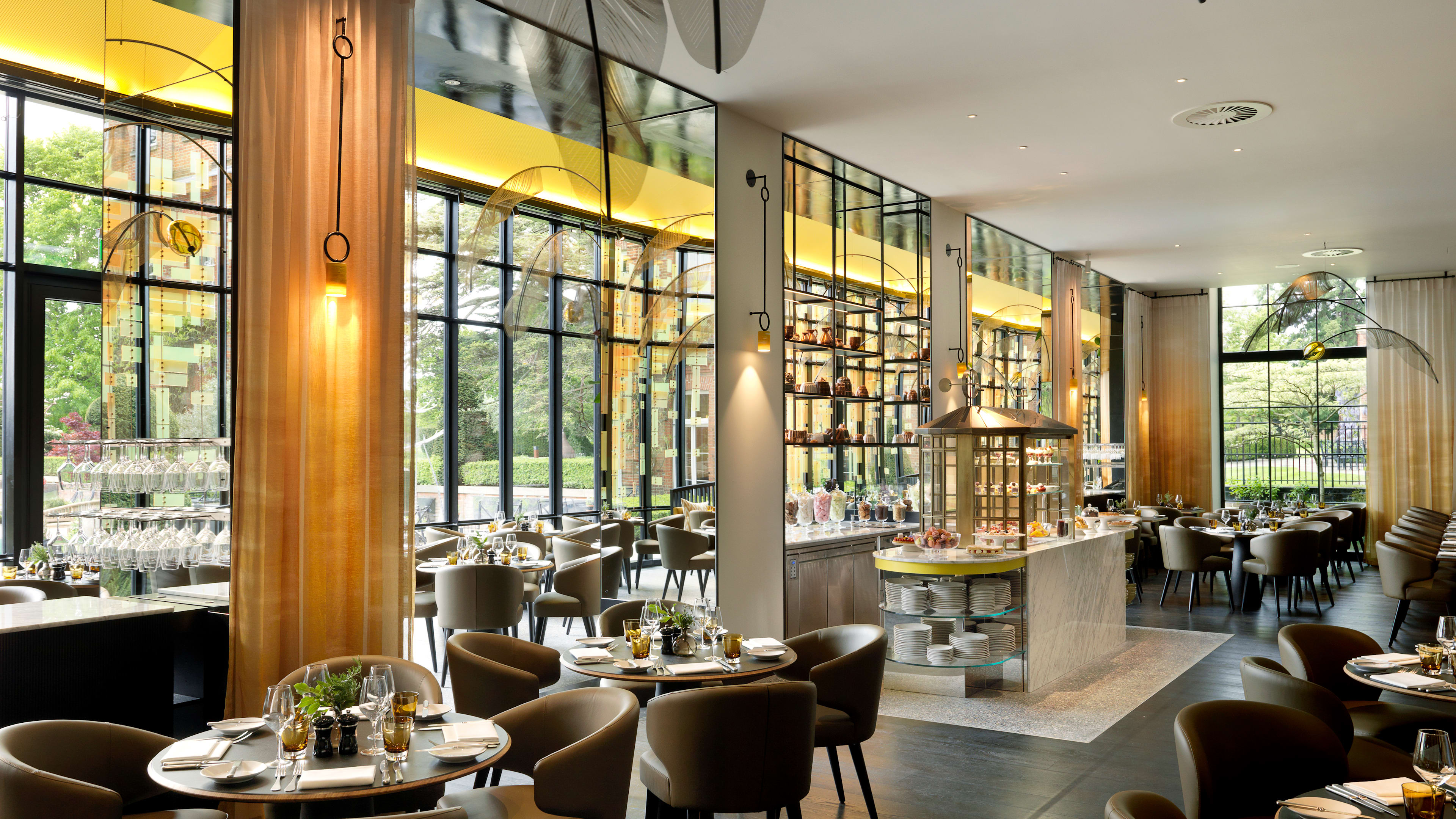 As you pass through the archway entrance at the Stables, the restaurant is on one side, the bar on the other with terrace tables overlooking the golf course. It has a bar menu, so you can dine here, too, or bag a rustic booth and order a Hugo Spritz with lime, mint and prosecco, or a house lemonade made with lemon thyme syrup. In a light-filled space with stools at the bar and a mix of dining-height and low-slung tables, the Glasshouse Bar is a laid-back spot for grazing on sushi and browsing an international wine list and starred line-up of cocktails. The latter are crafted using herbs and fruit grown in the hotel’s walled garden: try a cognac-based prescription julep or Grove Mary made with sriracha. You can waft in your robe and slippers to a table on the terrace at Sequoia Spa, which serves tea, coffee, smoothies, juices and protein shakes, plus a small selection of wines by the glass.