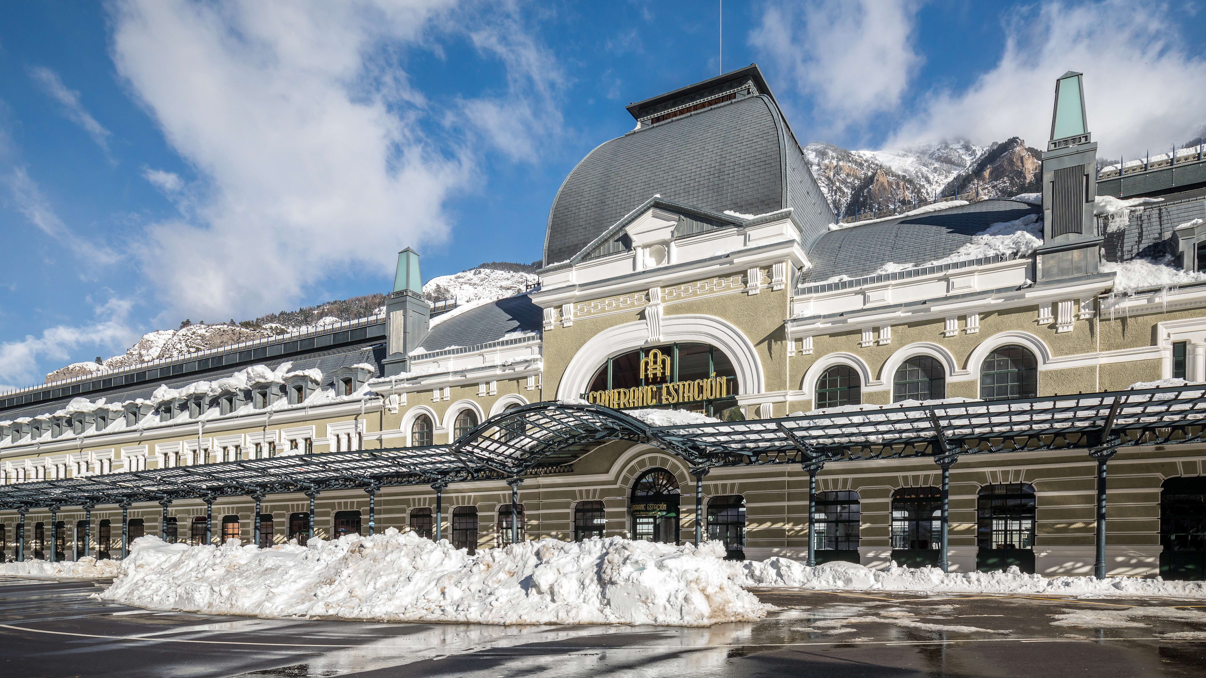 Since there’s a station right outside, it’d be rude to not arrive by rail – trains chug in to Estación de Canfranc from cities across Spain, including Madrid and Barcelona (journey time to and from both is around six hours).