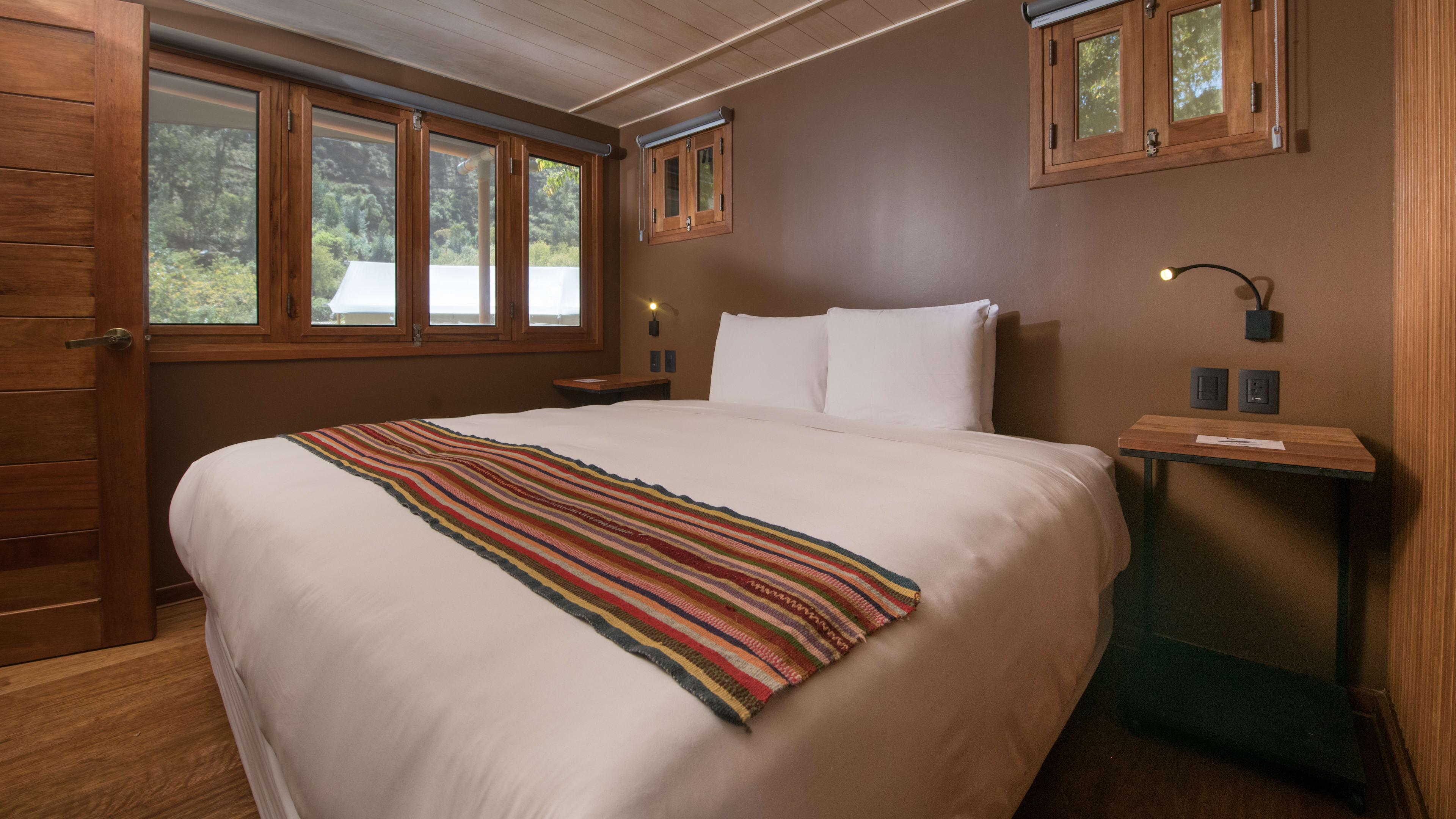Each tented lodge is surrounded by a different type of native flower, which gives your room its name (and unique aroma). As the sacred flower of the Incas and national plant of Peru, the cantuta-covered lodge is a strong choice if you’re visiting during spring (September to November), when its bright pink flowers are in bloom. There’s an African safari-style feel to every lodge, but especially in the upper bedroom of the Group Tents where you can sleep directly beneath the canvas.