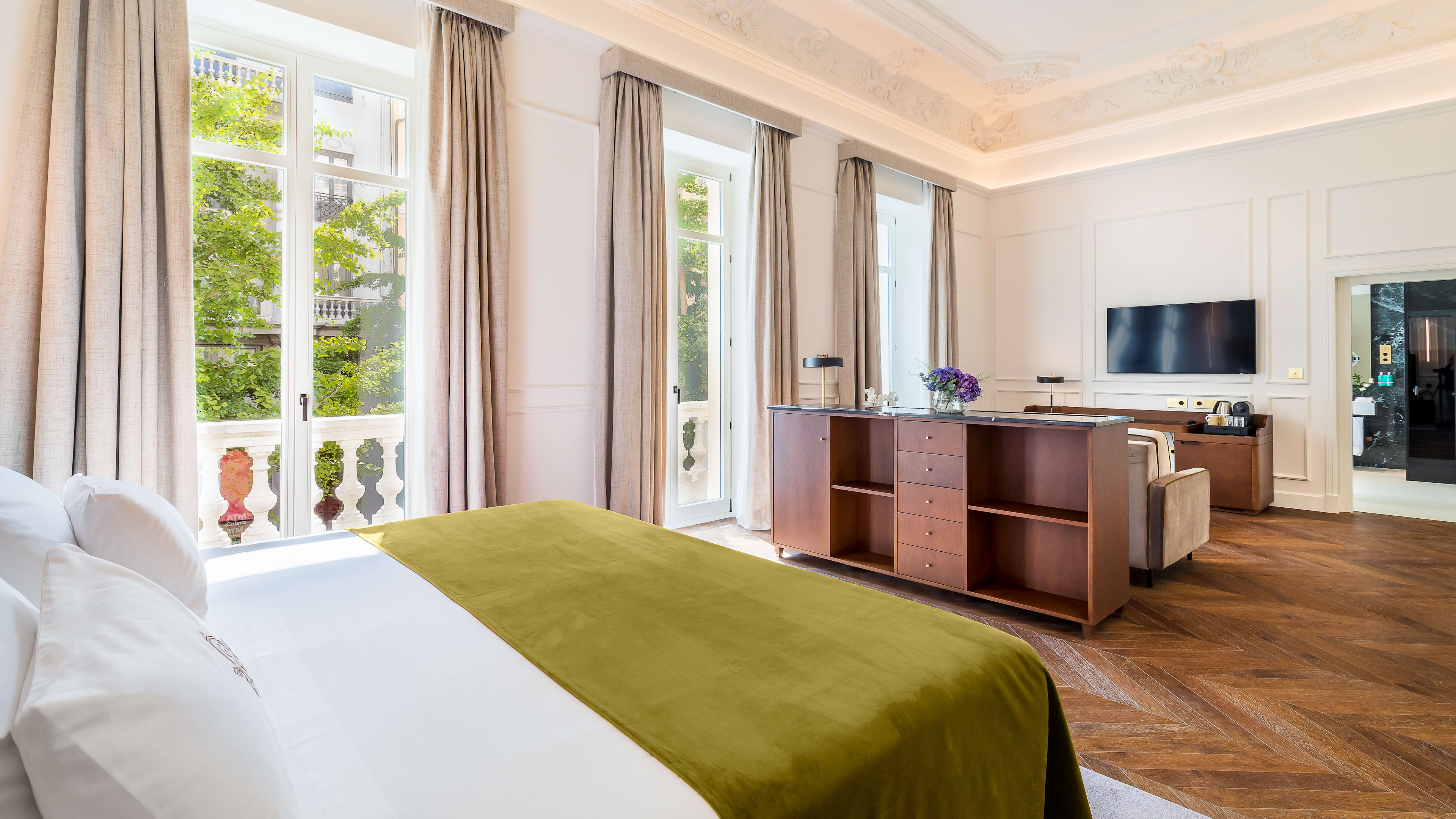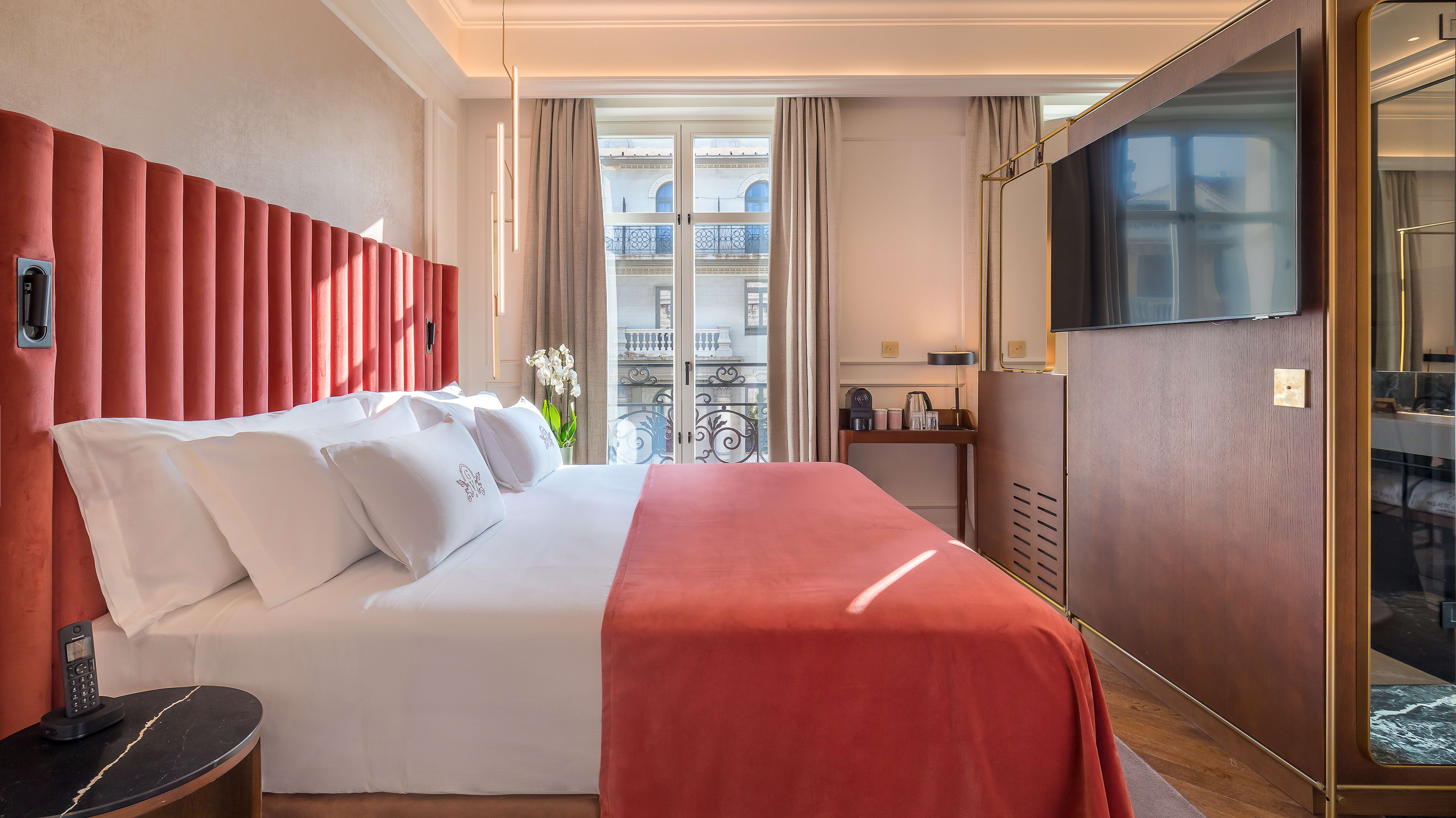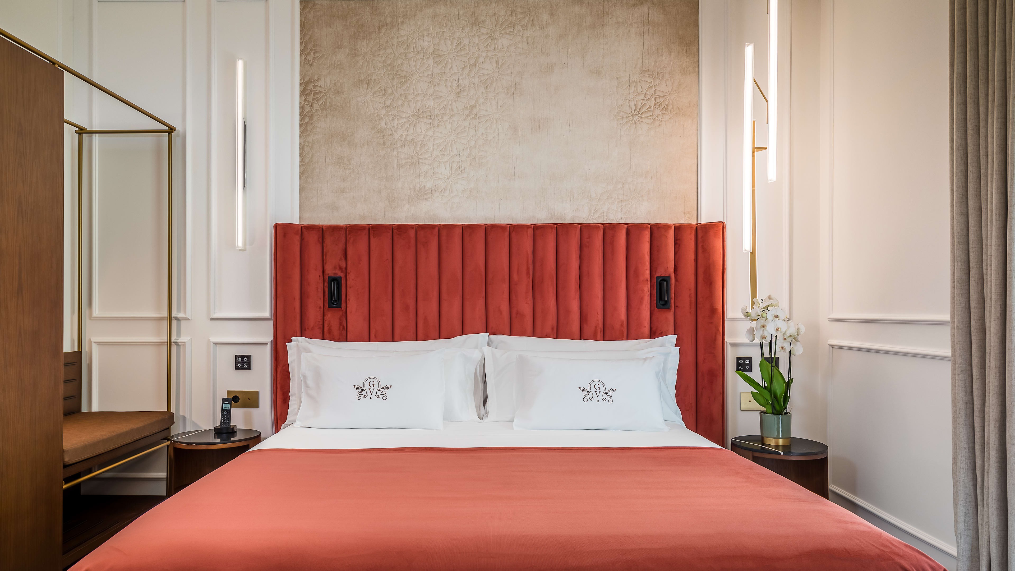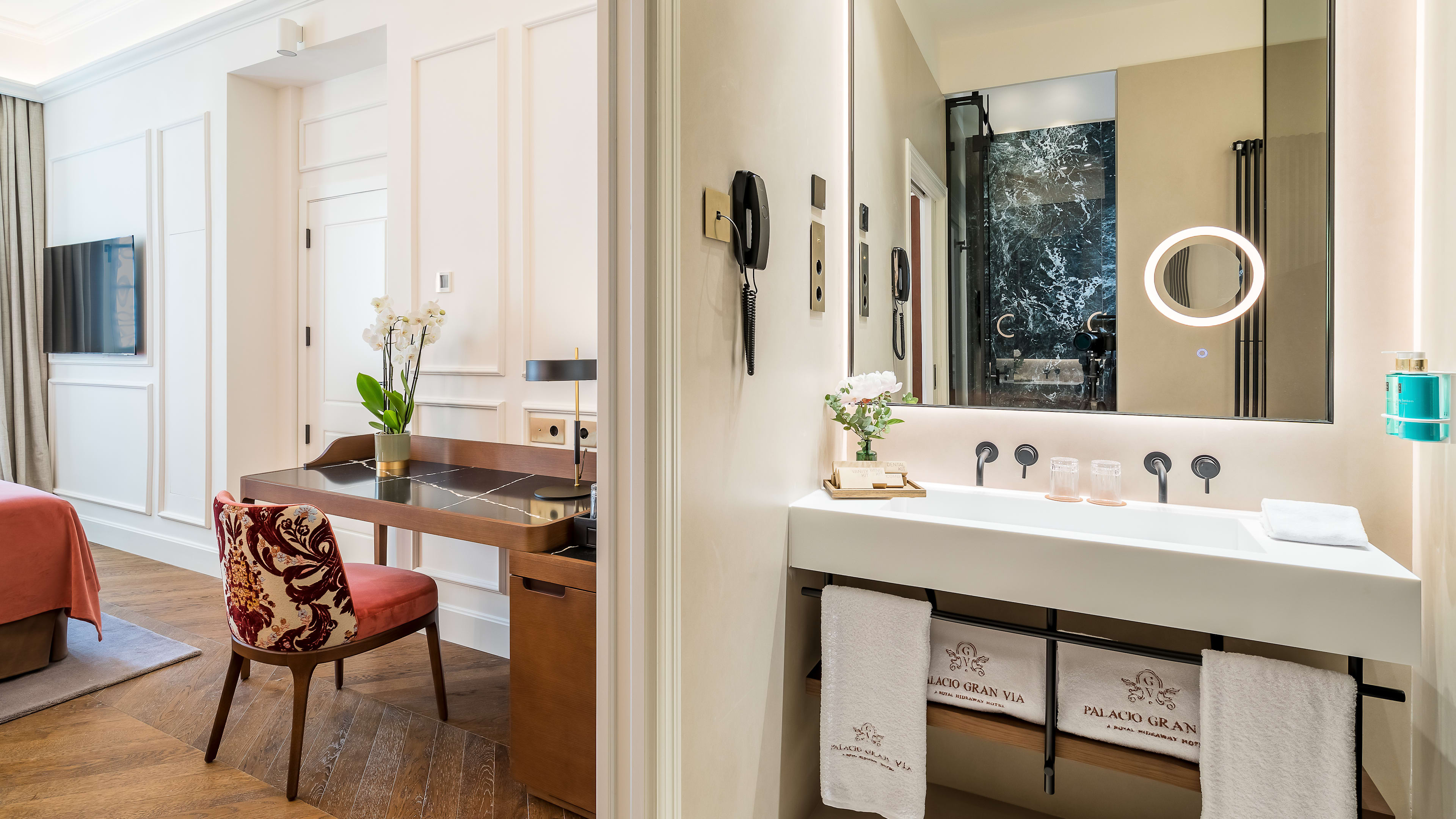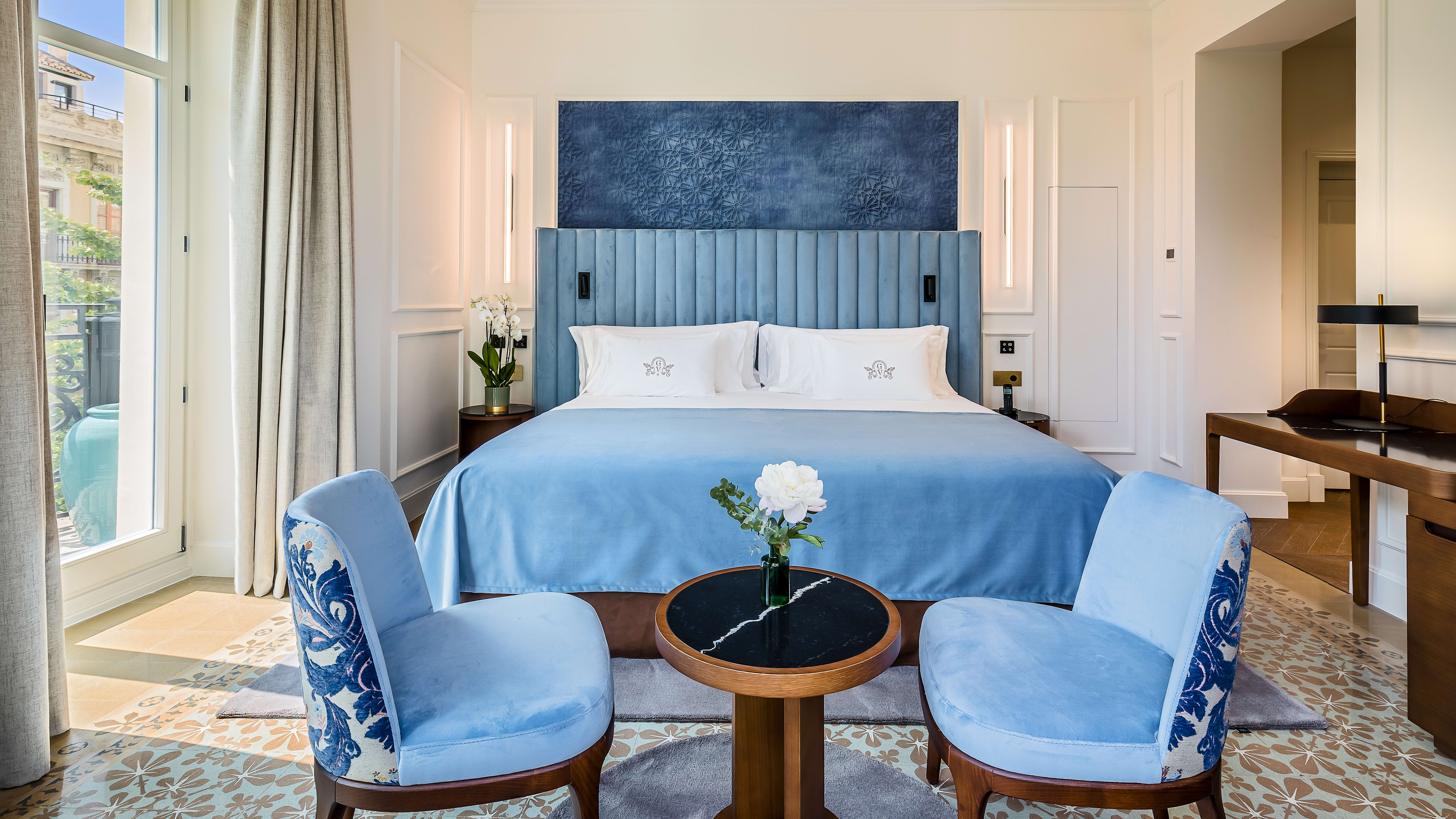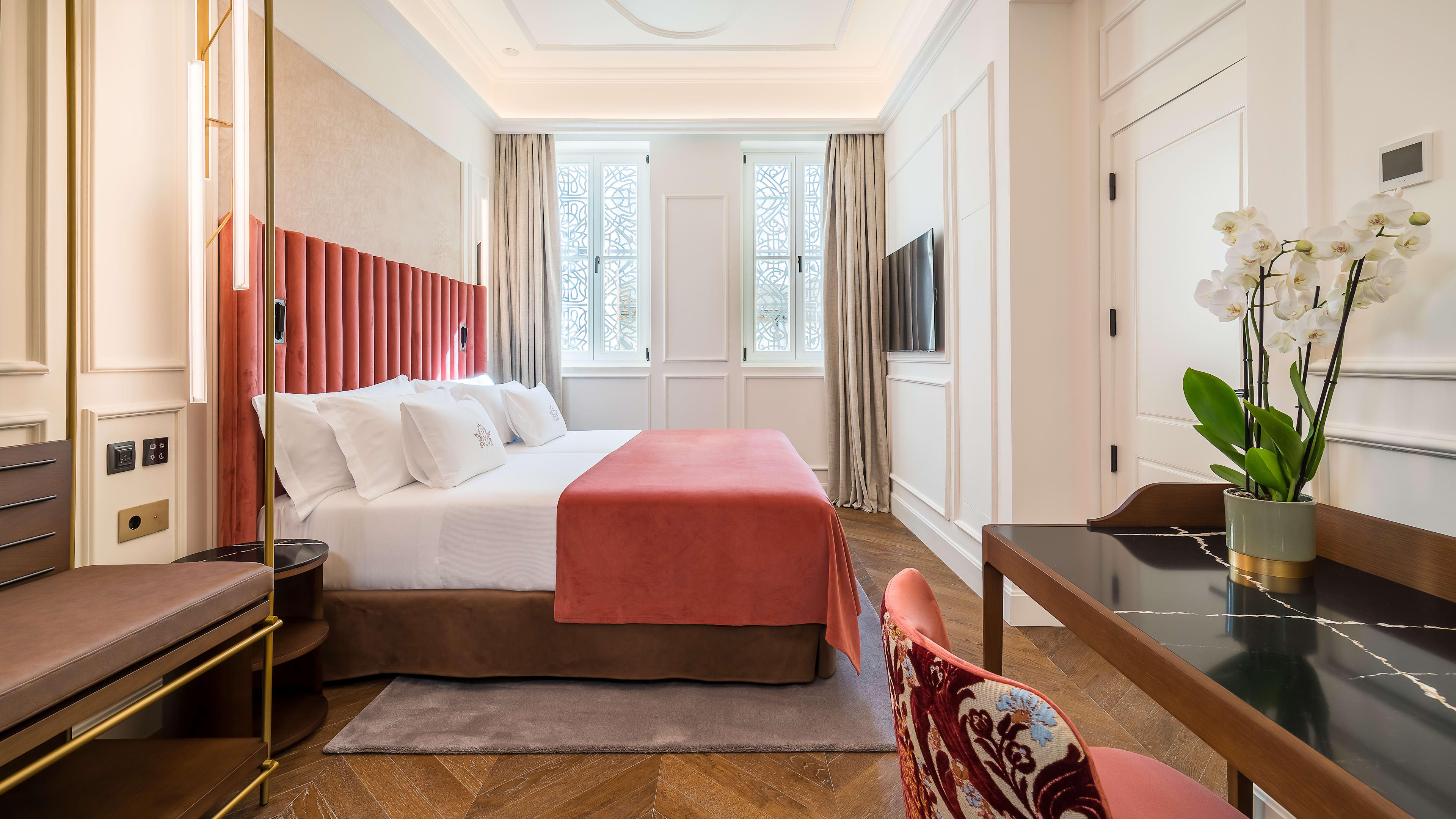 Unless you’re watching a Kubrick movie, hotel corridors aren’t normally something to shout about, but each floor here has a different style of gloriously colourful and detailed tiling. And more nods to the Alhambra are found in the room names, with each named after a flower you’ll find in the complex’s lush gardens. Each is elegantly outfitted, but we like the Suite, which hoards more original features than most and has the city’s knack for flair; it has a gallery with stained-glass windows, an ornate ceiling, flouncy mouldings and more. And the Deluxe Room with Balcony gives you dual-aspect views of the Gran Vía.