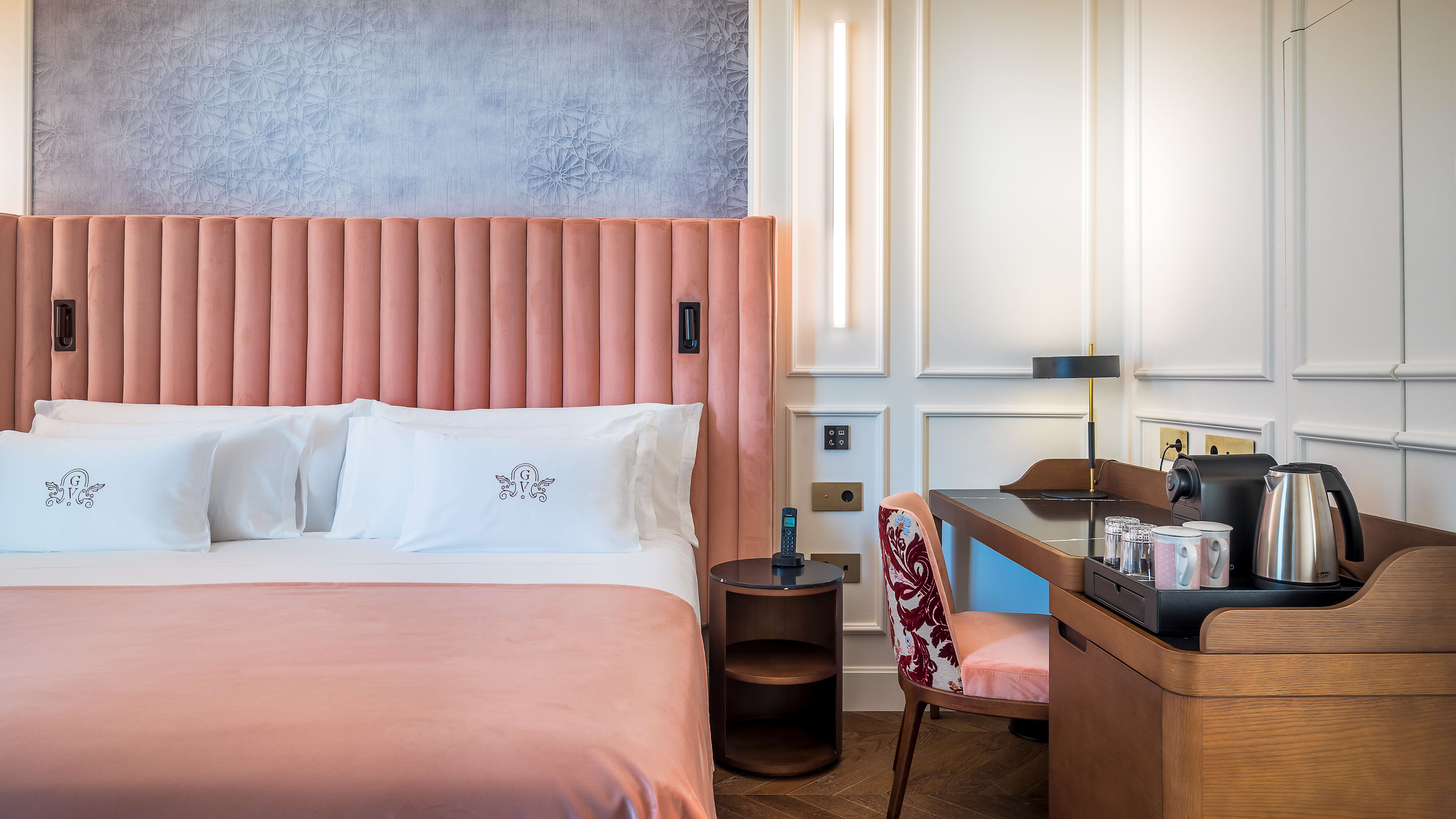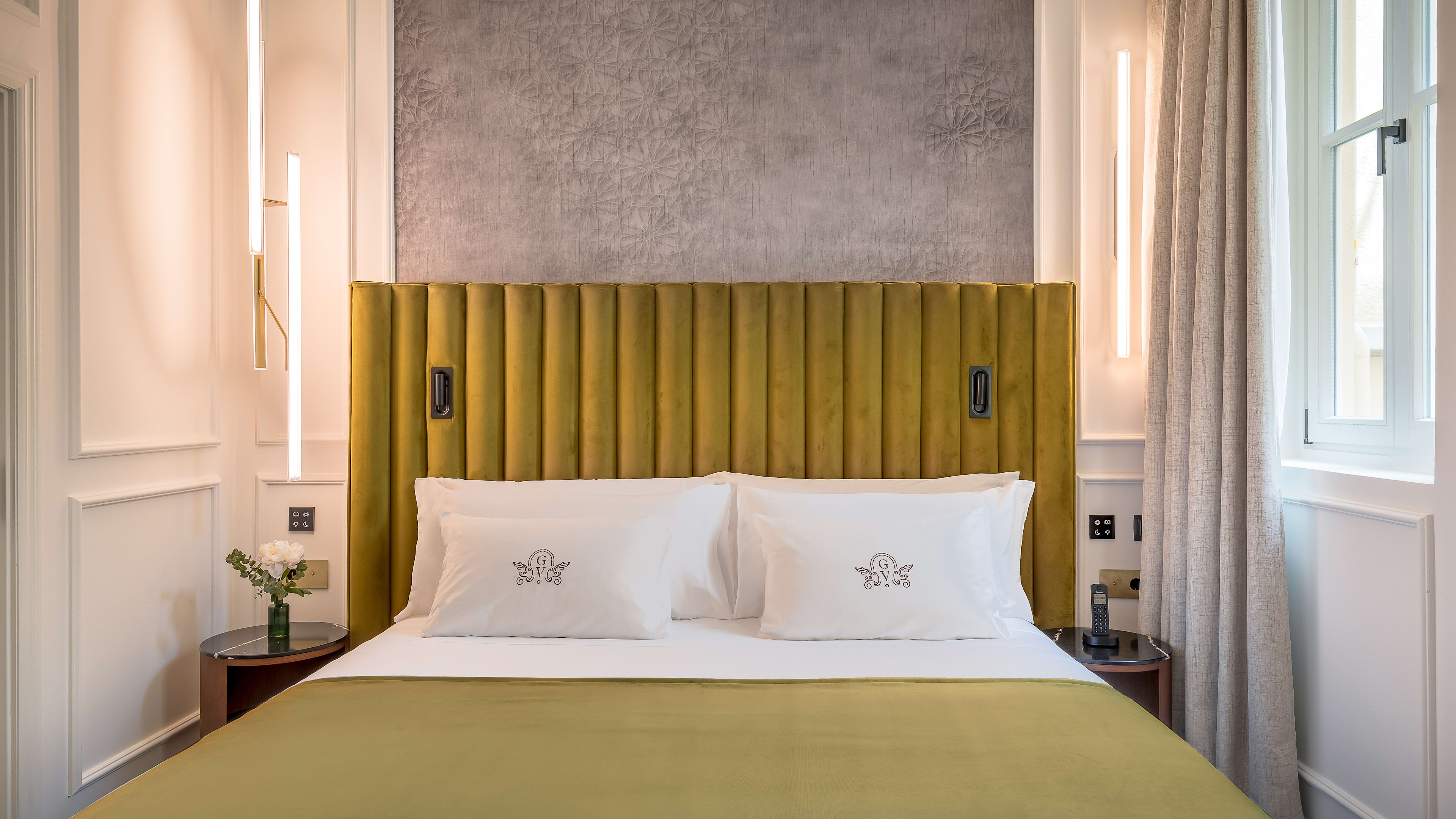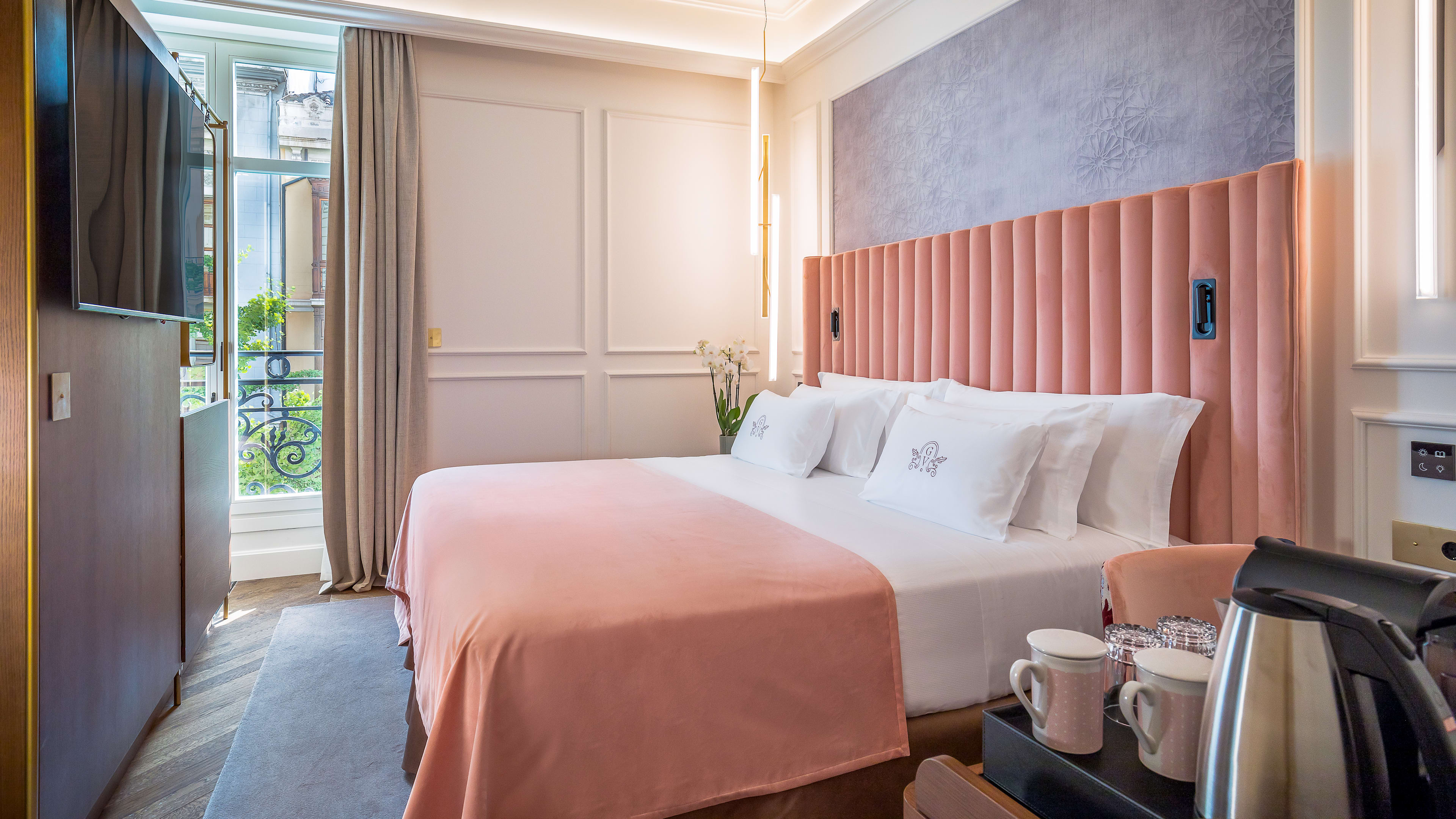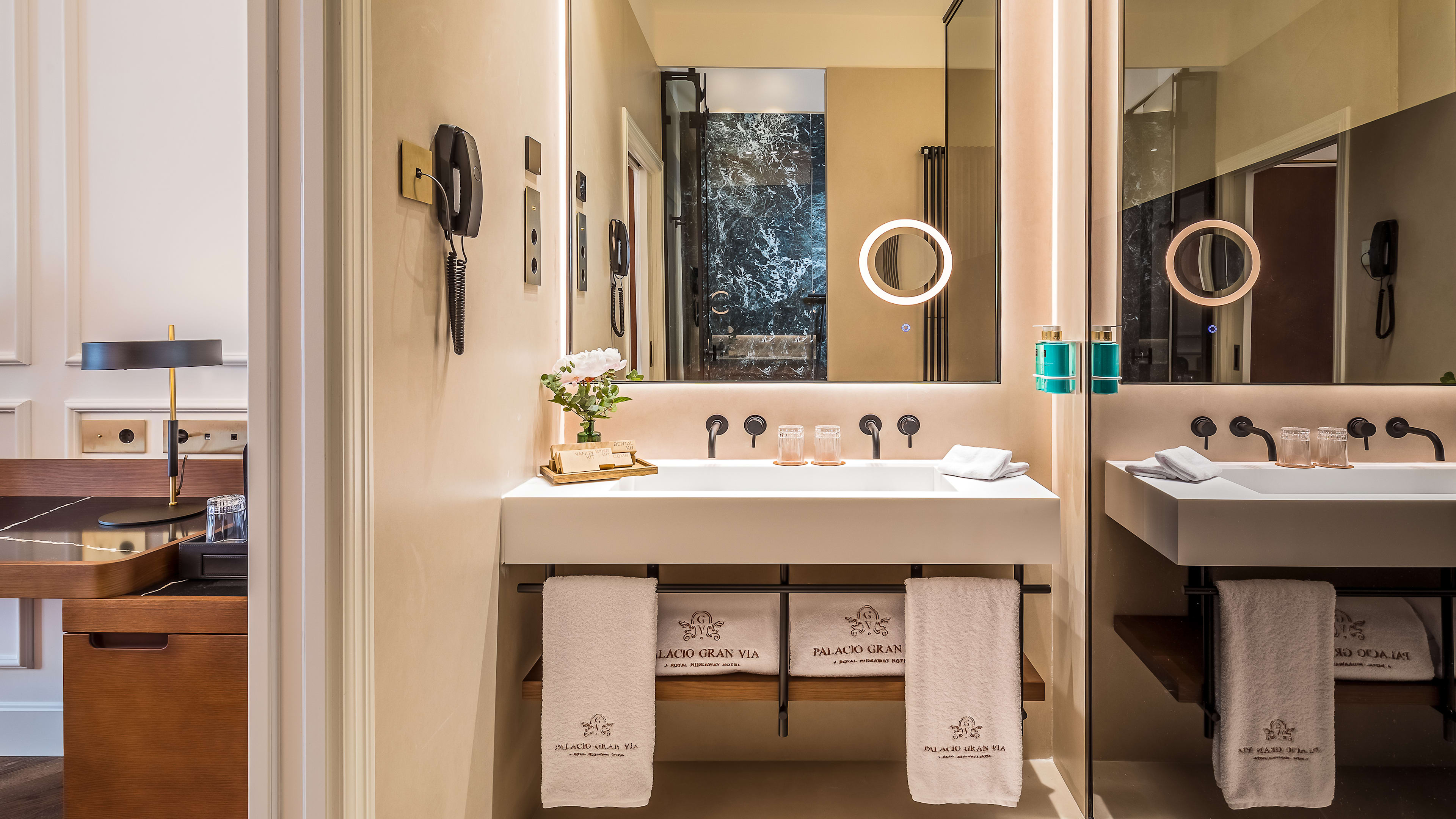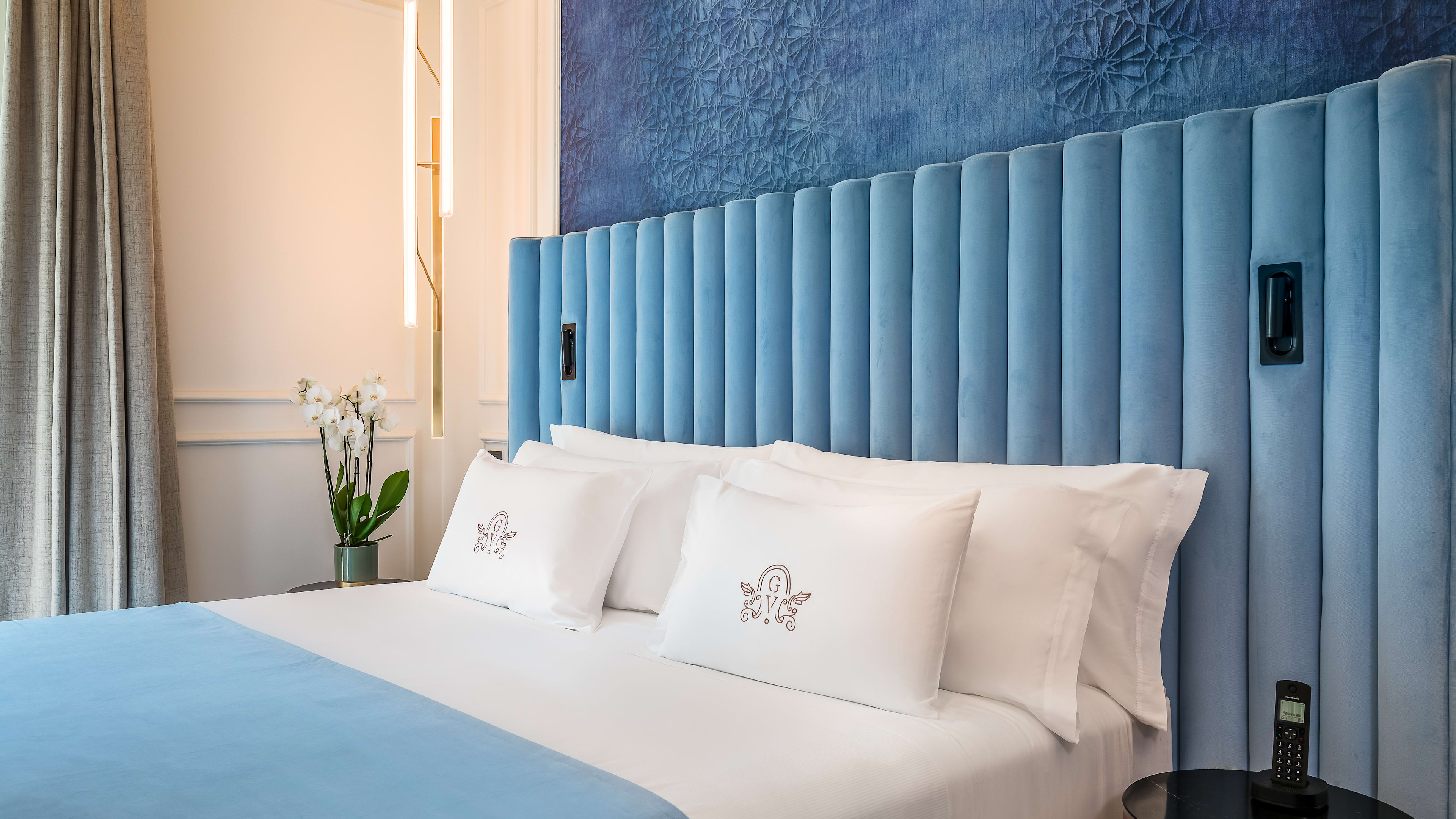 Unless you’re watching a Kubrick movie, hotel corridors aren’t normally something to shout about, but each floor here has a different style of gloriously colourful and detailed tiling. And more nods to the Alhambra are found in the room names, with each named after a flower you’ll find in the complex’s lush gardens. Each is elegantly outfitted, but we like the Suite, which hoards more original features than most and has the city’s knack for flair; it has a gallery with stained-glass windows, an ornate ceiling, flouncy mouldings and more. And the Deluxe Room with Balcony gives you dual-aspect views of the Gran Vía.