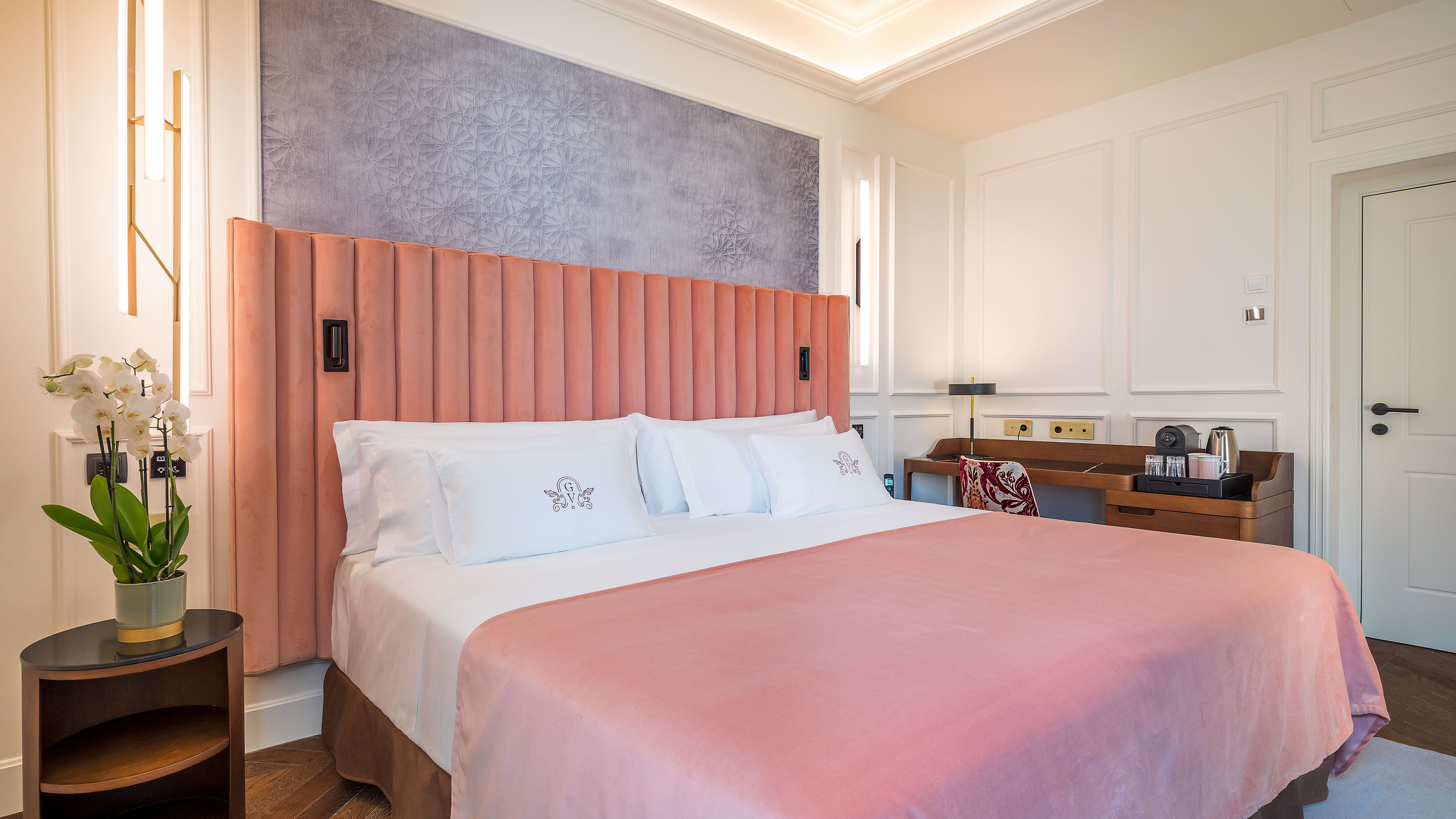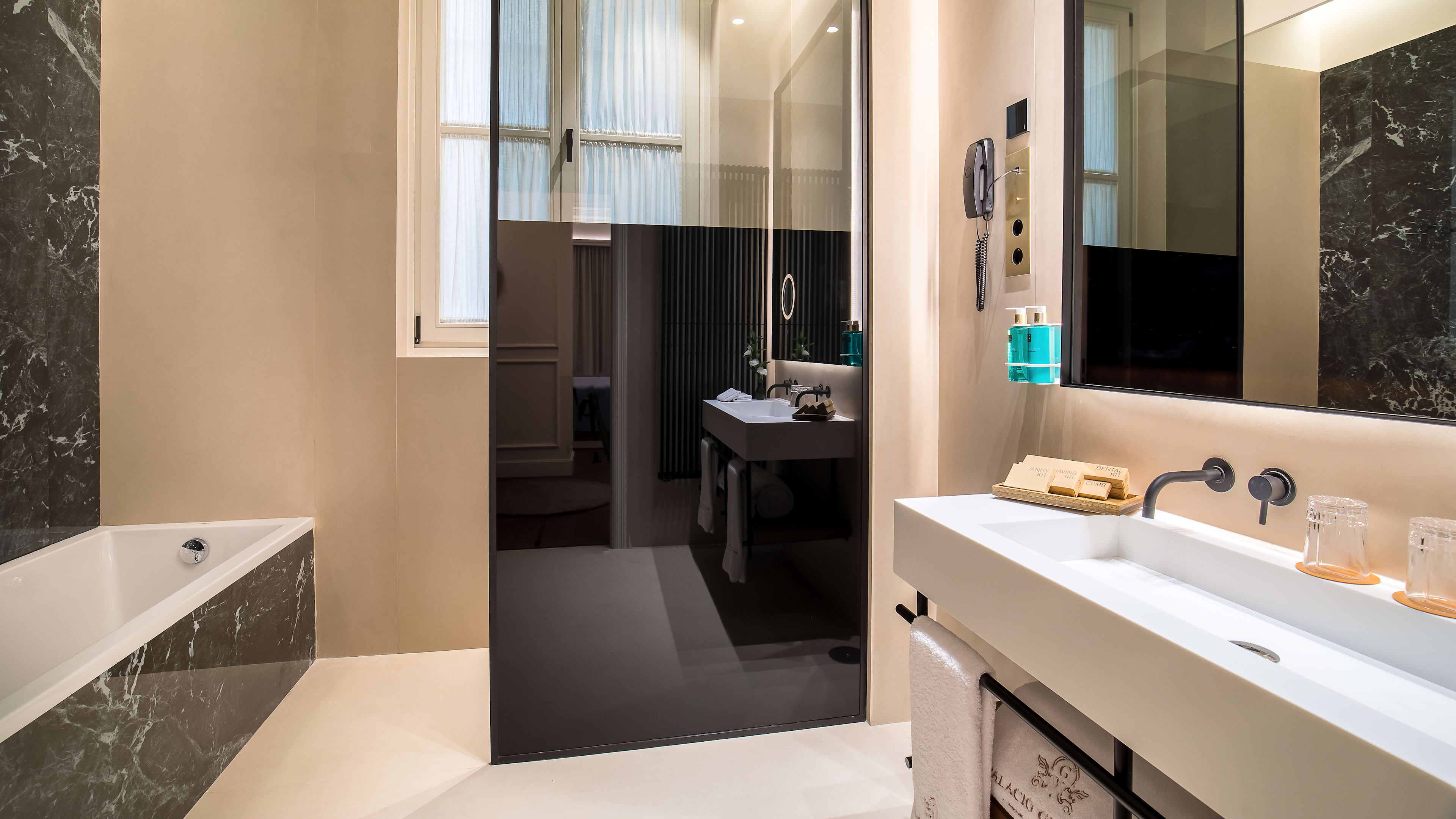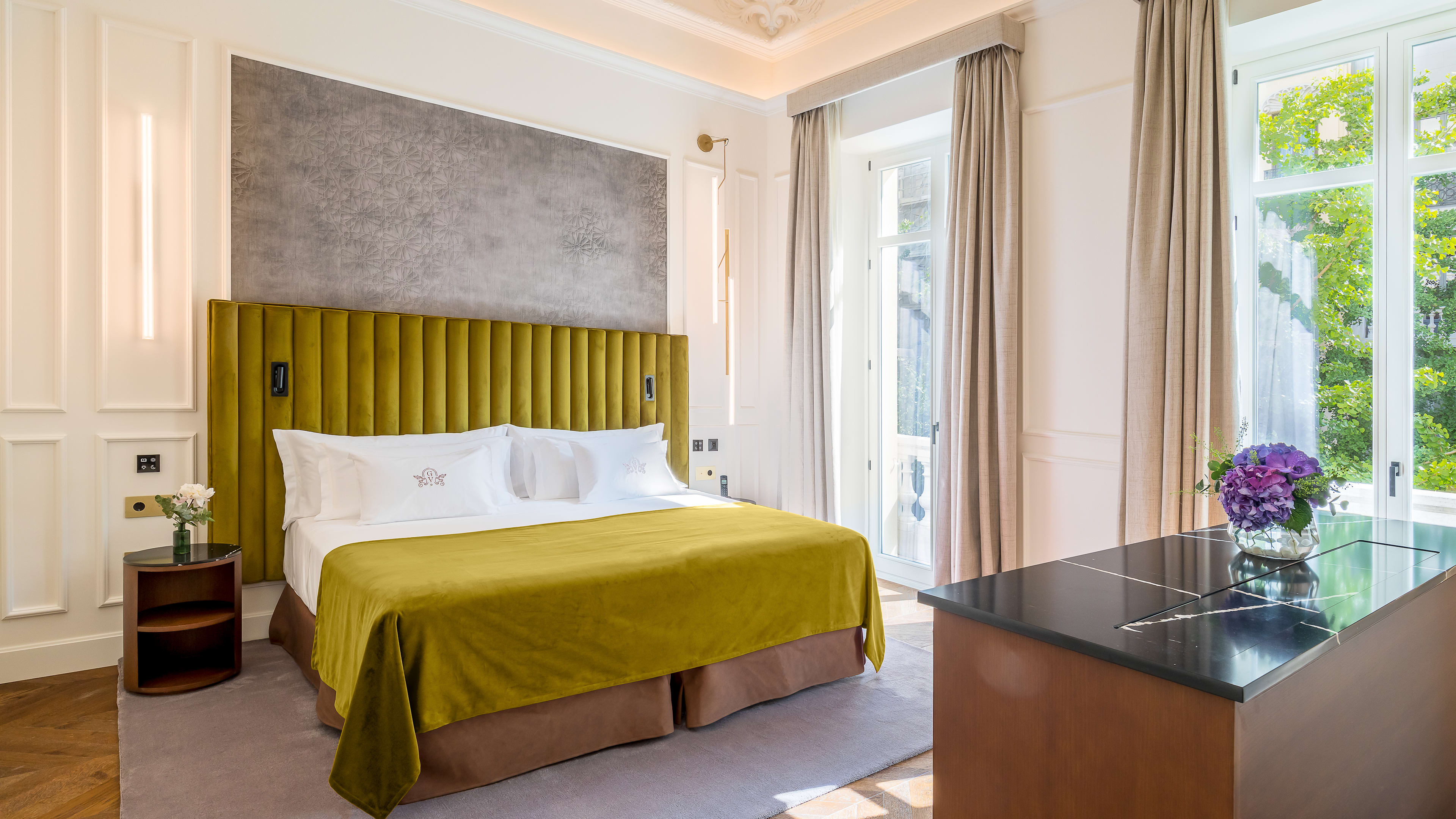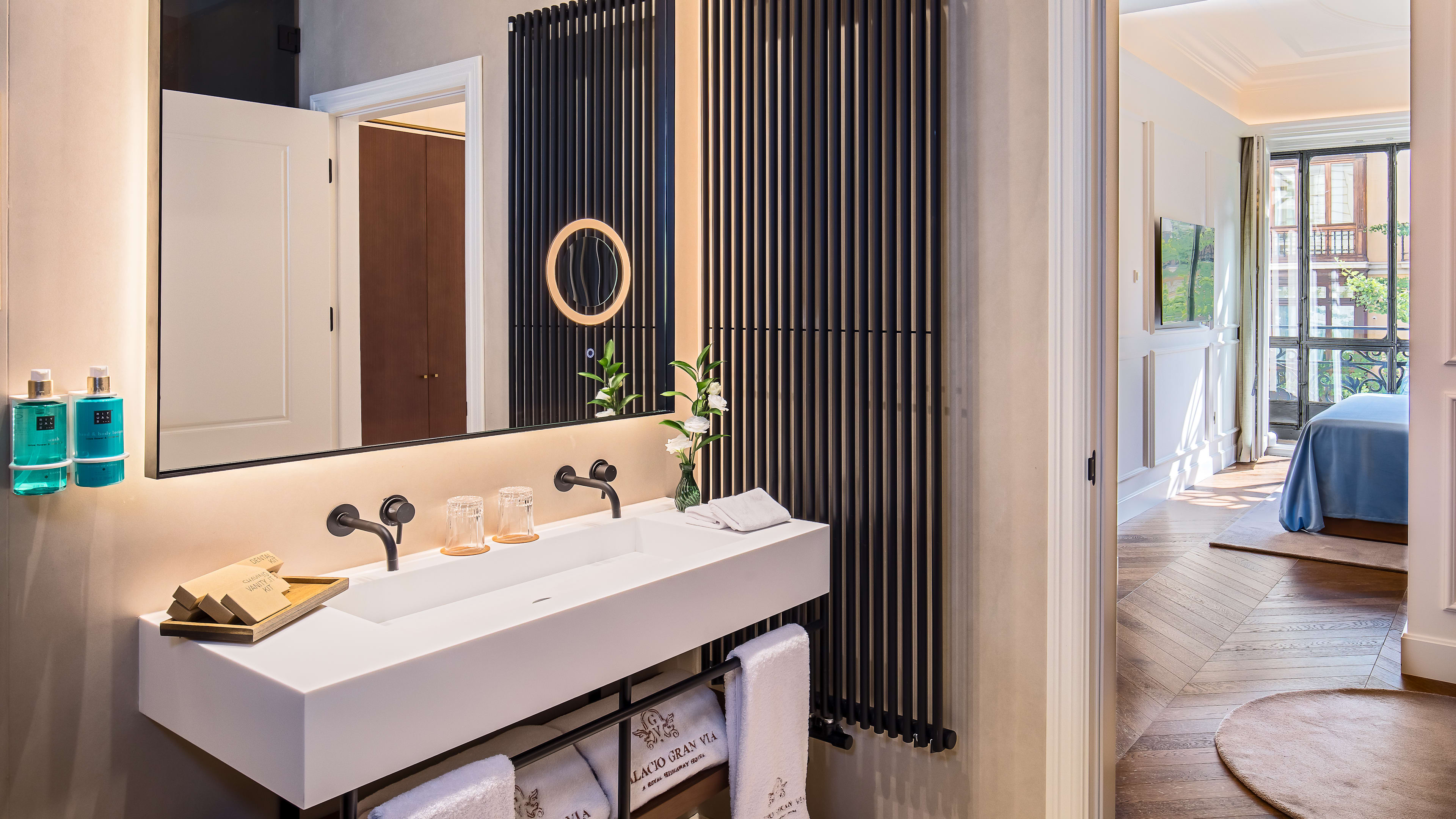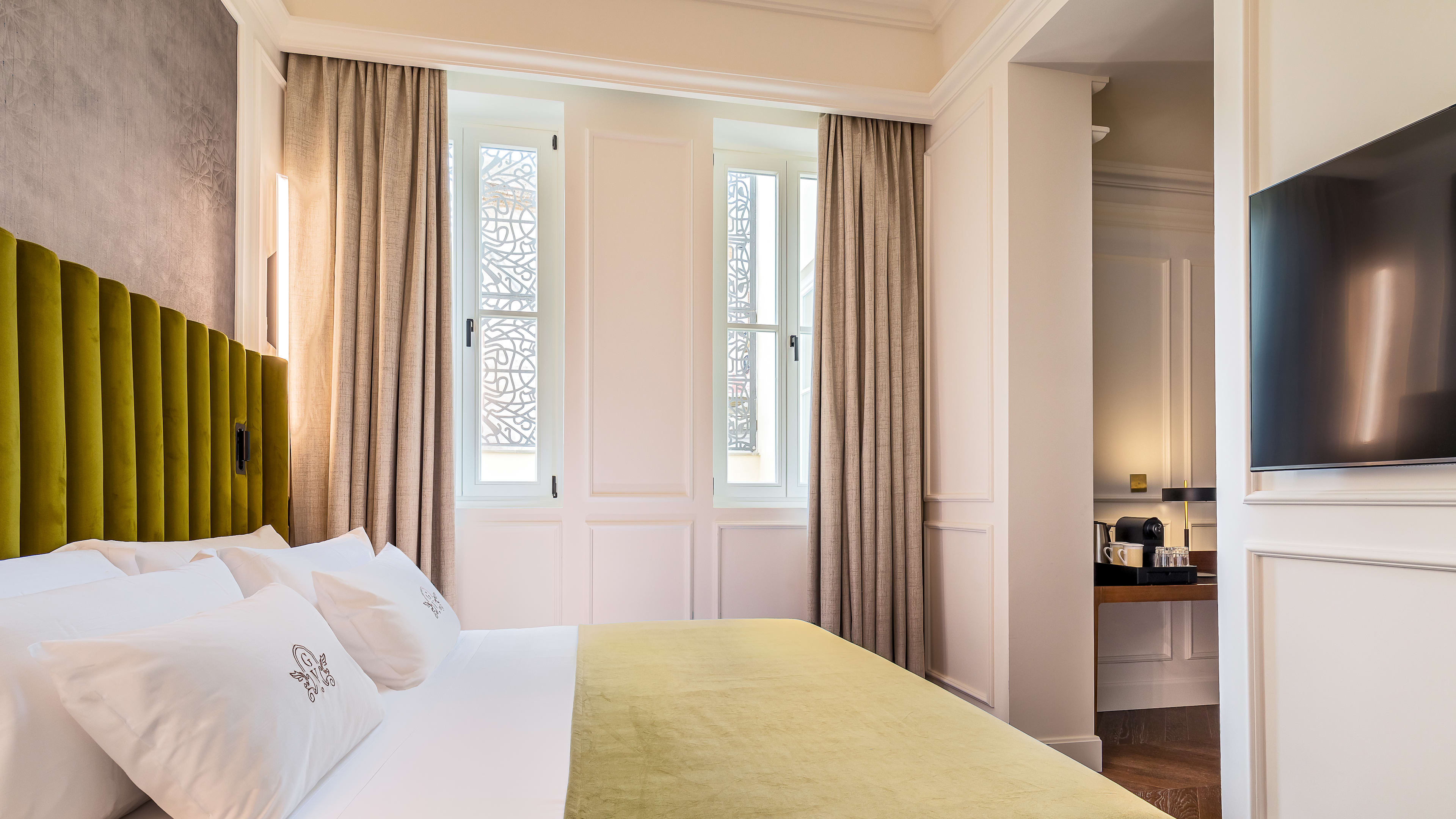 Unless you’re watching a Kubrick movie, hotel corridors aren’t normally something to shout about, but each floor here has a different style of gloriously colourful and detailed tiling. And more nods to the Alhambra are found in the room names, with each named after a flower you’ll find in the complex’s lush gardens. Each is elegantly outfitted, but we like the Suite, which hoards more original features than most and has the city’s knack for flair; it has a gallery with stained-glass windows, an ornate ceiling, flouncy mouldings and more. And the Deluxe Room with Balcony gives you dual-aspect views of the Gran Vía.