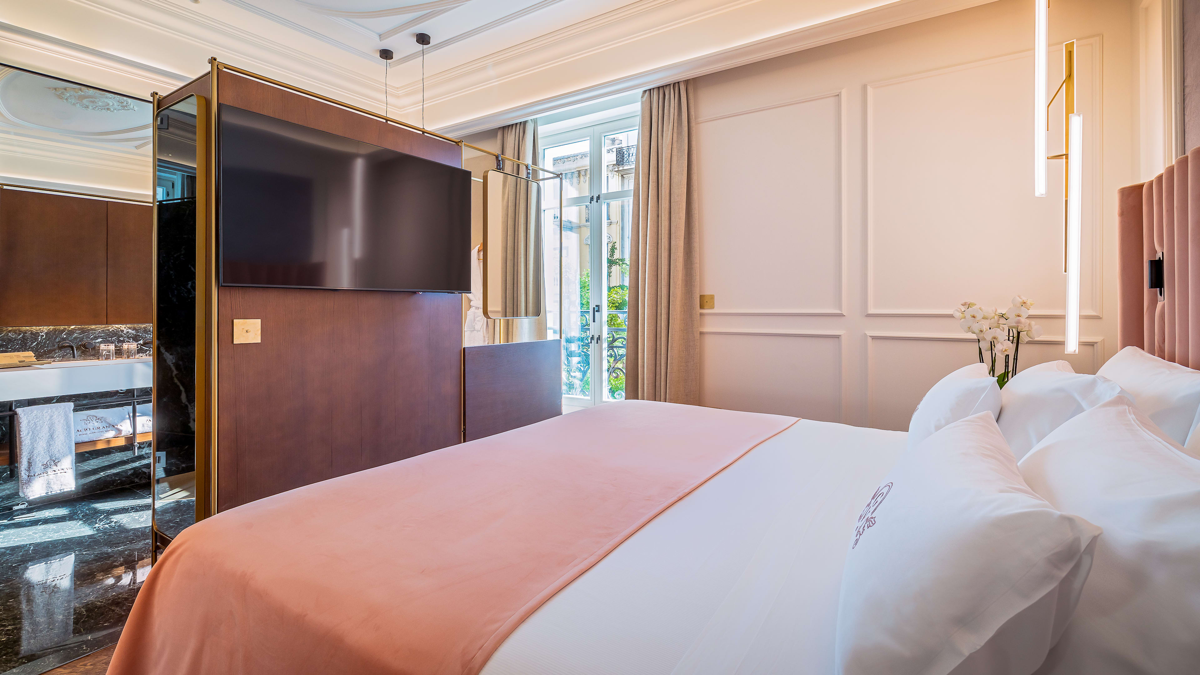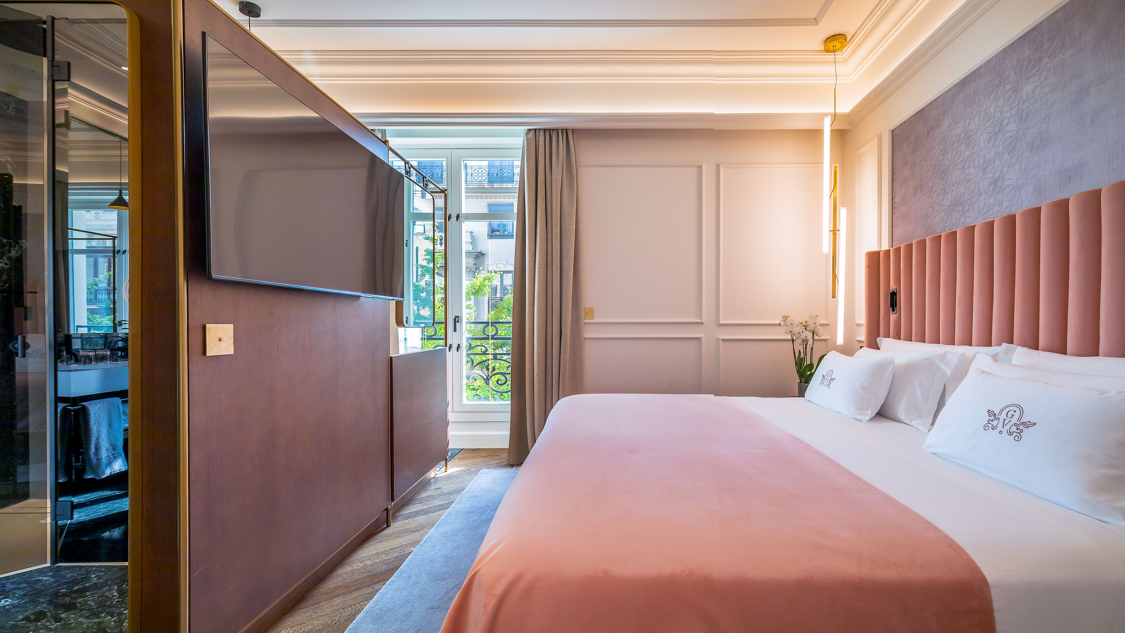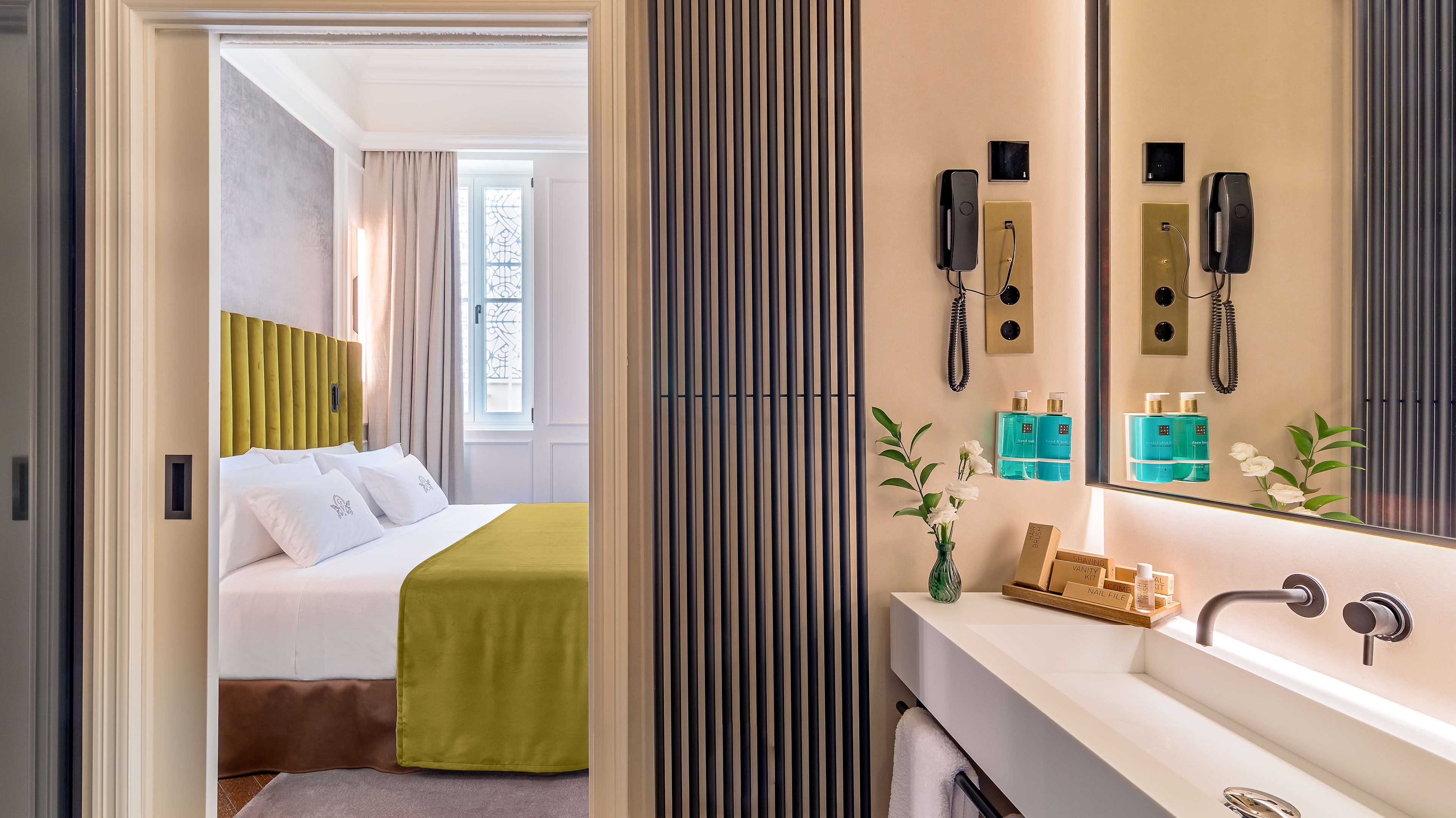 Roof terrace with solarium, gym, hammam, library lounge, charged laundry service, concierge, and free WiFi. In rooms: TV, Nespresso coffee machine, tea-making kit, minibar, air-conditioning, bathrobes and slippers, and Rituals bath products.