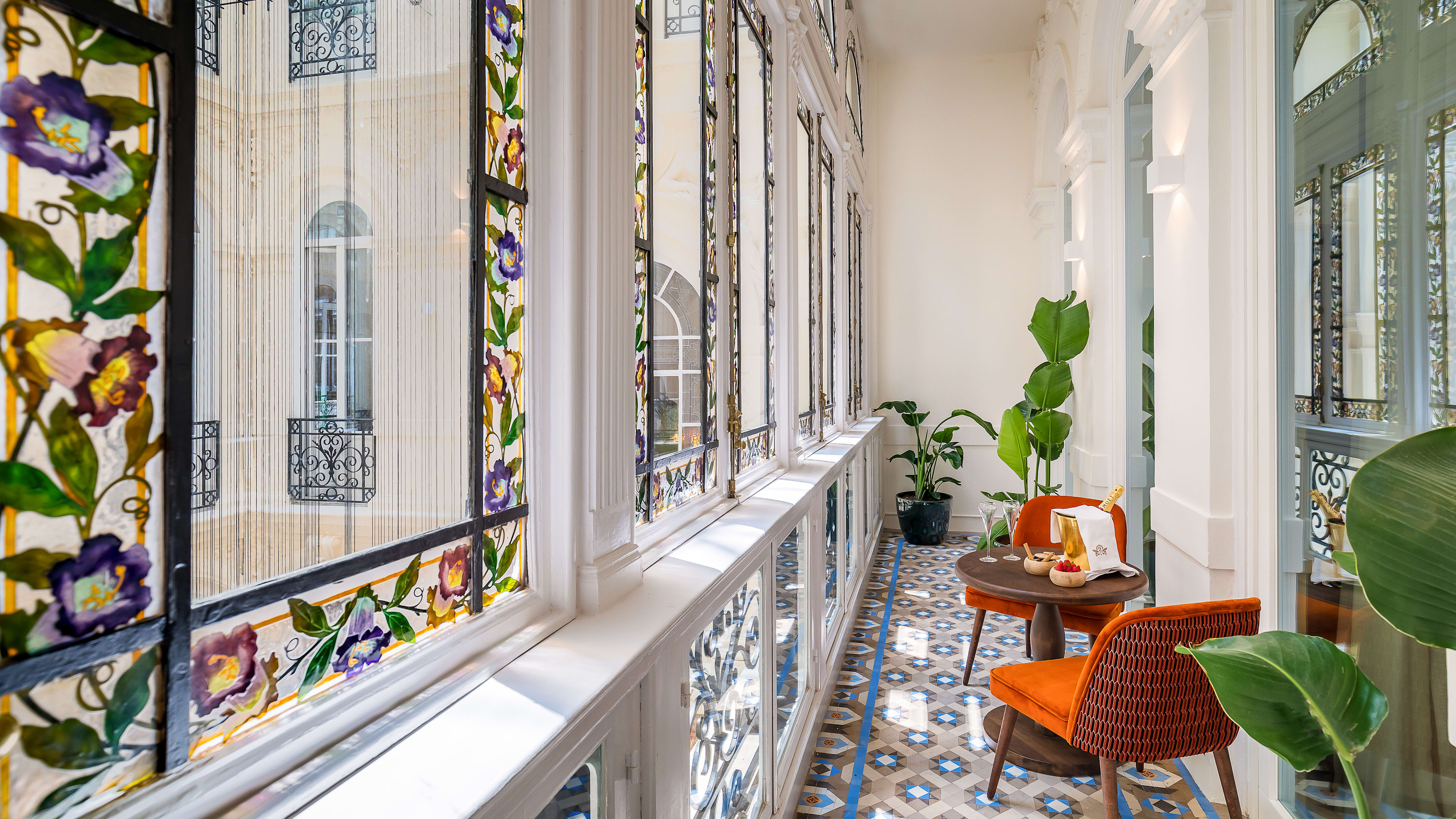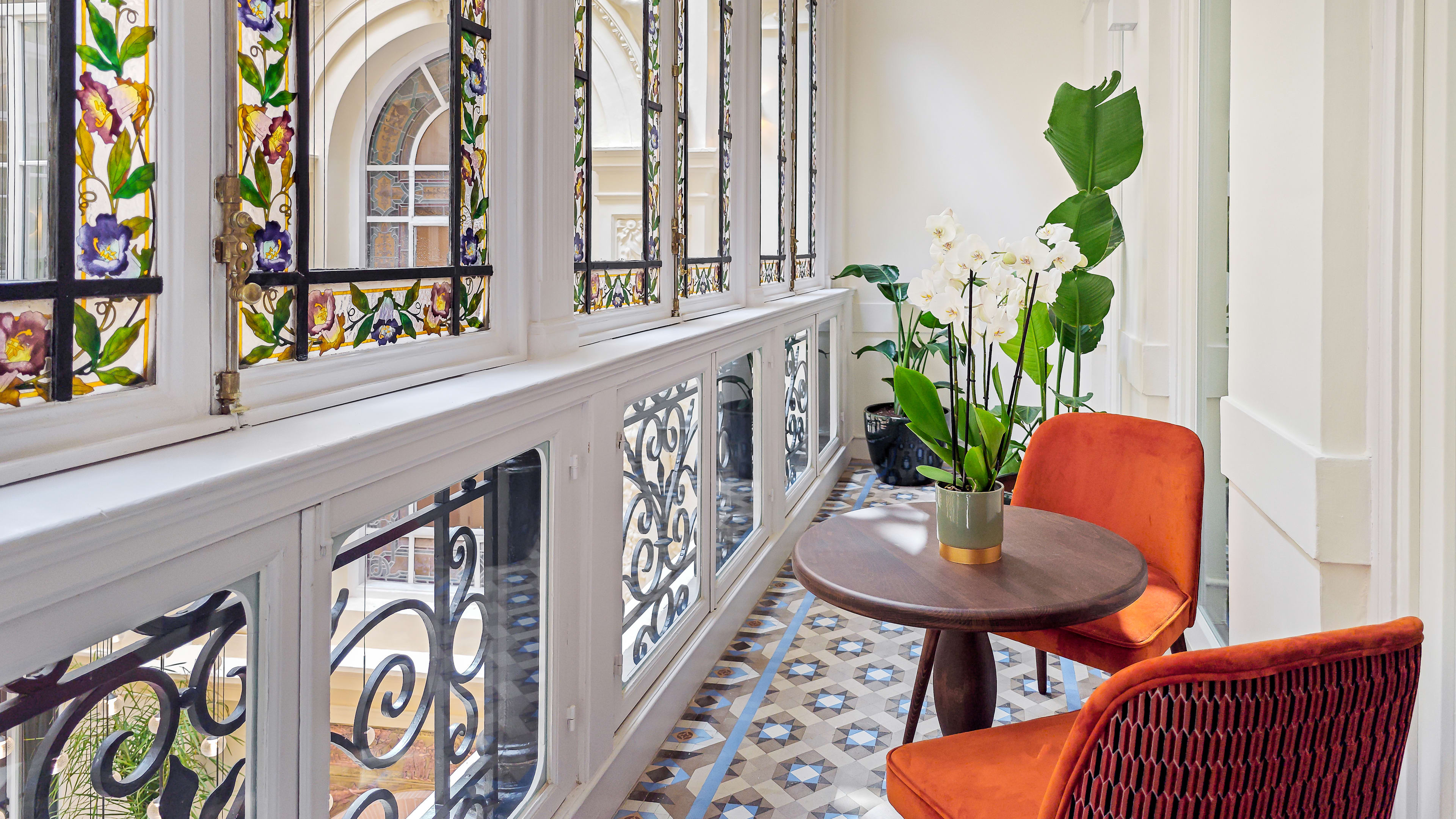 As tempting as breakfast in bed is, you should allow at least one morning for taking it in the hotel’s spectacular central patio – a soaring space where a multitude of pendant lights hang from a glass ceiling, surrounded by stained windows, palms and arches, tiles and stuccos. A row of original bank-teller kiosks, now glazed in, runs along one side. Alongside a Continental buffet, there’s a live cooking station where you can tell the chef how you like your eggs. And La Sucursal Grand Café is a wood-panelled and swagged space for cured meats and cheeses, seabass or sirloin to share, stacked sandwiches and sweets.
