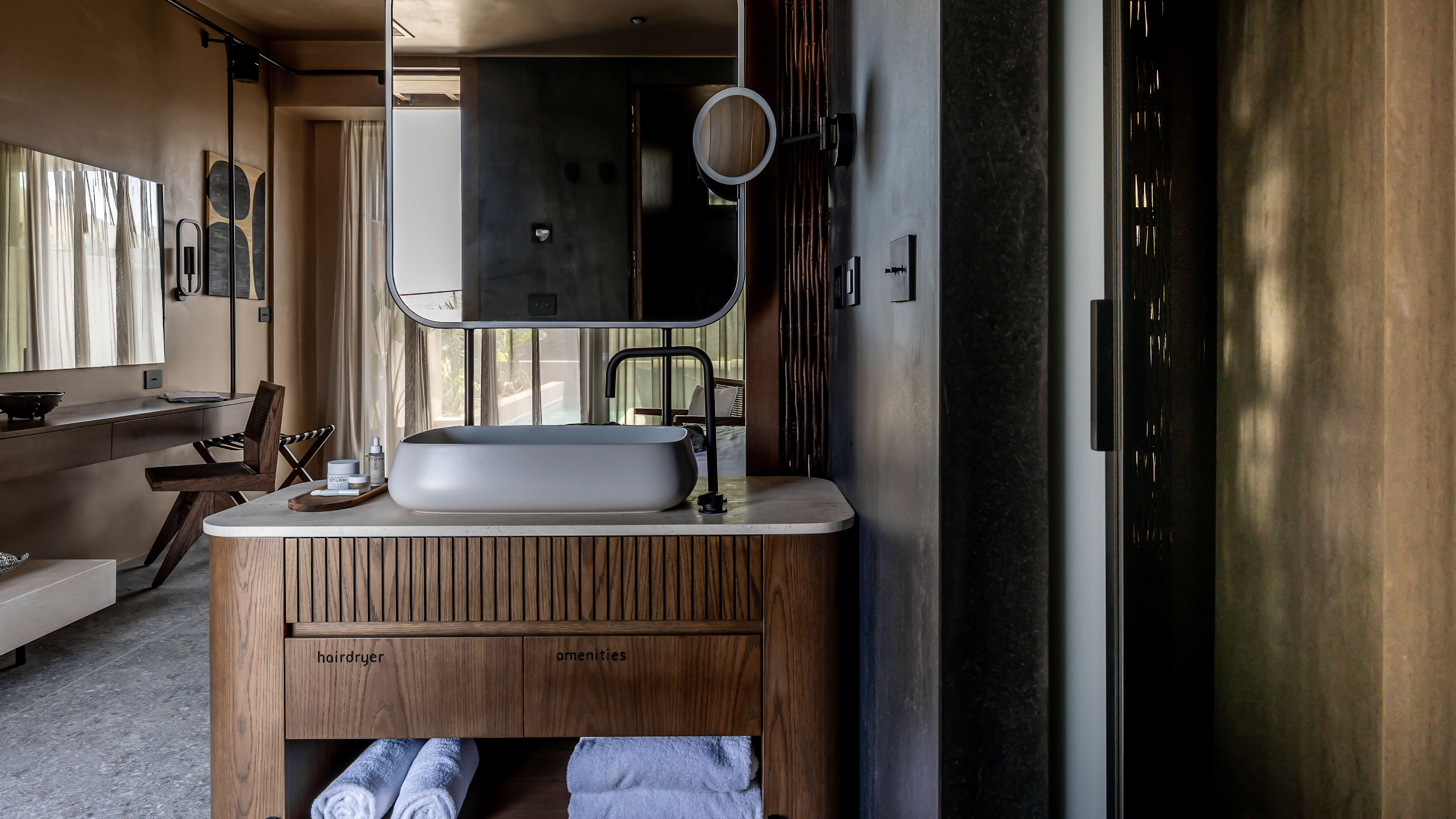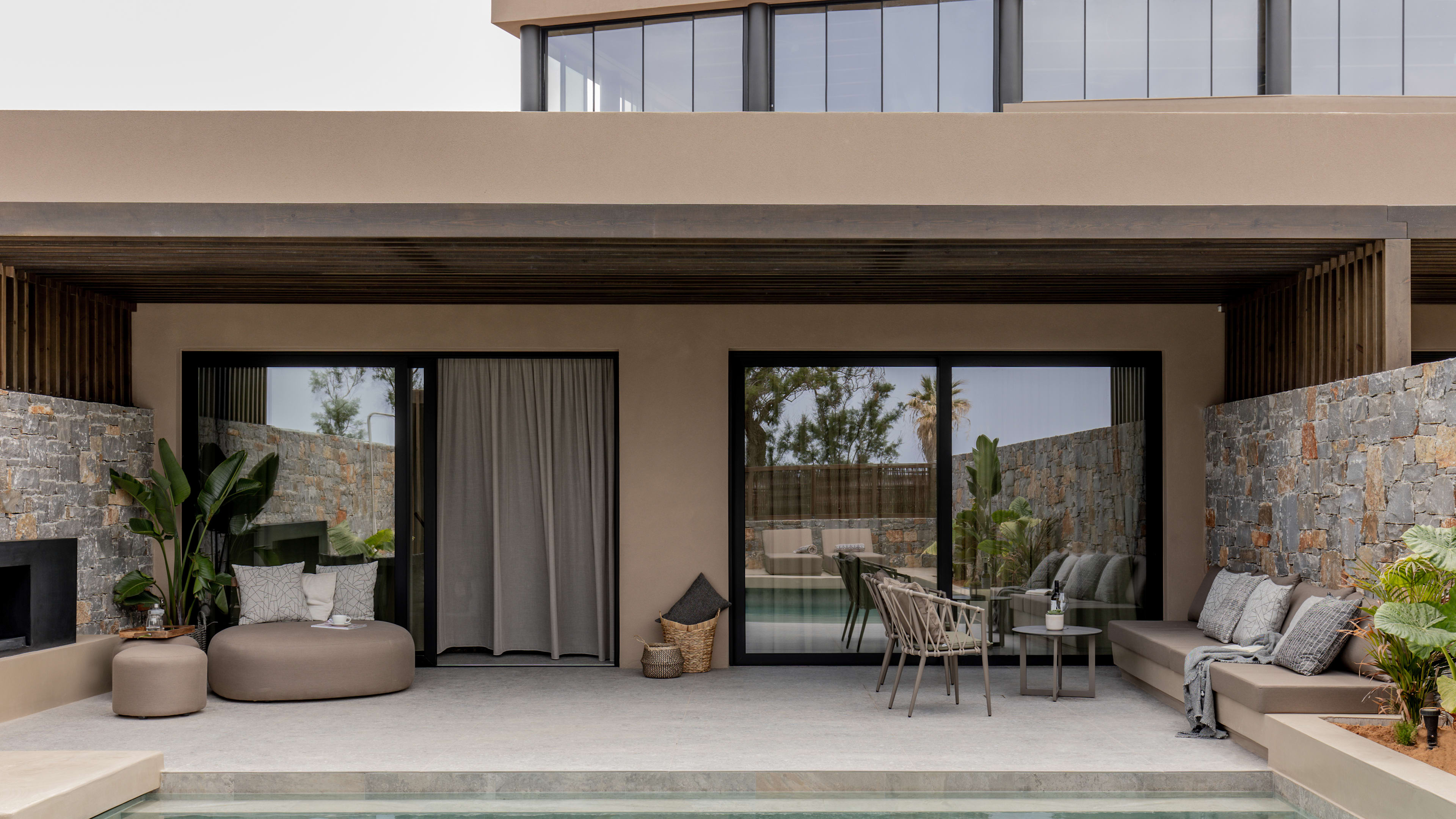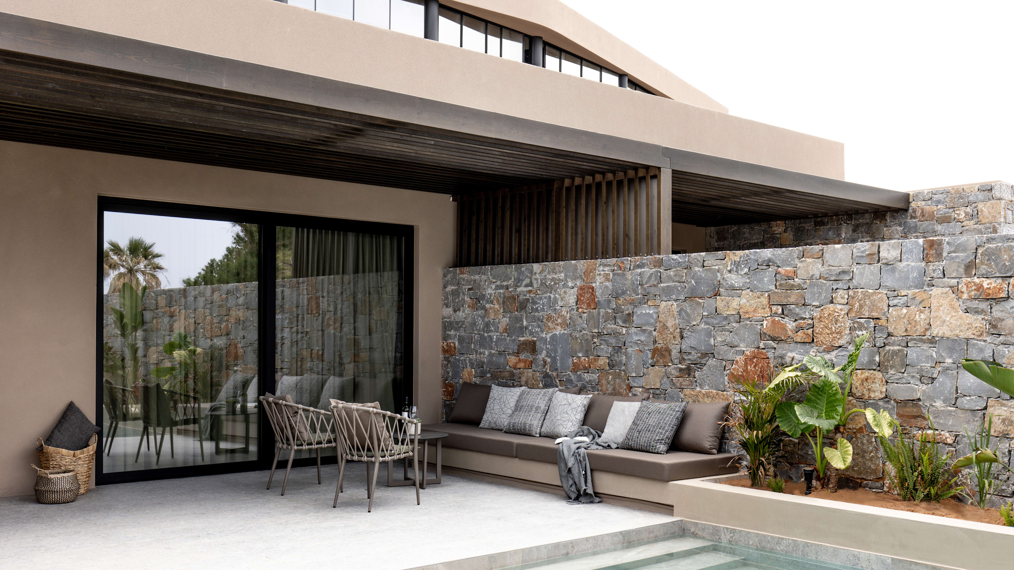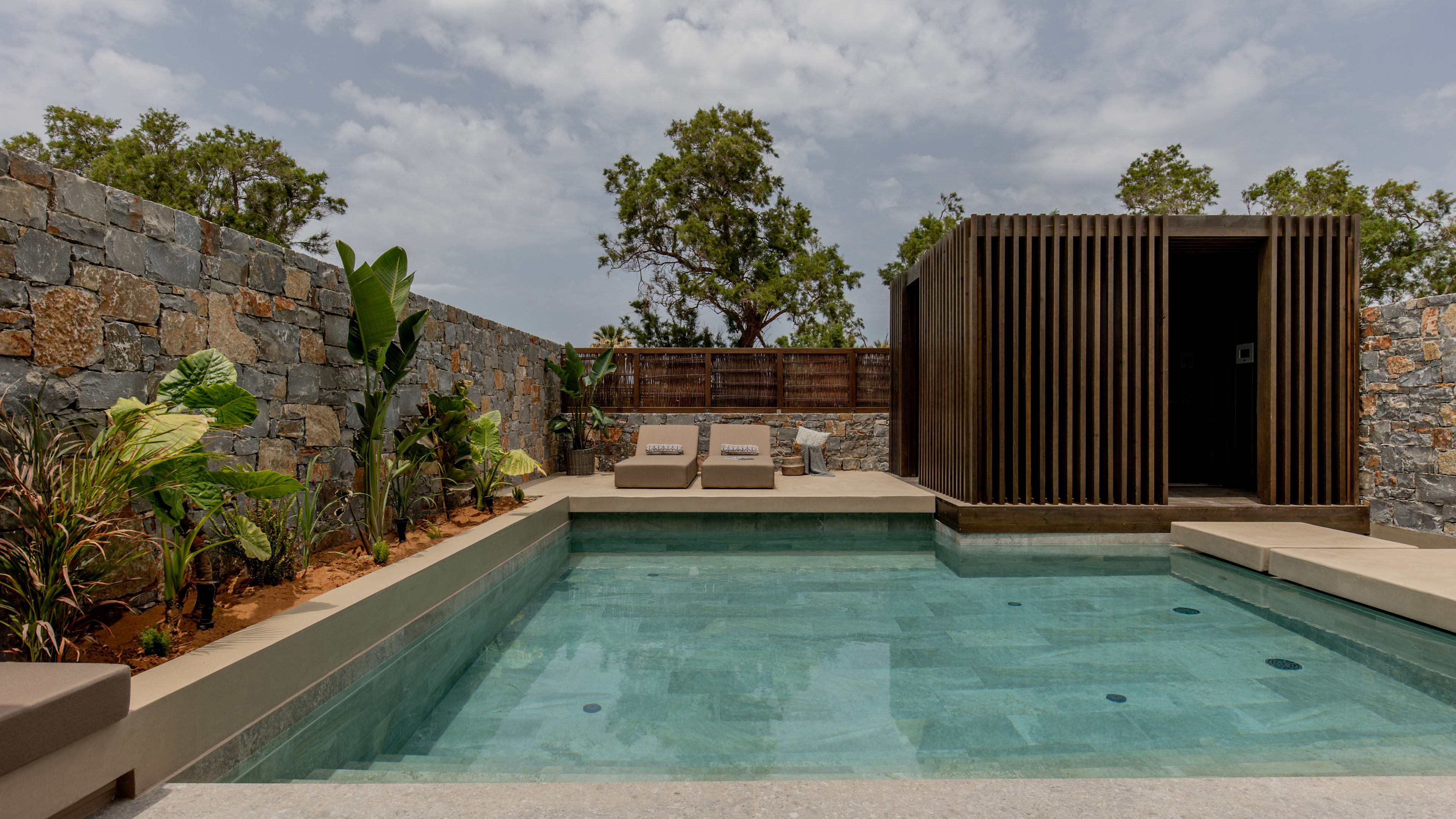 Wellness doesn’t begin and end in the spa here. Each room is decorated in soothing Cretan style (lots of hush-hush taupe, cream and grey) and has a heated plunge (or fully swimmable) pool. But, the Breathe Suite gives you an extra boost with its chromotherapy shower, while the Signature Suites have either an additional sauna or hammam.