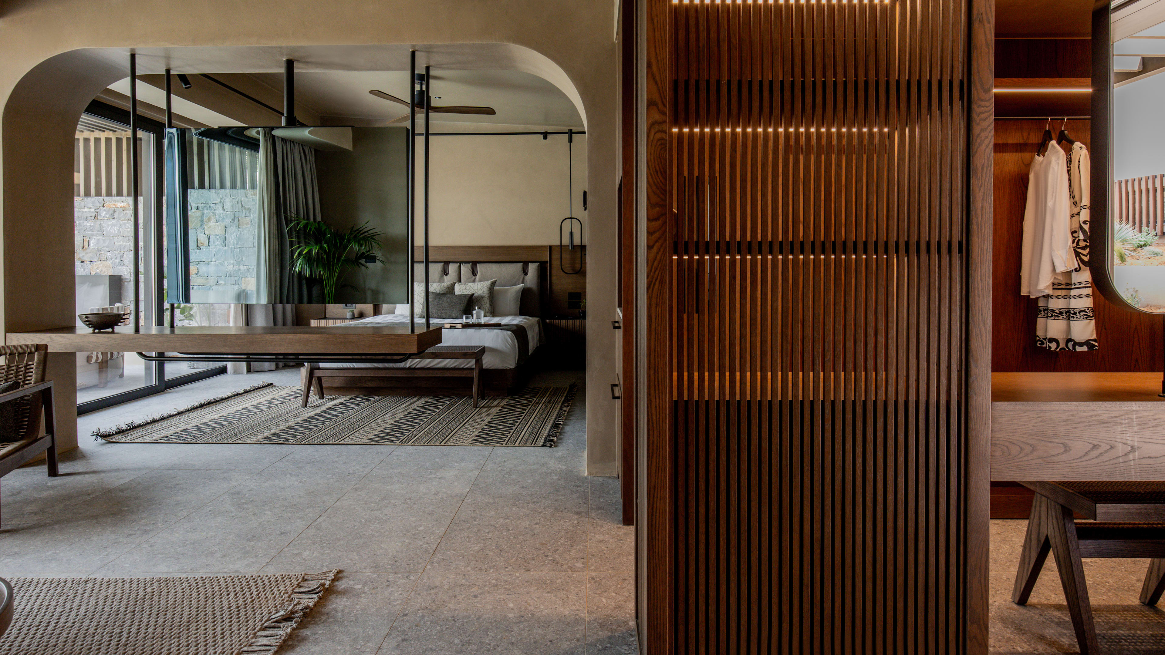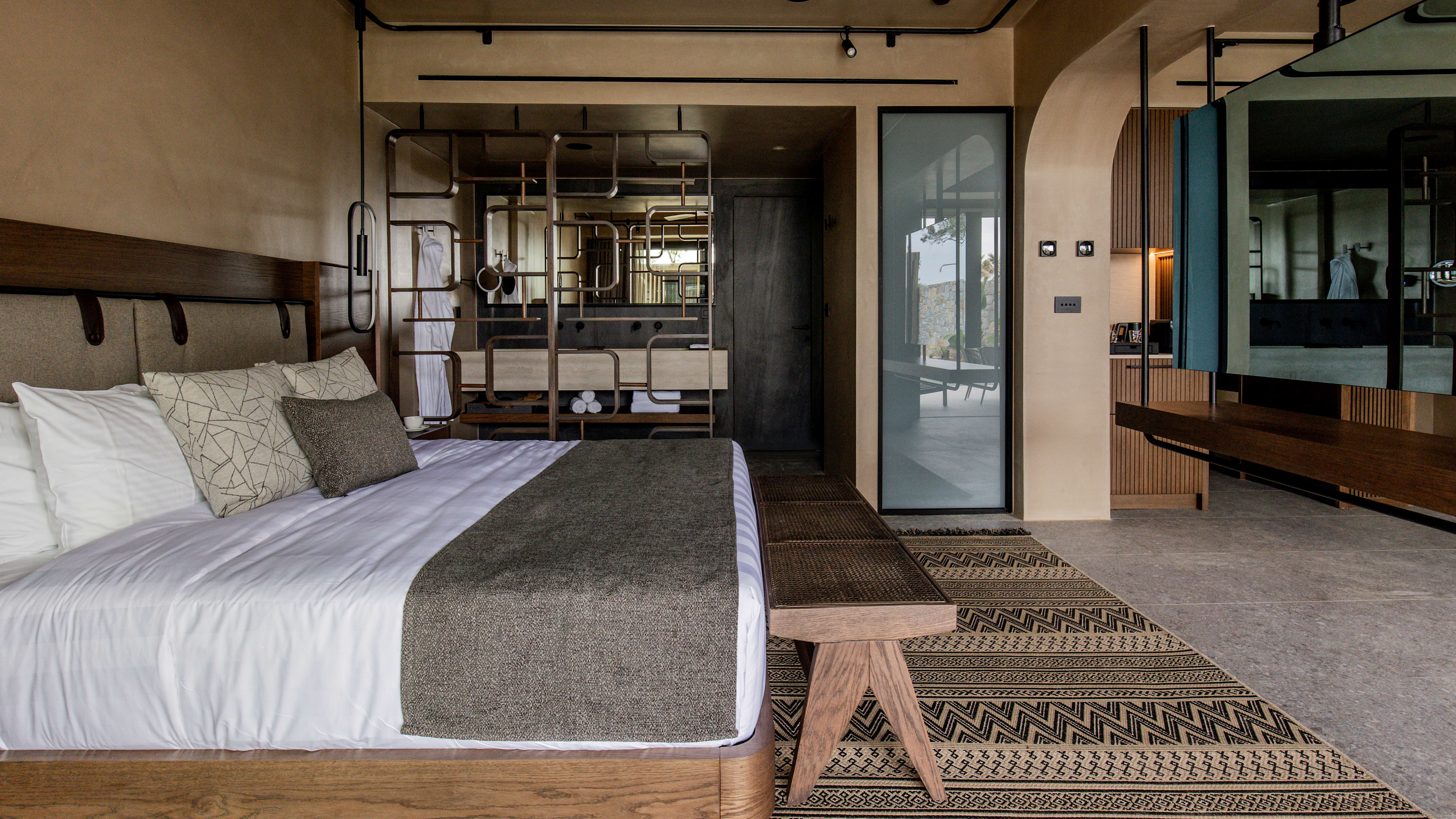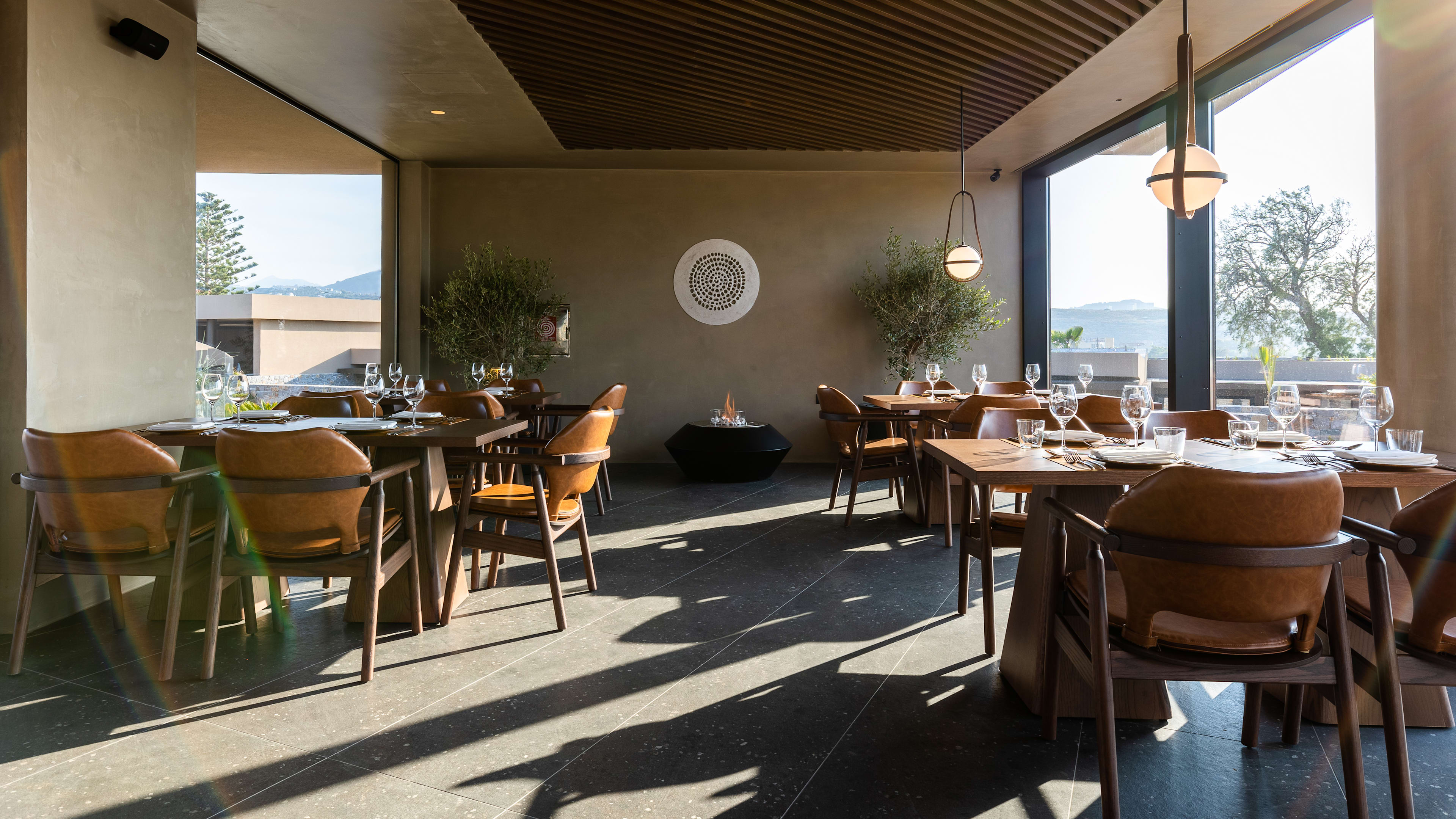 Anása is a laidback space with a buffet of Mediterranean dishes (salads, tartares, risottos, breads and cheeses) and a live-cooking station that makes dining a more interactive experience. You can get a juicy cut from the beef haunches hanging in dry-ageing cabinets. Meals are more musical here too, with guest players on sax, violin or piano. Decorated in stone, wood and earthy tones, poolside eatery Thymises is set for light lunches during the day, and smartens up for fine Cretan dining by evening. The menu is a collab with Heraklion restaurant Peskesis, and shows how much staying power traditional cookery has here. It serves up shepherd’s salads and fishermen’s pastas, goat with yoghurt and mountain cheese, fried snails (just one of more than 100 island preparations for the gastropods), and things wrapped in vine leaves, smoked on olive sticks or peppered with heritage herb blends.