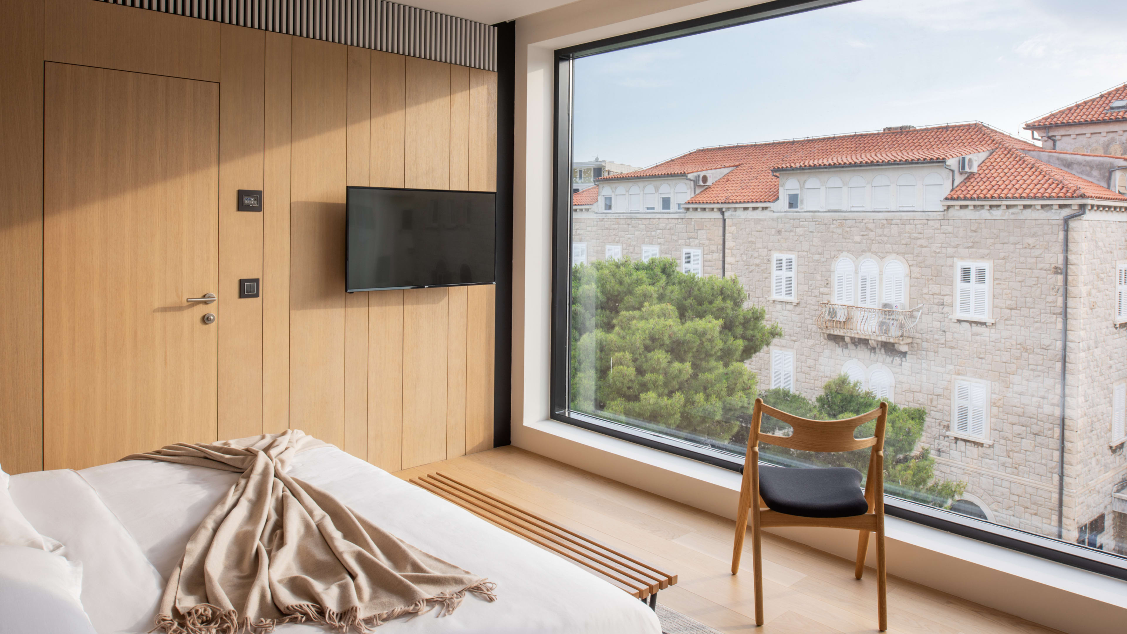 If ‘whirlpool’ is part of your love language, you’ll want to reserve the Executive Suite on the top floor of the hotel. The private terrace is an almost all-day sun-trap, so you can bask in the Dalmatian glow without needing to leave your suite. Double the bubbles with sundowners in the outdoor tub when the peachy light starts to fade.