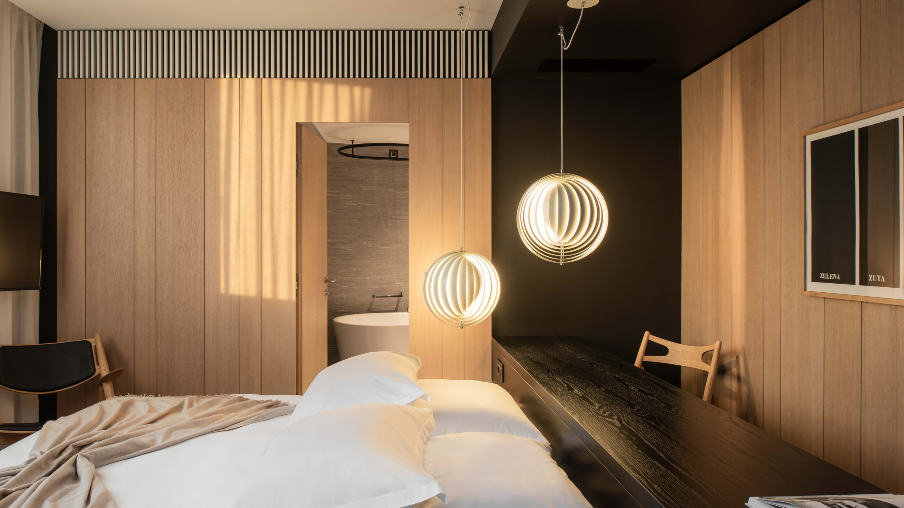 As you might expect from the design-driven exterior, the hotel’s interiors have a contemporary art-gallery feel. Feast your eyes on colour-popping posters by Croatian painter Boris Bućan, and an abstract installation by Zagreb-born artist Aleksandar Srnec