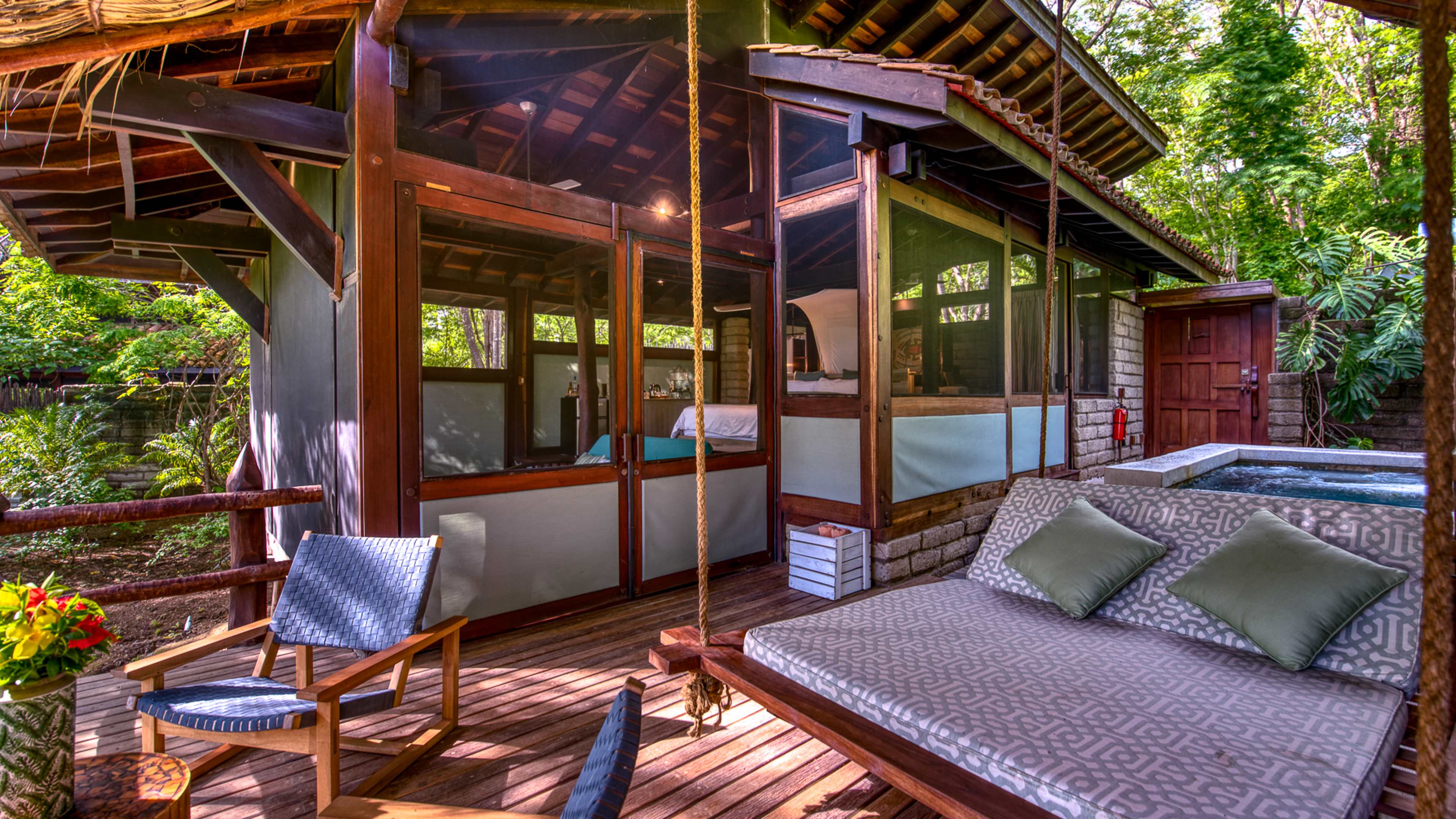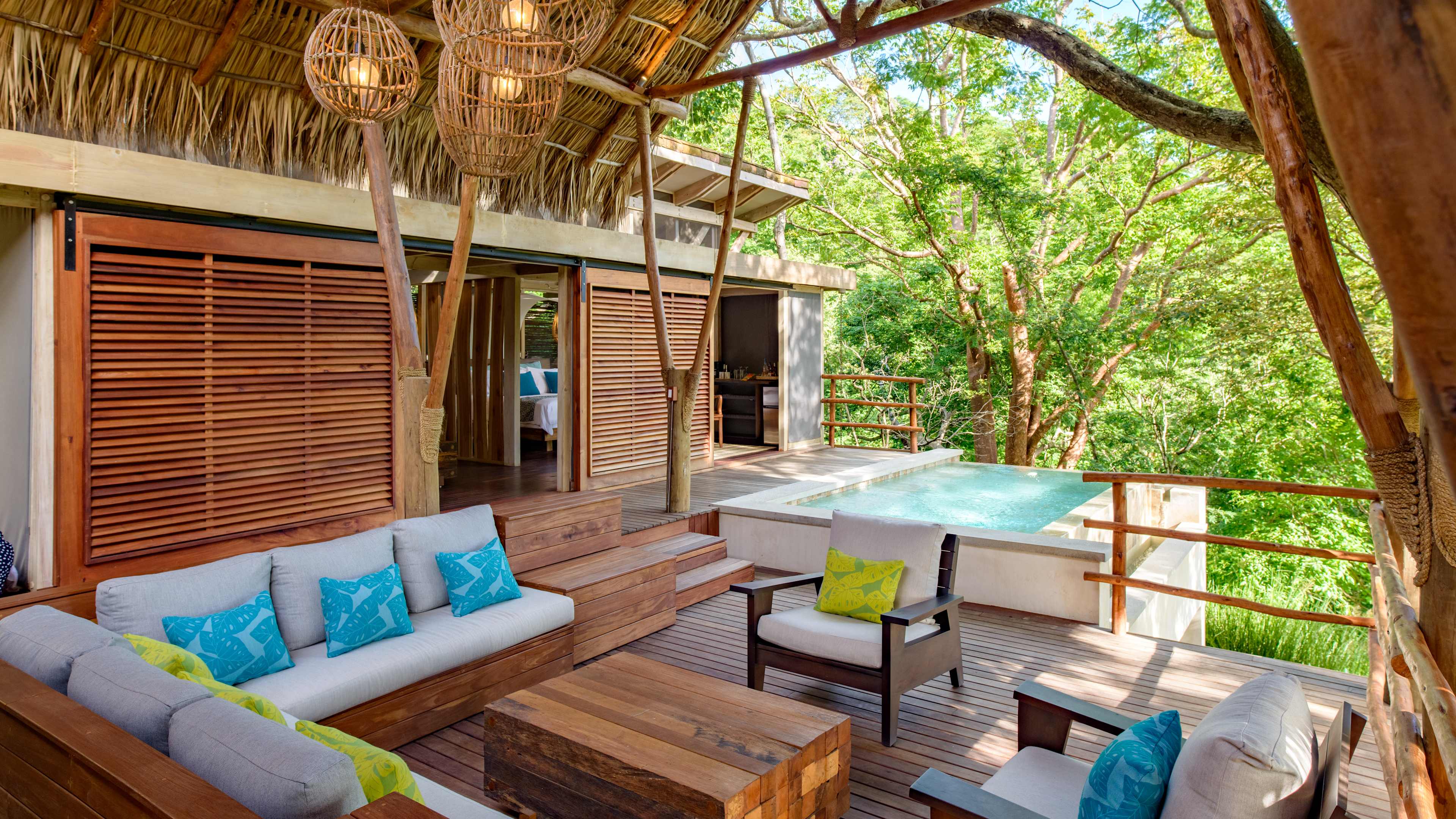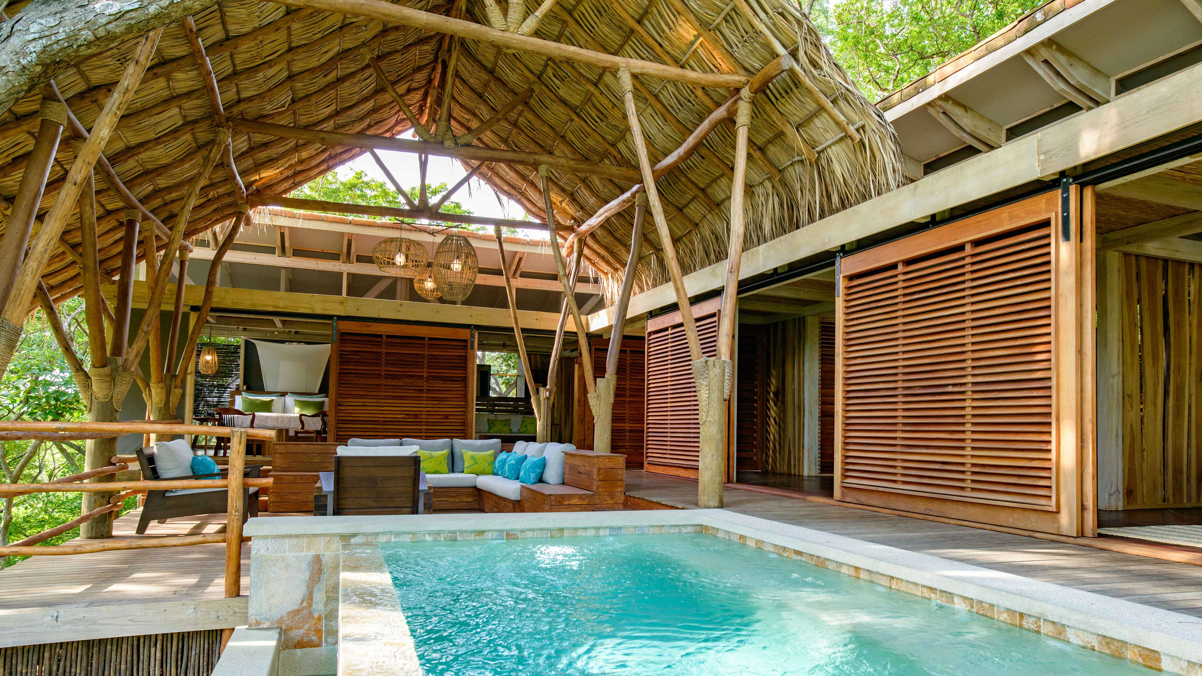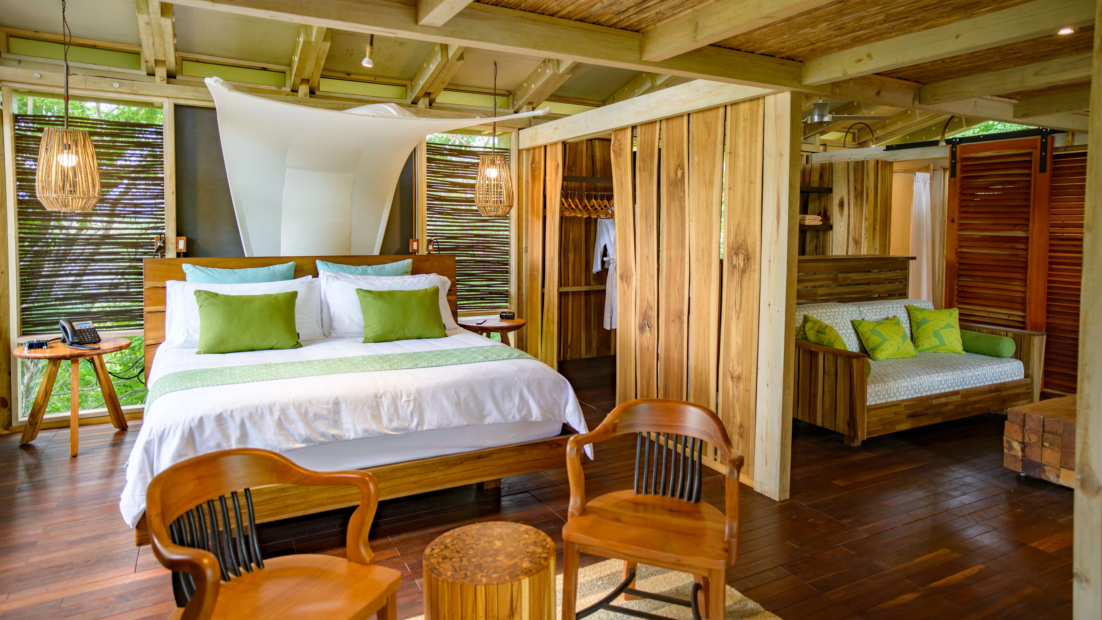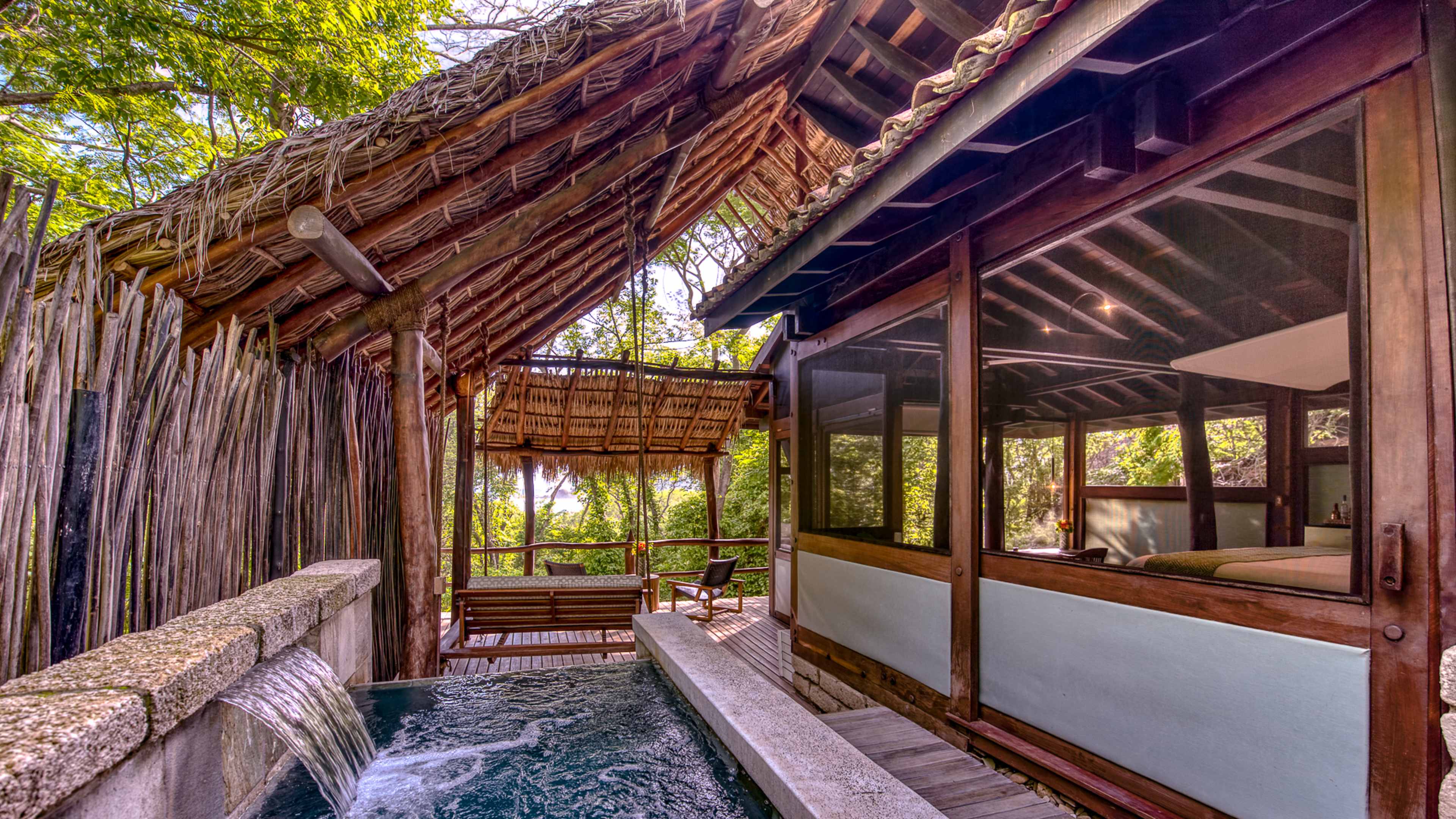 The forest-flanked chlorinated pool is petite, but just-right for sunset watching. There’s a smattering of wooden sunloungers for some post-swim R ‘n’ R; wave over snacks and drinks from the bar as needed. There’s a small child-friendly pool, too. Alternatively, hit the beach to splash in the surf, rock in a hammock or recline on pavilion-shaded lounger and order a couple of coconut cocktails from Mike’s Beach Bar.