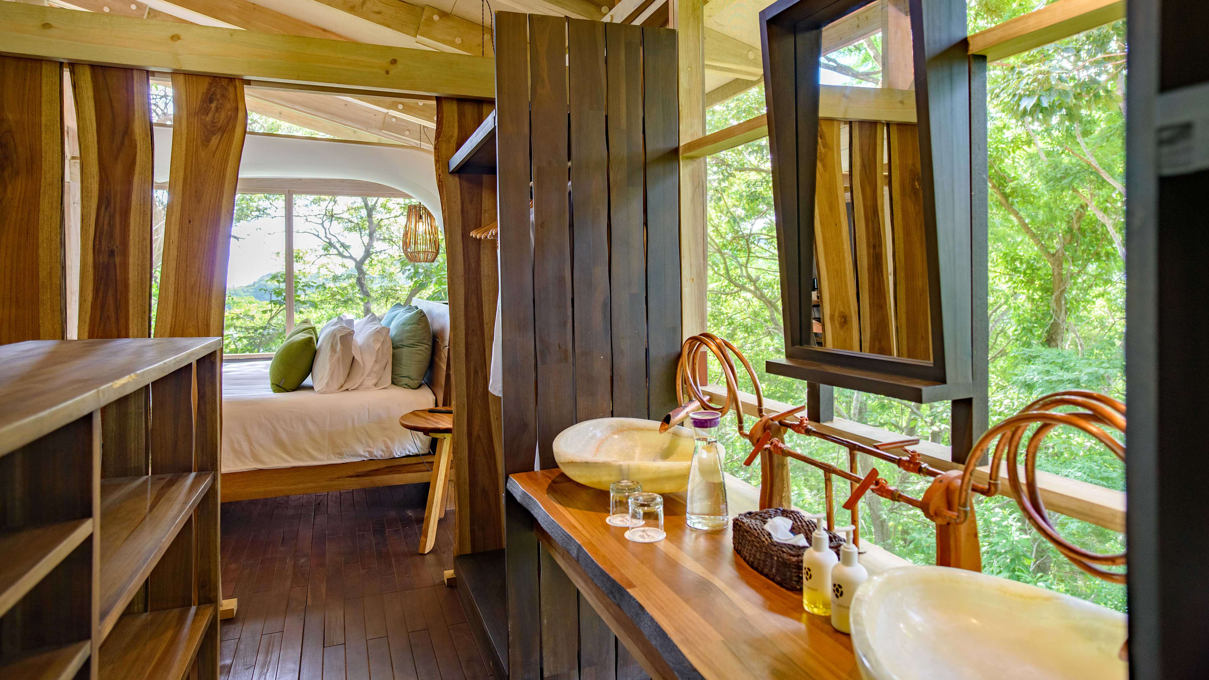 To reach La Bastide, the palm-fronded dining pavilion, you cross a suspension bridge with jaw-dropping views, so you’ll be gobsmacked before you’ve even ordered an apéritif. Food is staunchly farm-to-table (around 60 per cent of ingredients are grown or produced onsite), with rare exceptions sourced from equally ethical local suppliers. Locally influenced dishes include carne and pescado with tamarind, jalapeño or chimichurri, served to tables overlooking the ocean and cove, with some alfresco tables. A Central American-style breakfast (gallo pinto, spicy eggs) is served either here or on the farm, where chef Denia cooks on the hearth – ask nicely and she’ll teach you how to make tortillas.