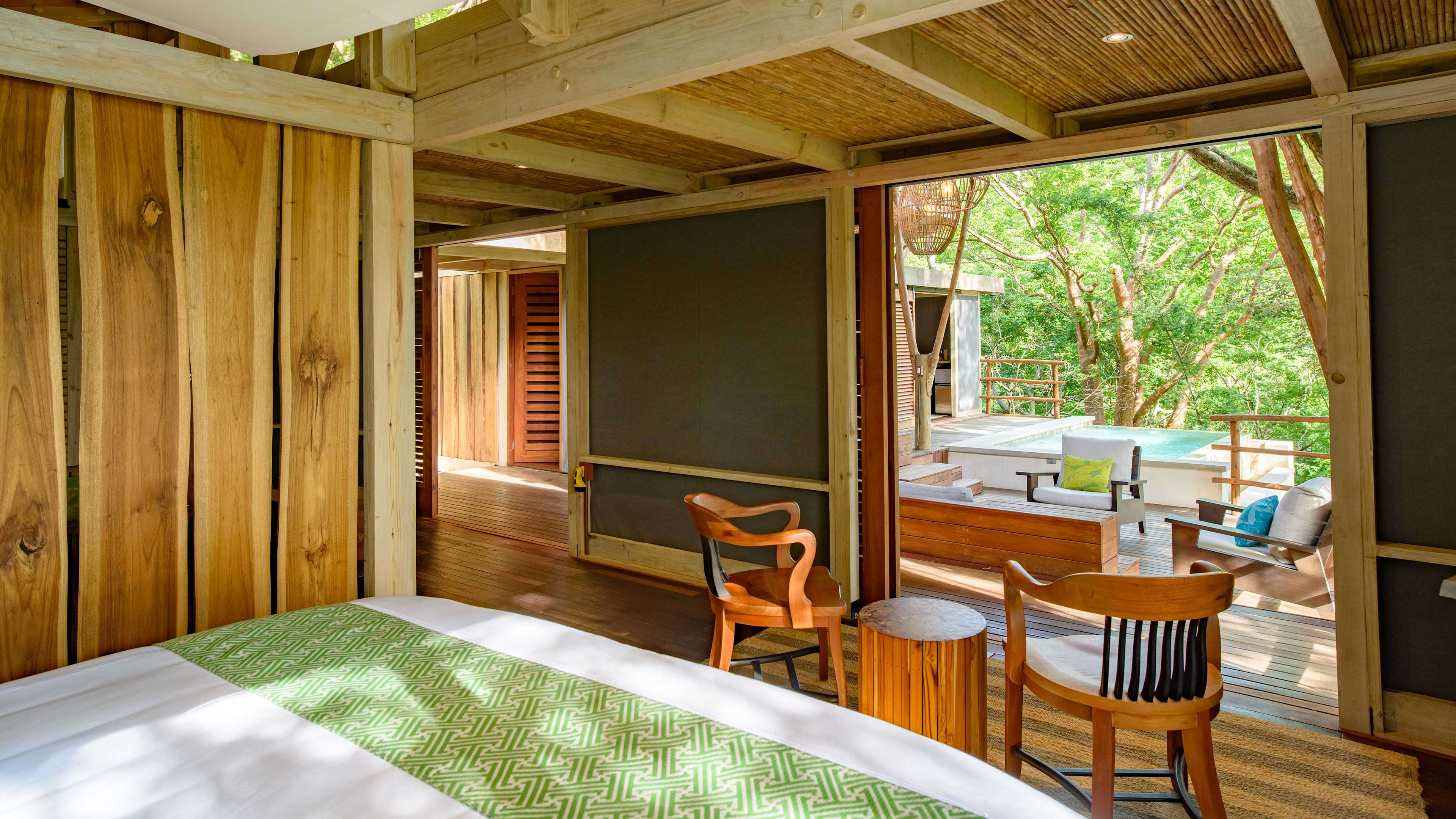 Private beach, farm, acres of rainforest, yoga studio, laundry, free WiFi throughout. In rooms: iPod dock, coffee machine and kettle, water purifier, beach bag, Raw Botanicals bath products. Forest-View Rooms and three Ocean-View Rooms have private plunge pools.