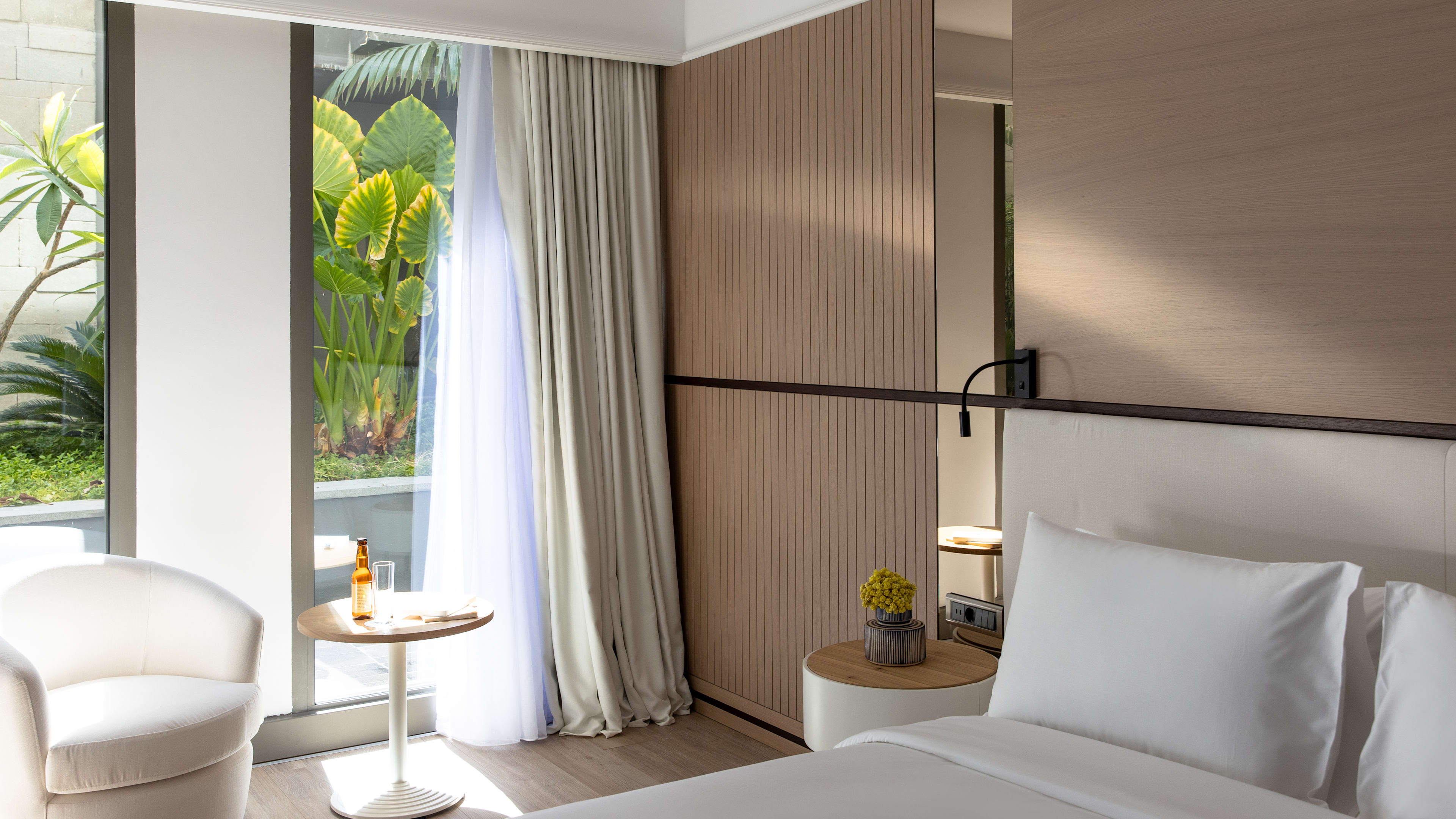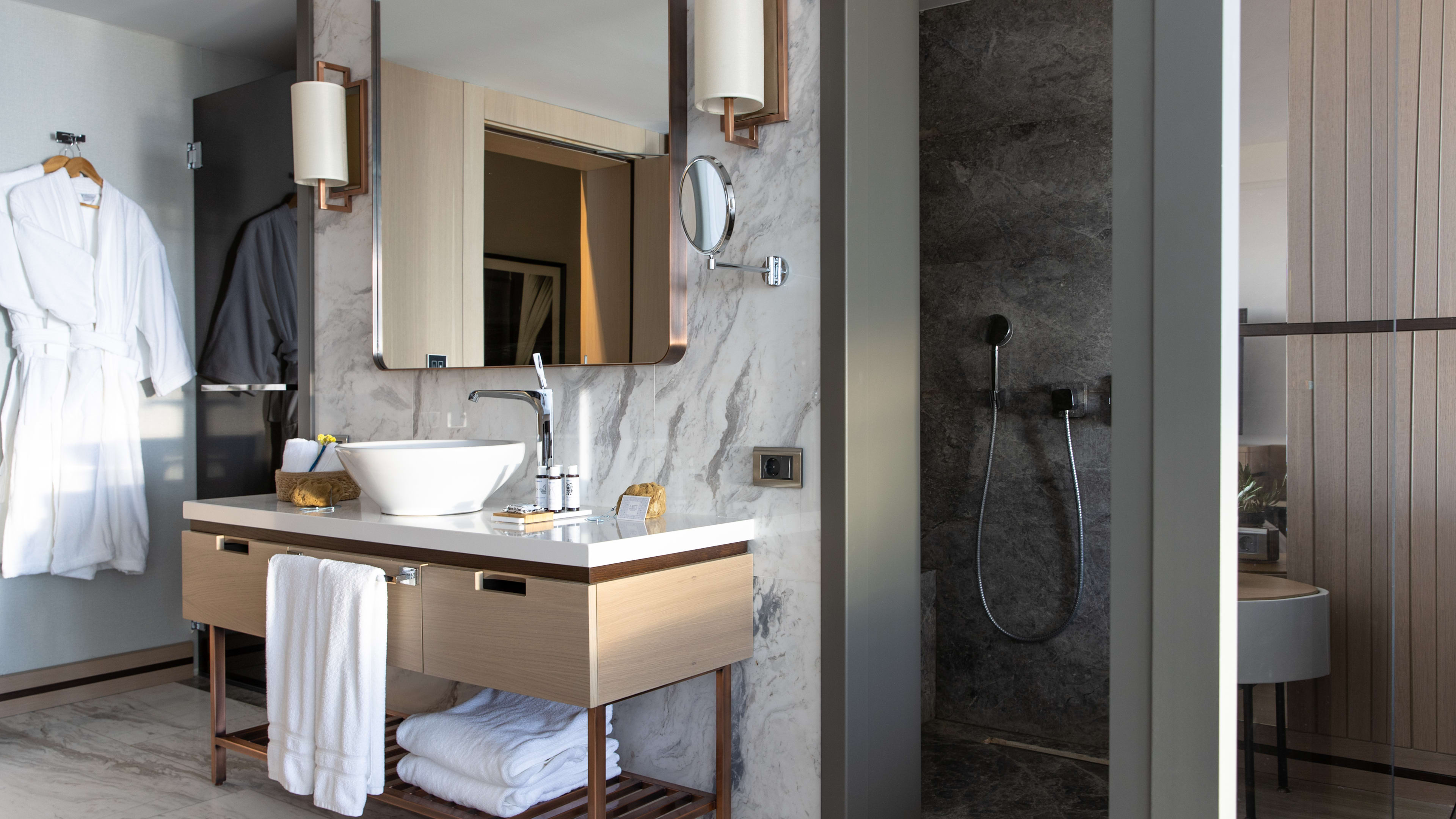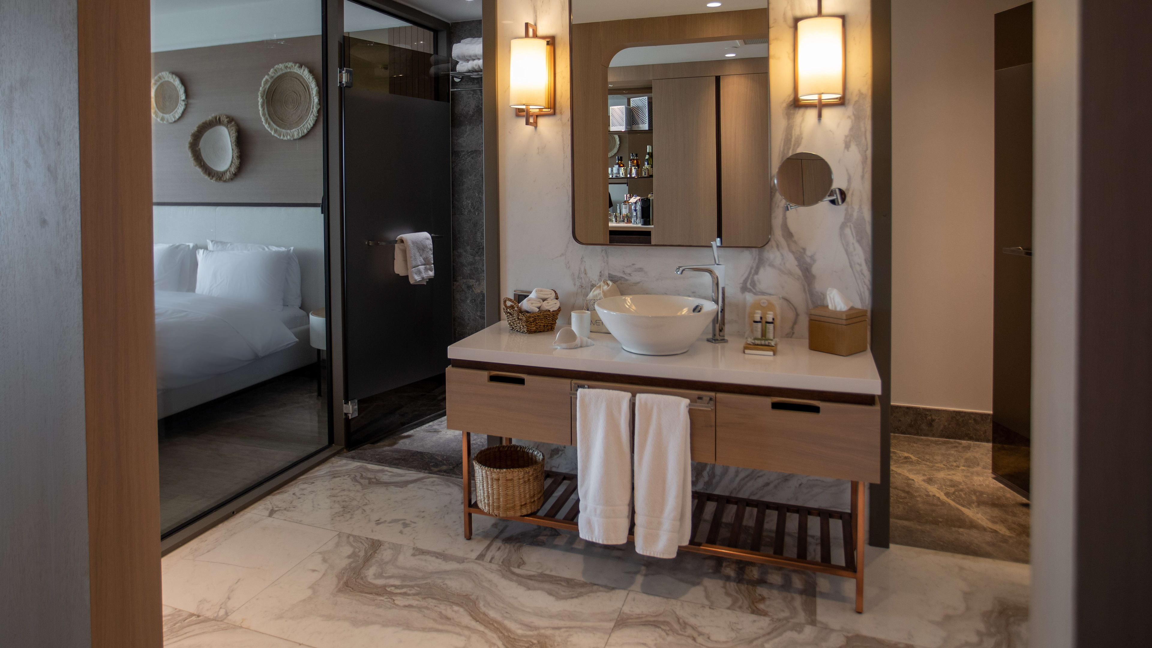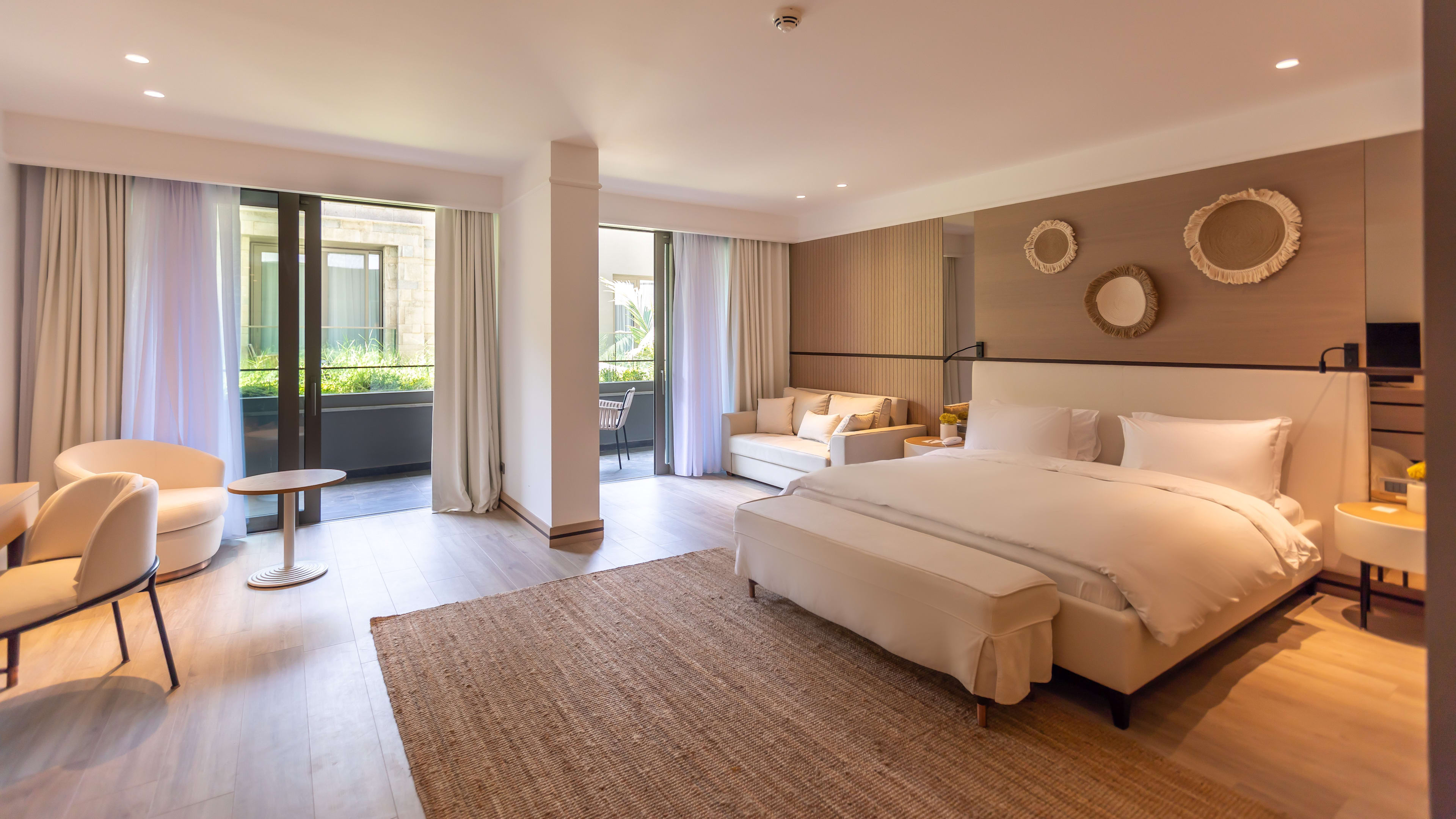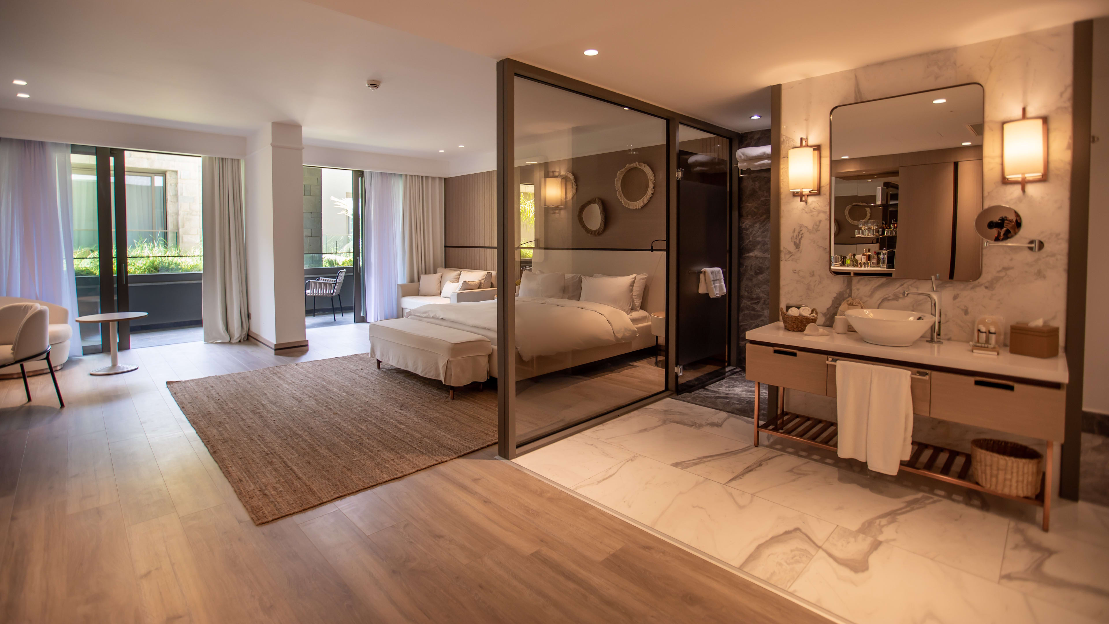 The Loft Sea View had us fist-pumping the air thanks to its gleaming marble floors, bags of space and a whopping great balcony with comfy seats and some of the best panoramas in the resort. Ask for the suite that – uniquely here – comes with internal sliding glass doors that open onto a petite, plant-filled atrium. It feels a bit like having your own tropical hothouse inside the room.