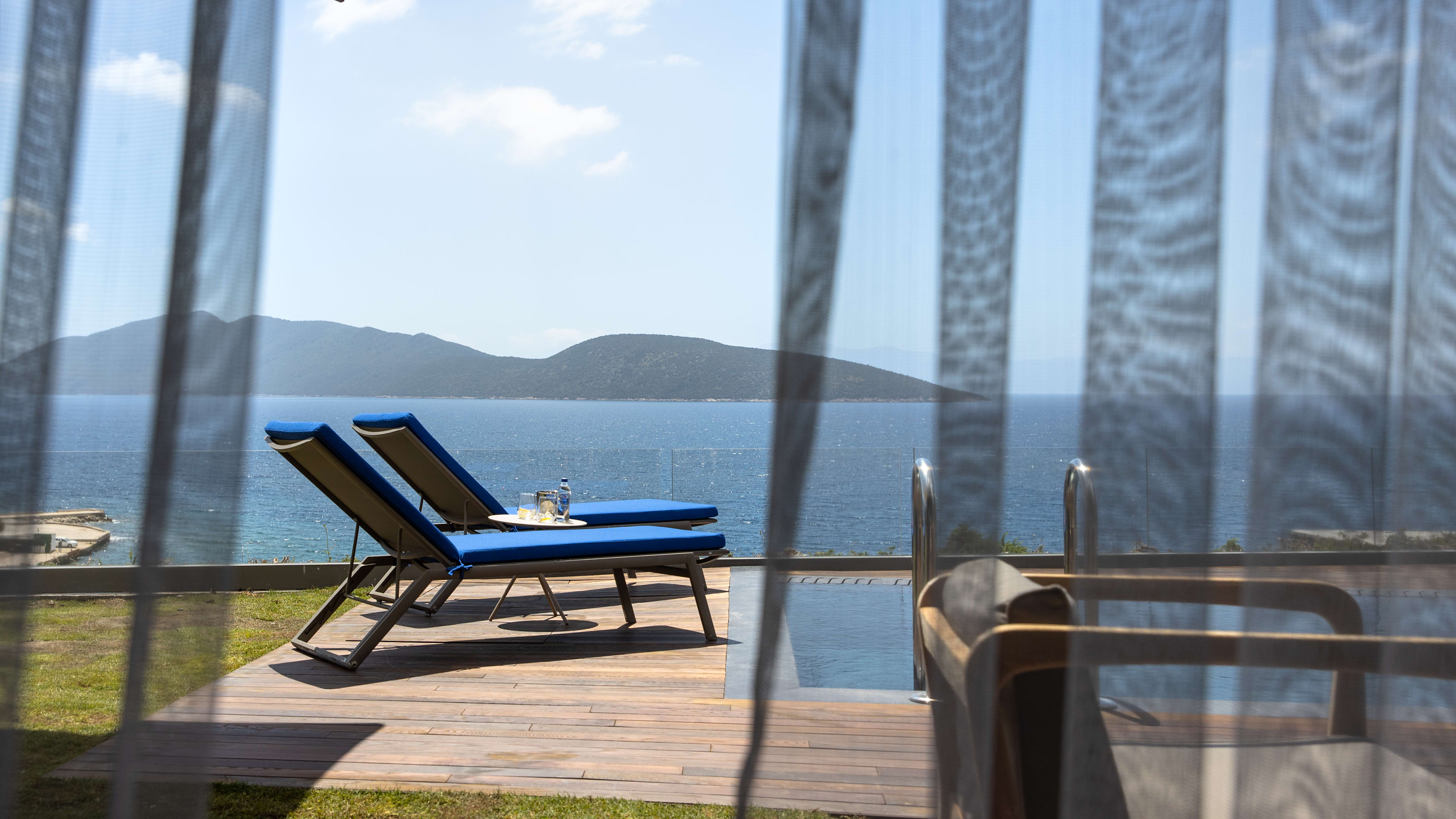 Sea views from the outdoor infinity pool and sundeck are to dive for, and there are smart loungers and cabanas for style-conscious sunbathers.
