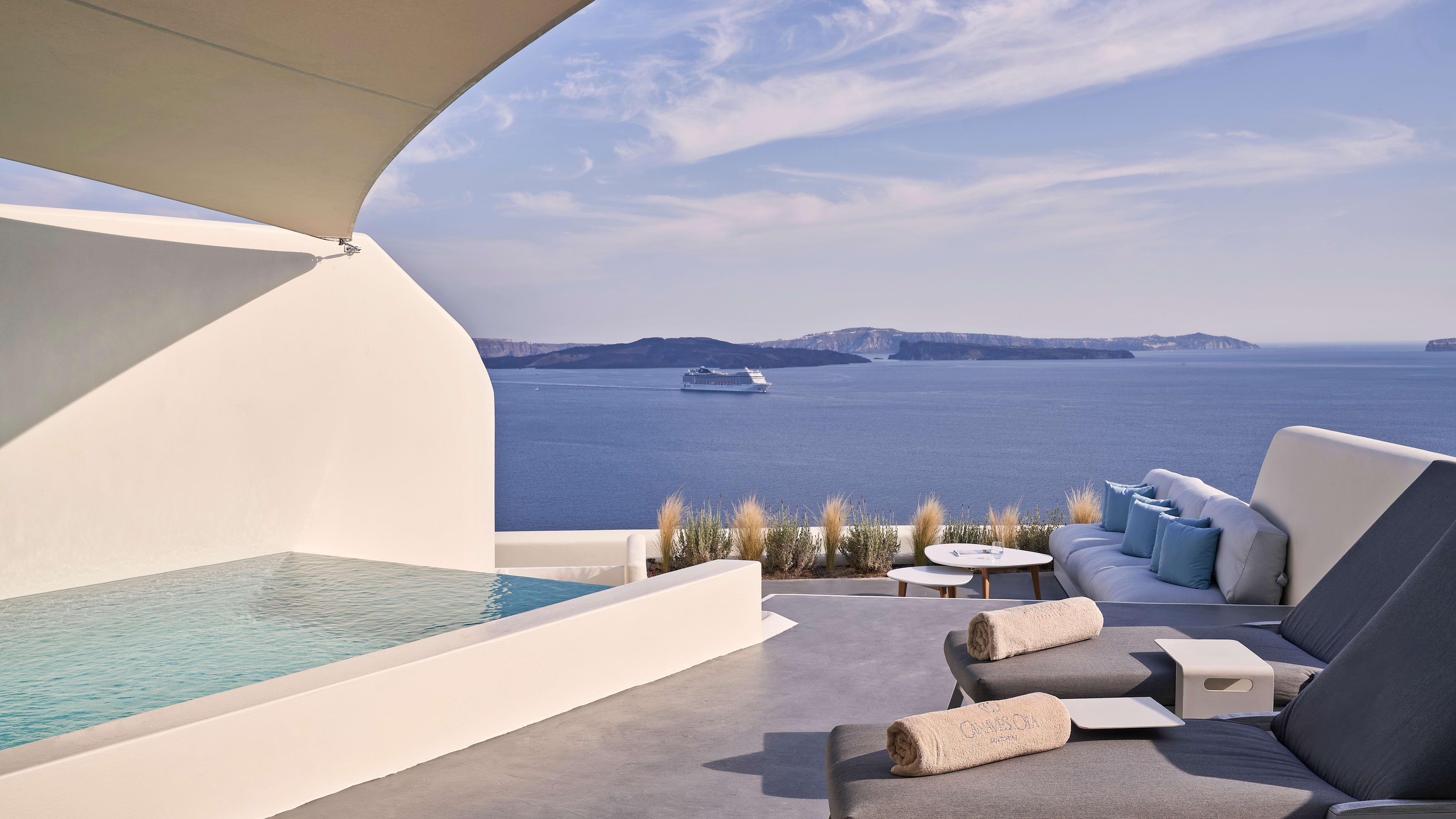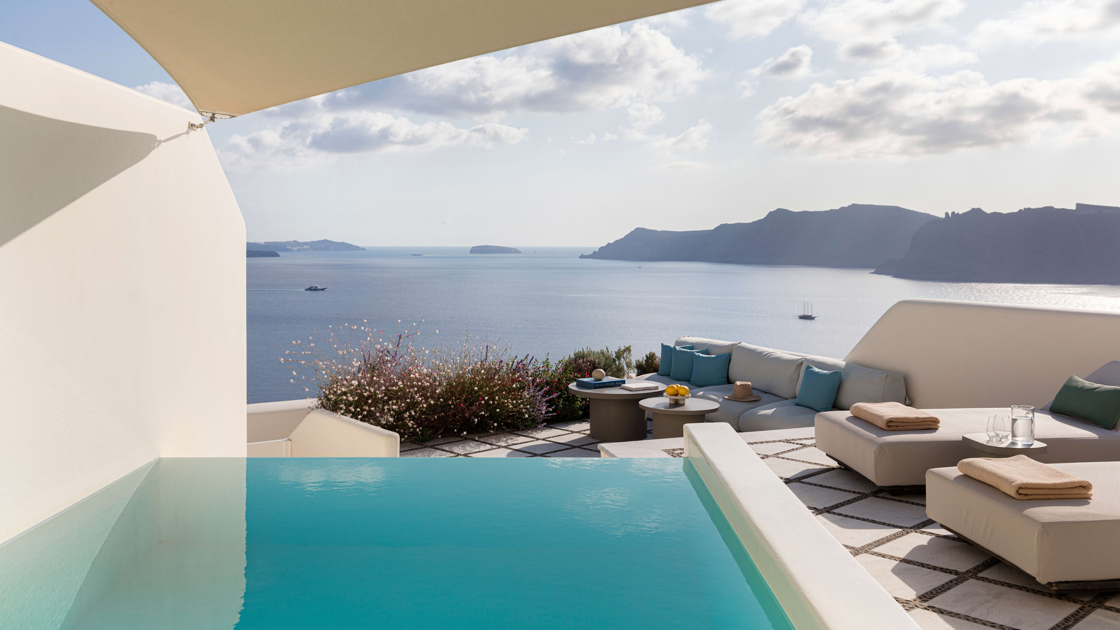 Spy on the sea from Canaves Oia Suites’ little pool, positioned handily by the bar.