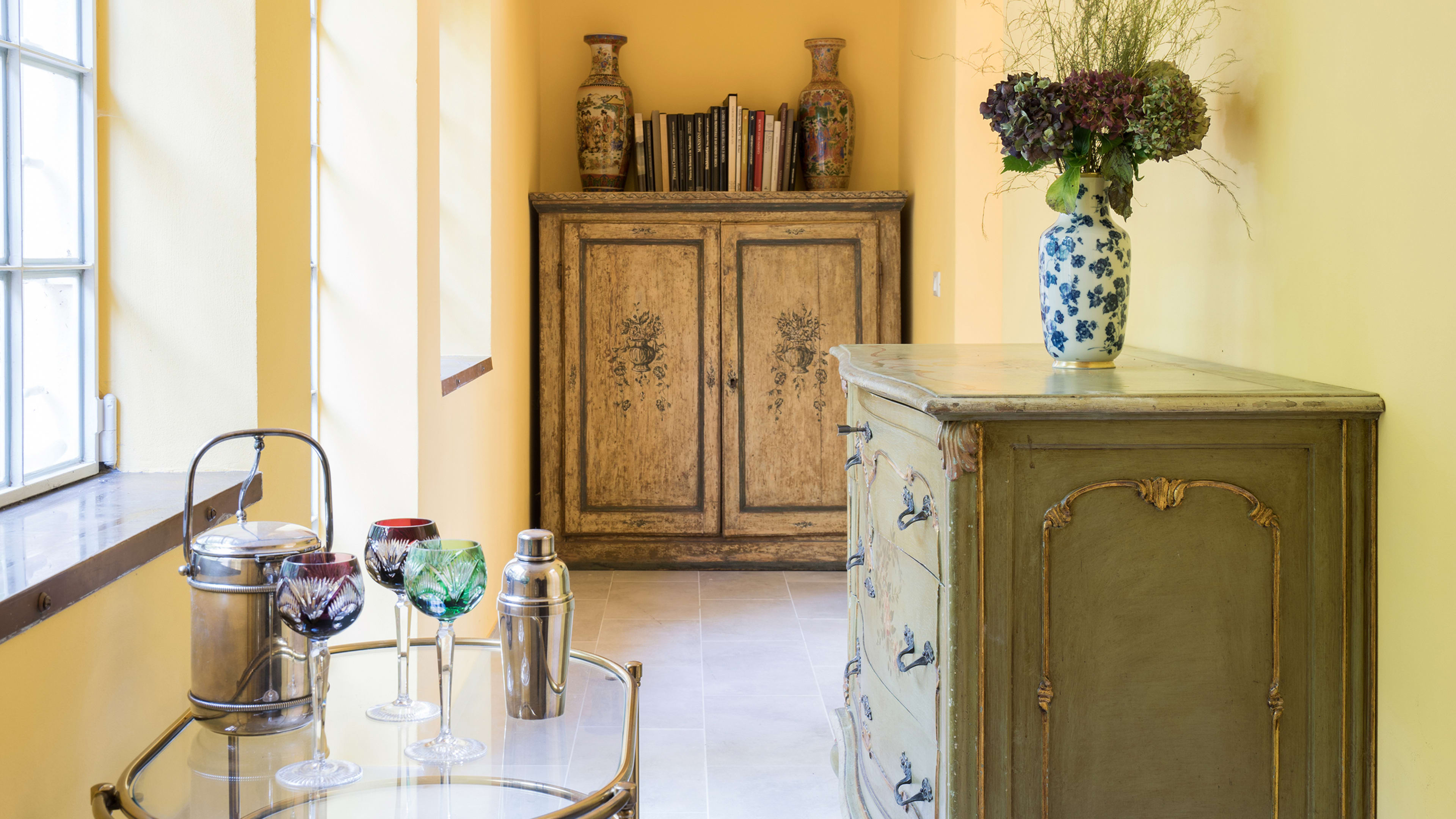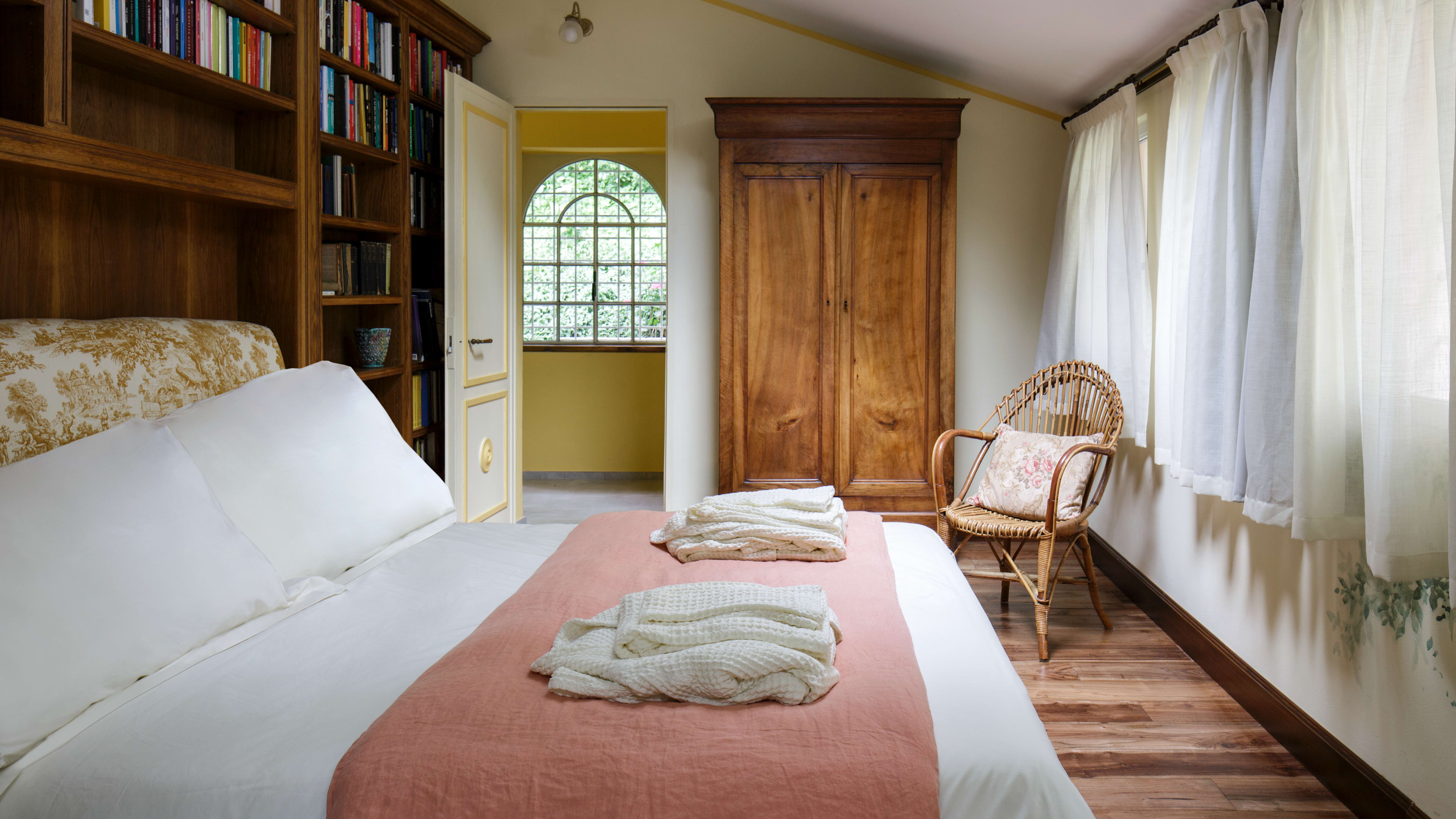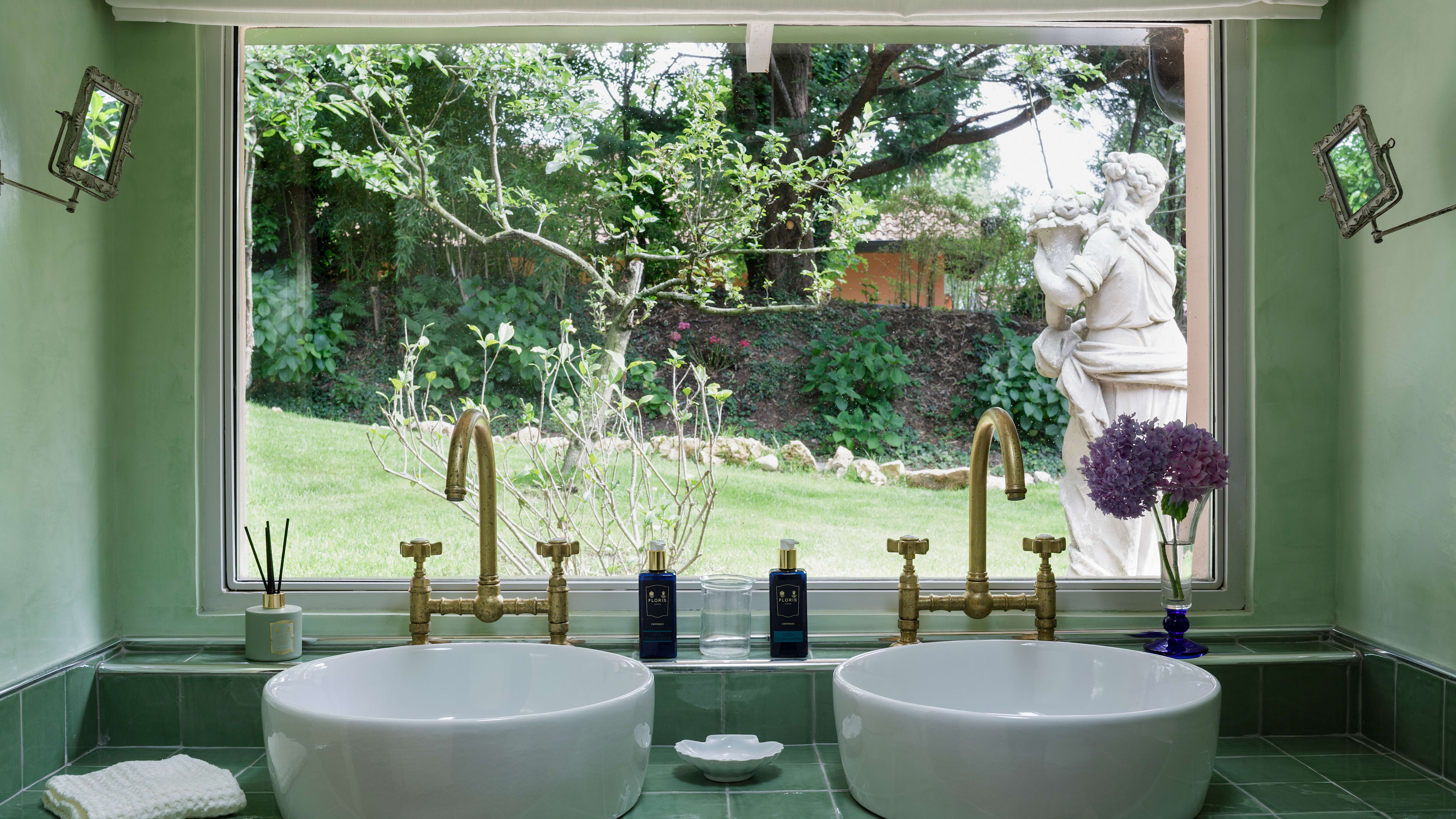 Both villas at La Foleia are showstoppers. But, Padiglione edges it for sheer bonkers brilliance. Strap in for the drawing room fresco, a wraparound English garden scene with a few incongruous extras: palm fronds, lush fruits, tropical birds and…a monkey with a magnifying glass. Cast your gaze out through French windows and across the stone veranda to the kind of lily-covered lake that would make Monet swoon, or find a quiet nook beneath the gently sloping ceilings of the corridors and bedrooms, perfect for browsing coffee-table tomes on art and horticulture from the pavilion’s extensive library.
