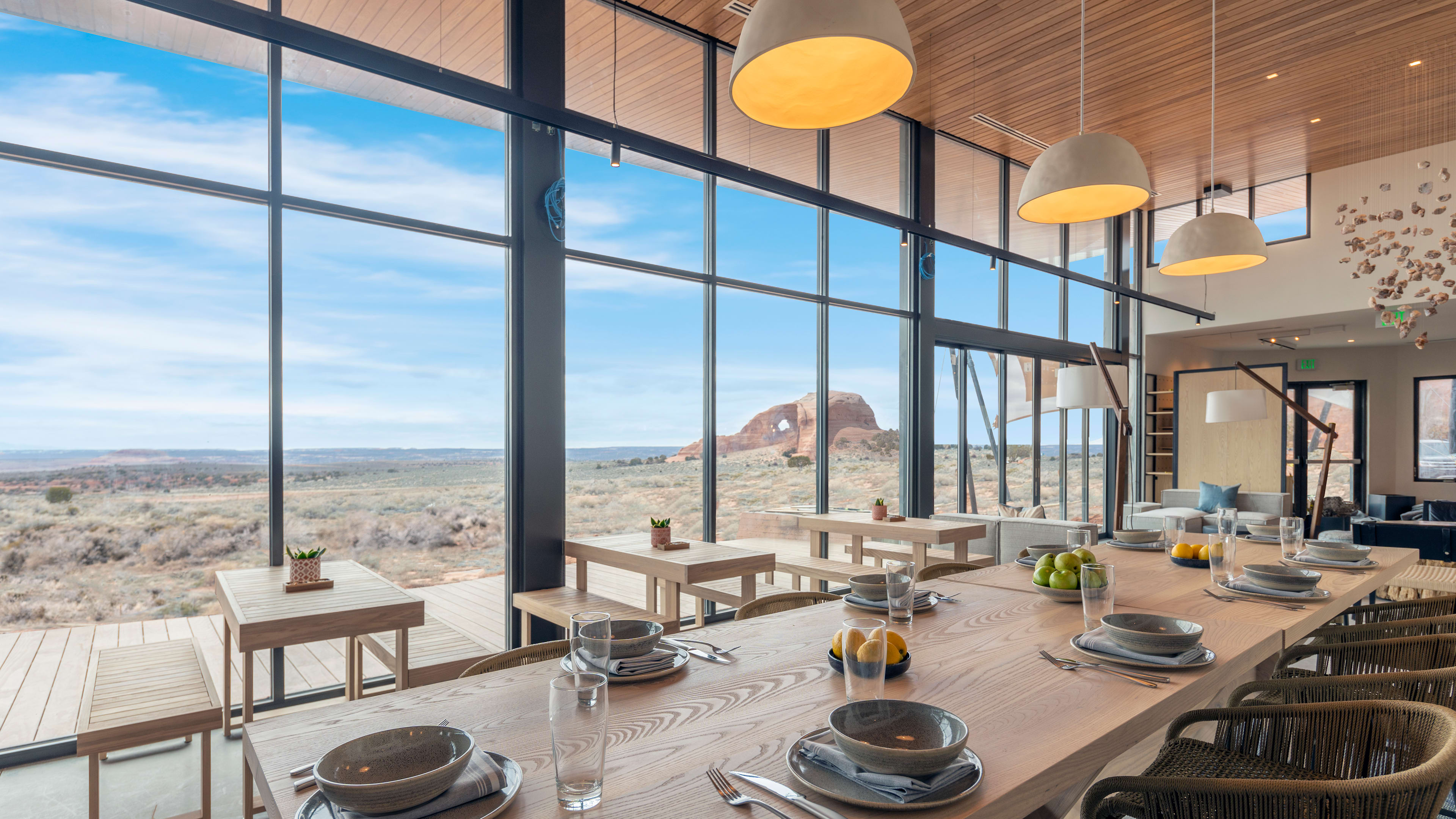 It’s a 45-minute drive from Canyonlands Field Airport, and two hours from Grand Junction Regional Airport. The nearest international hubs are Salt Lake City, around four hours away, and Denver, around six hours away.