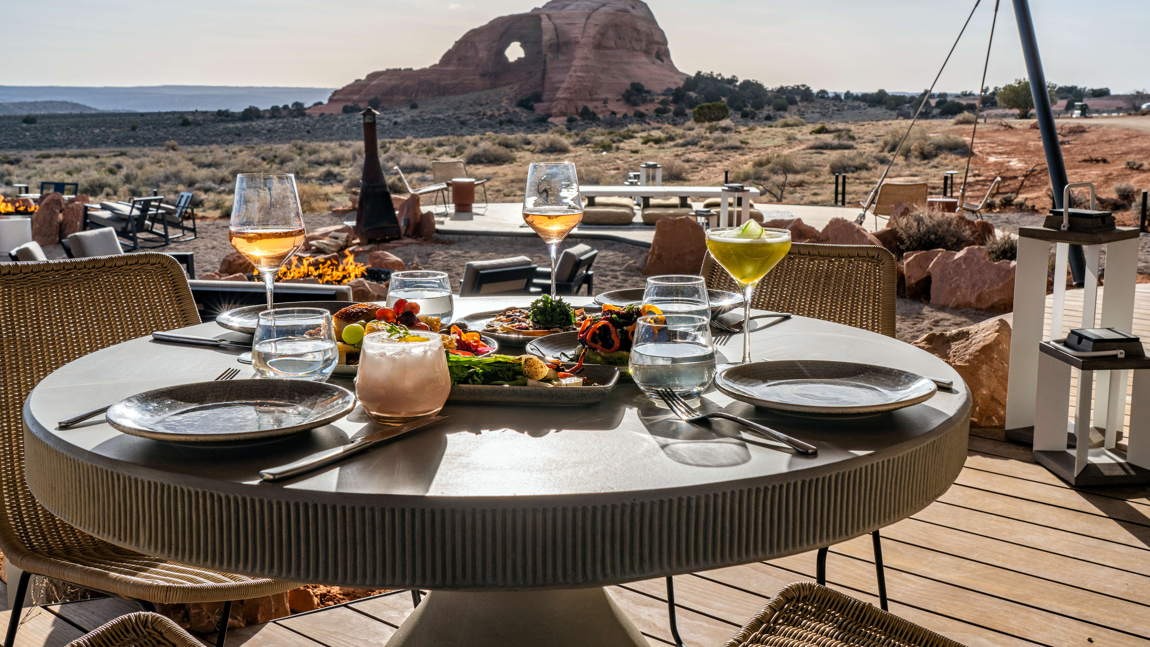 The resort’s restaurant spins classic Southwestern flavors into elevated modern dishes, with a focus on sustainably sourced produce. Favorites include sage-rubbed bison steak, smoky juniper trout, and pimento and white bean ragout. The dining room has glass walls, so you won’t miss out on the scenery wherever you sit, but dining outside on the patio is always an option. Several nights a week, alfresco dinners are set to live acoustic sets from local musicians and, as with all camping trips worth their salt, every evening winds up with s’mores around the fire pit.