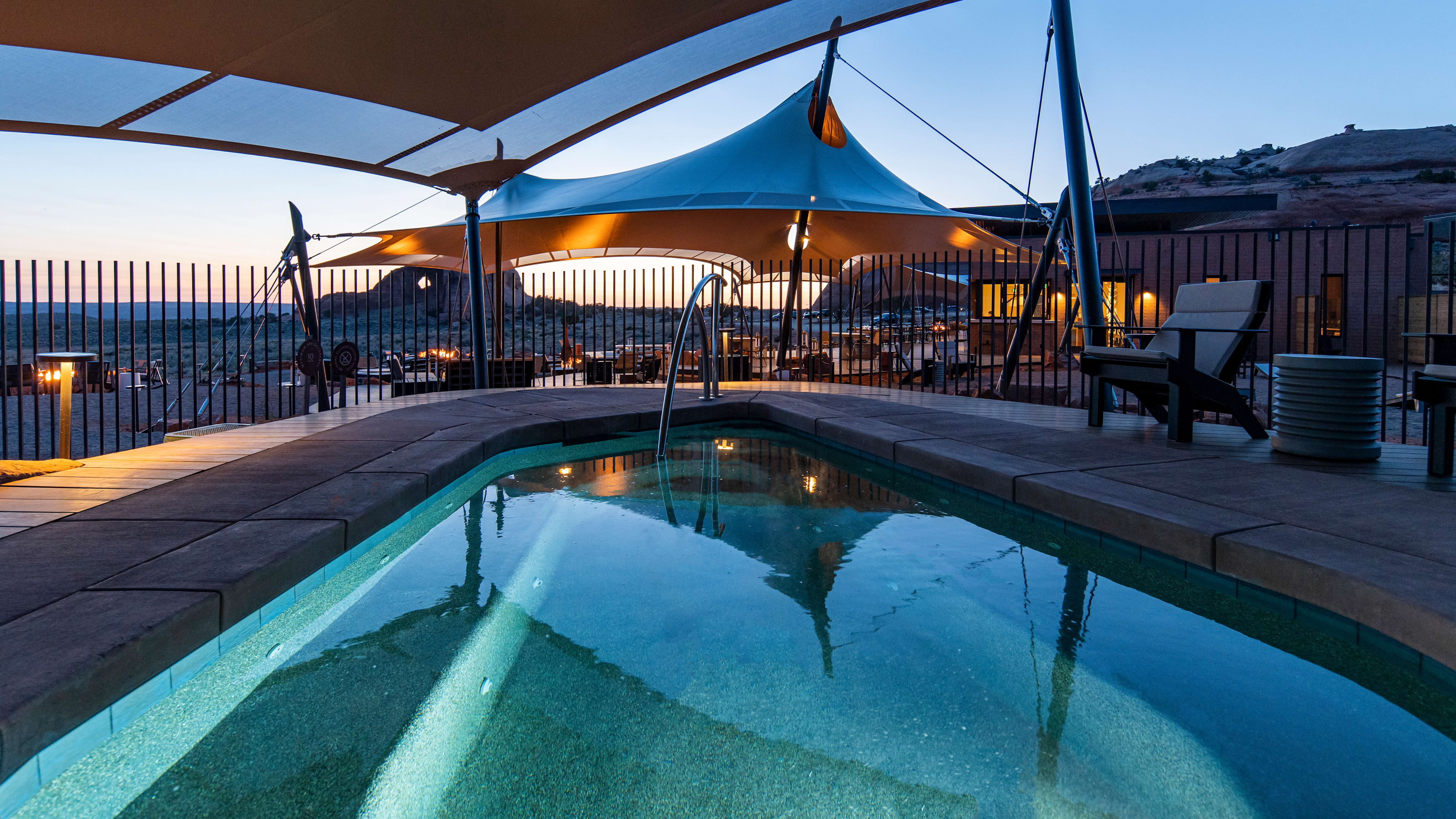 There are three outdoor dipping pools, each set to a different temperature, so you can start the day with a refreshing cold plunge and soothe post-hike muscles with a hot soak.