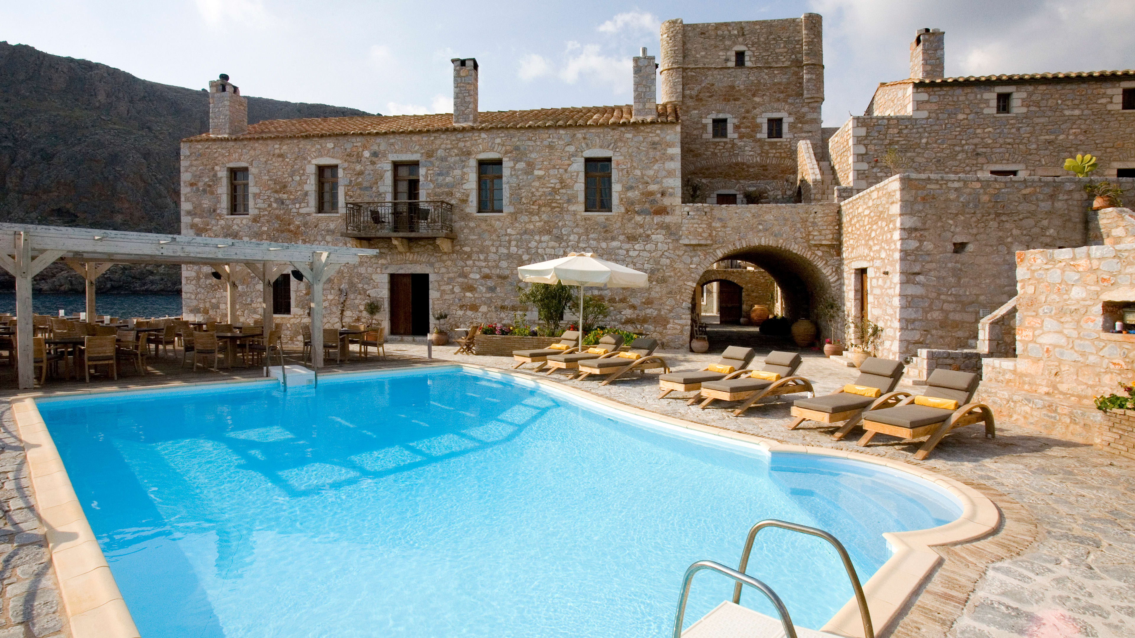 If you’re ever wanted by Interpol and need to get away (we don’t need to know specifics), Kyrimai Hotel would do nicely. The simple life – sun, sea, souvlaki – awaits you at this rustic 19th century fortress turned delightful boutique hotel at the end of the wild Mani peninsula, encircled by cerulean sea and scrubby countryside. You could happily live out your outlaw days dining on the deliciously authentic Maniot cuisine, swimming languid laps in the bay-gazing pool and befriending the local fishermen. Just send us a cryptic postcard once in a while.