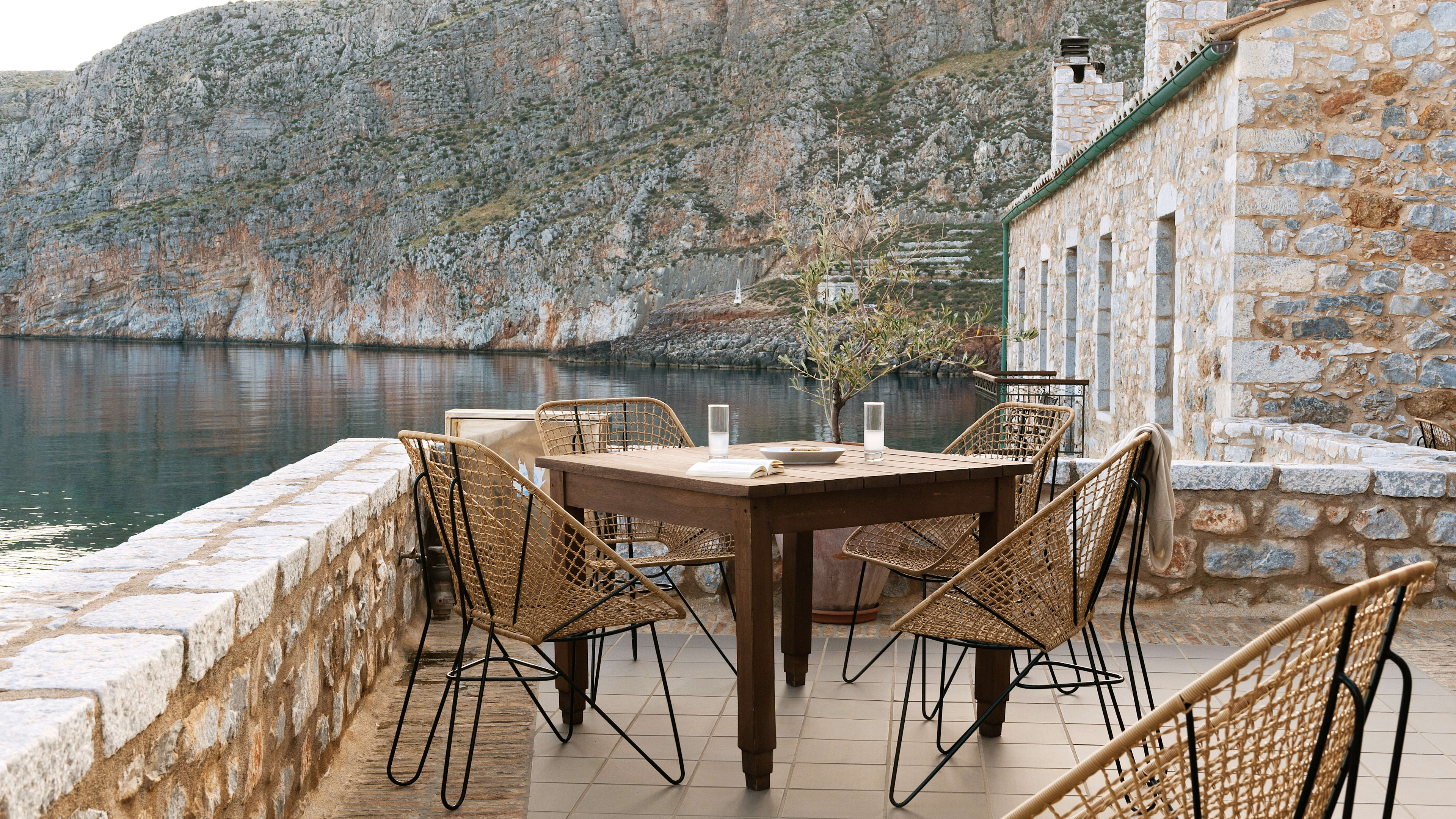 The closest airport is Kalamata, two and a half hours’ drive from the hotel. Outside of the summer season (May to October), you’ll need to fly into Athens, a four-hour drive away. The hotel can organise transfers – it’s €150 each way from Kalamata and €300 each way from Athens – but we recommend renting your own set of wheels so you’re free to roam.