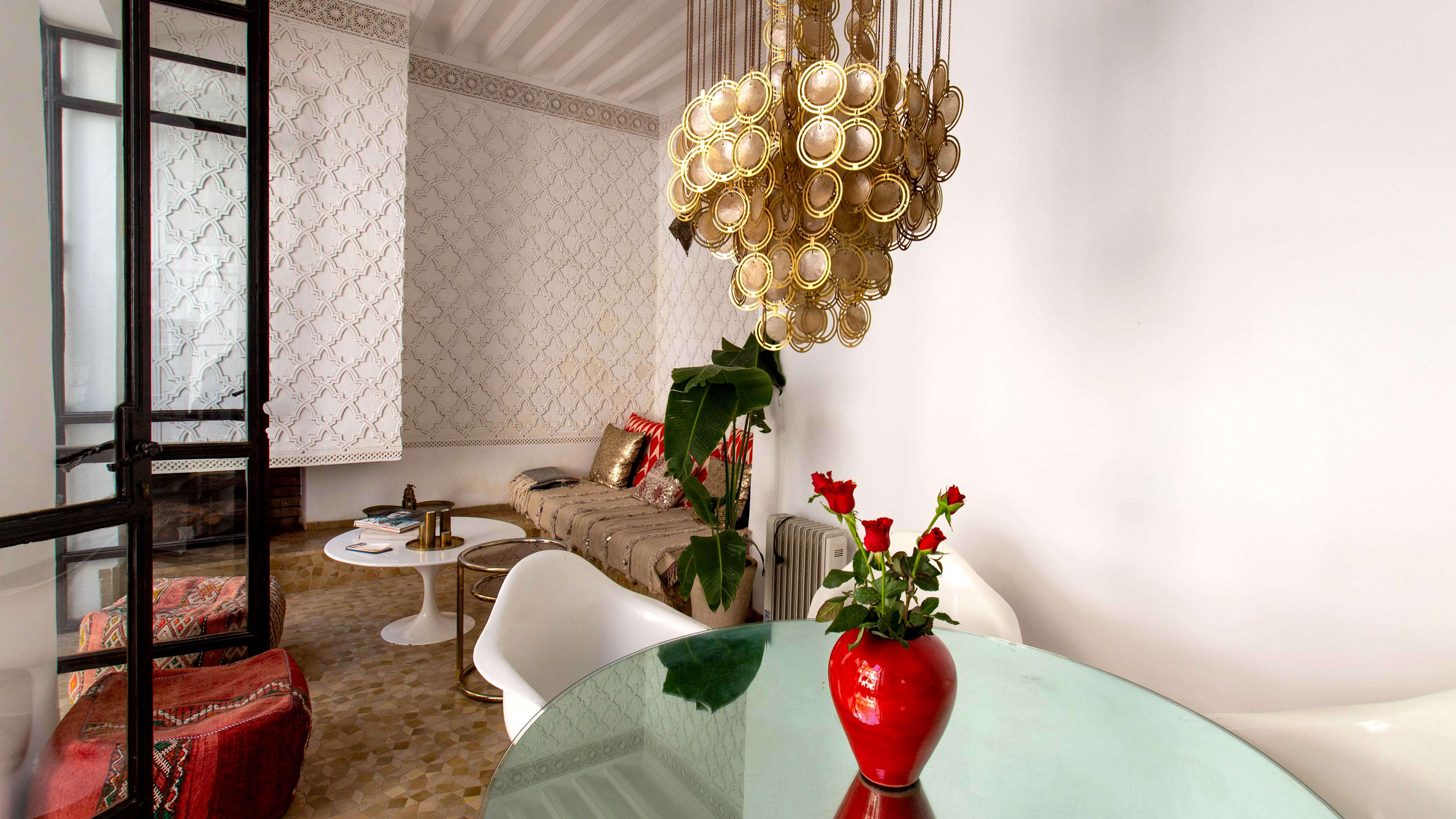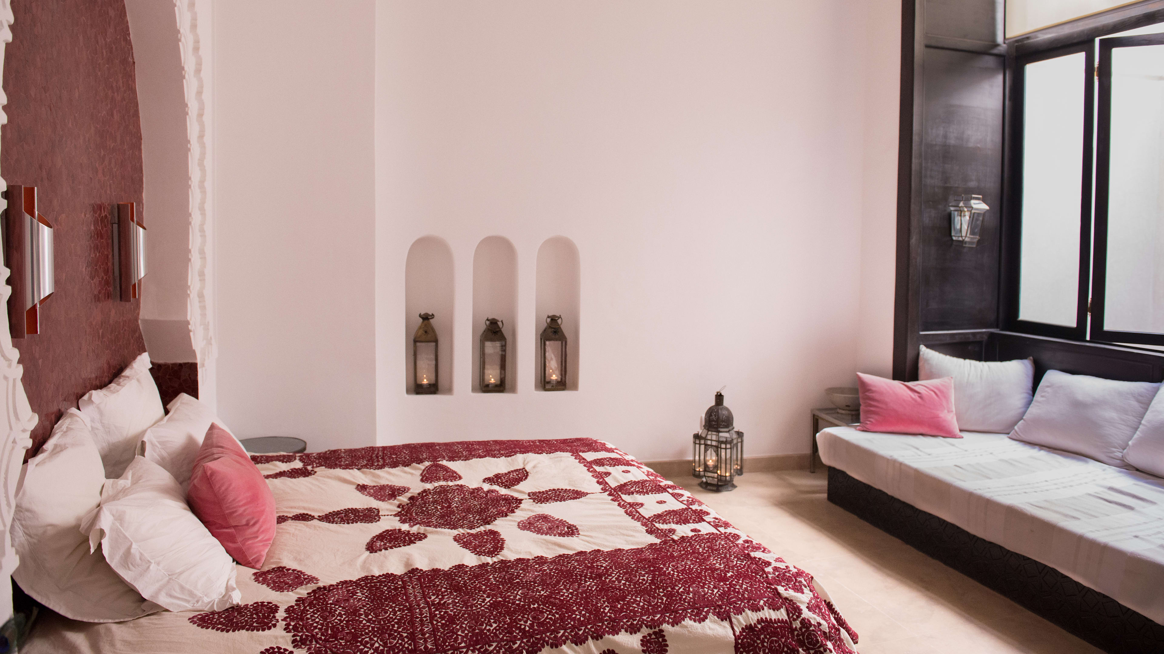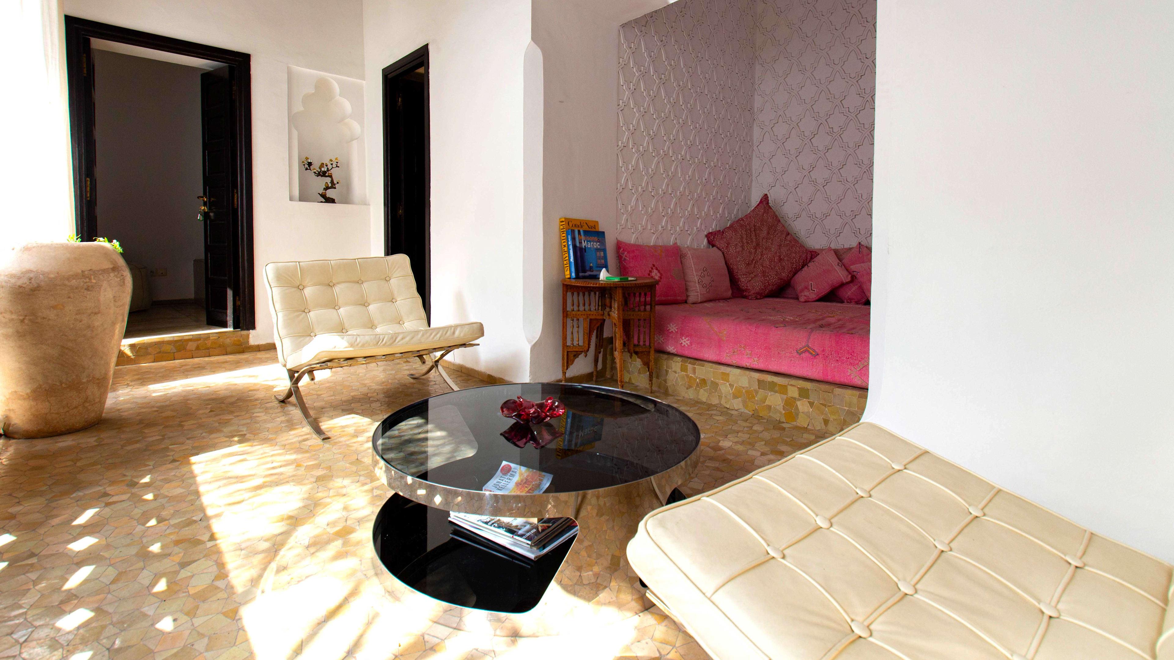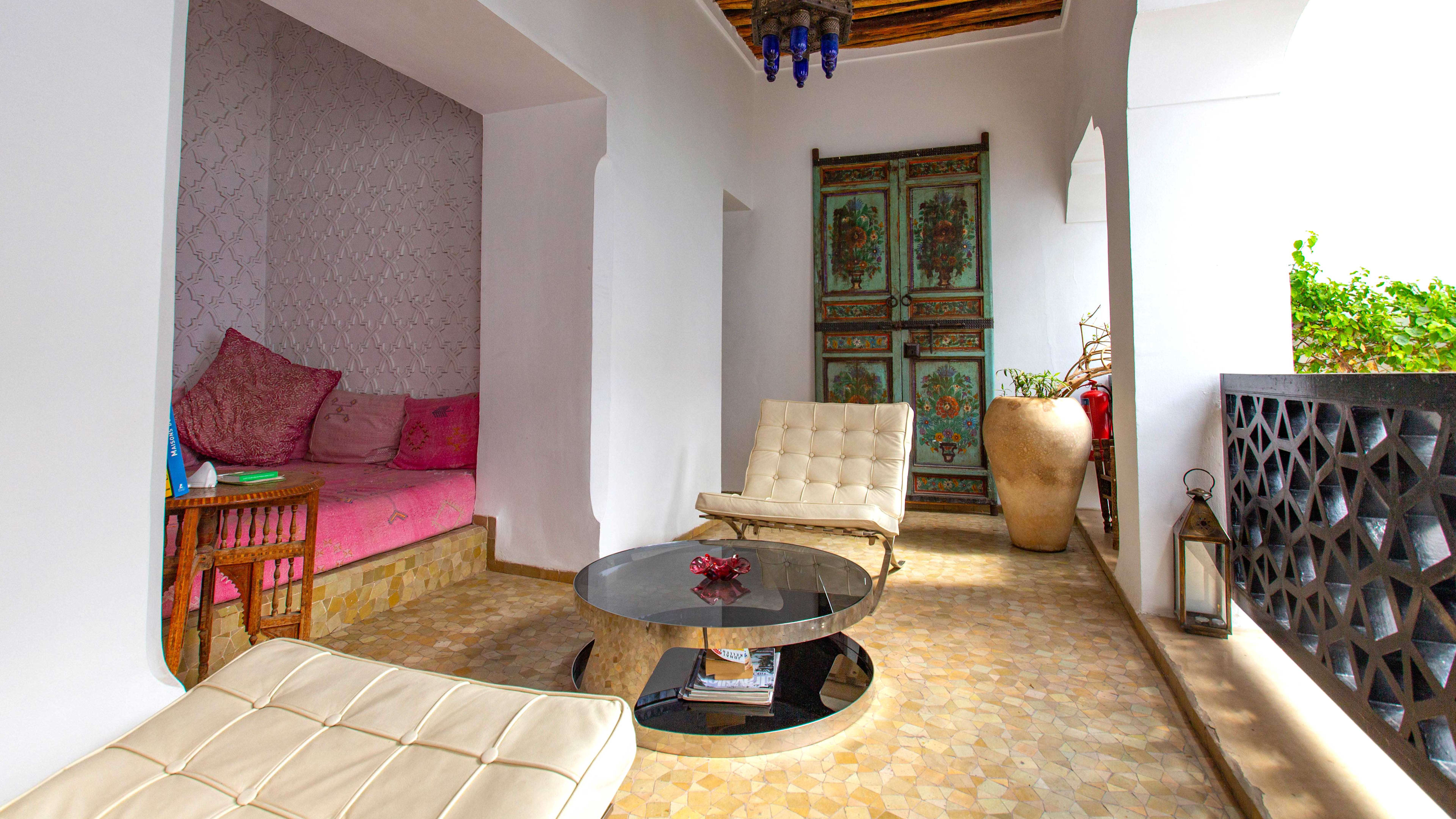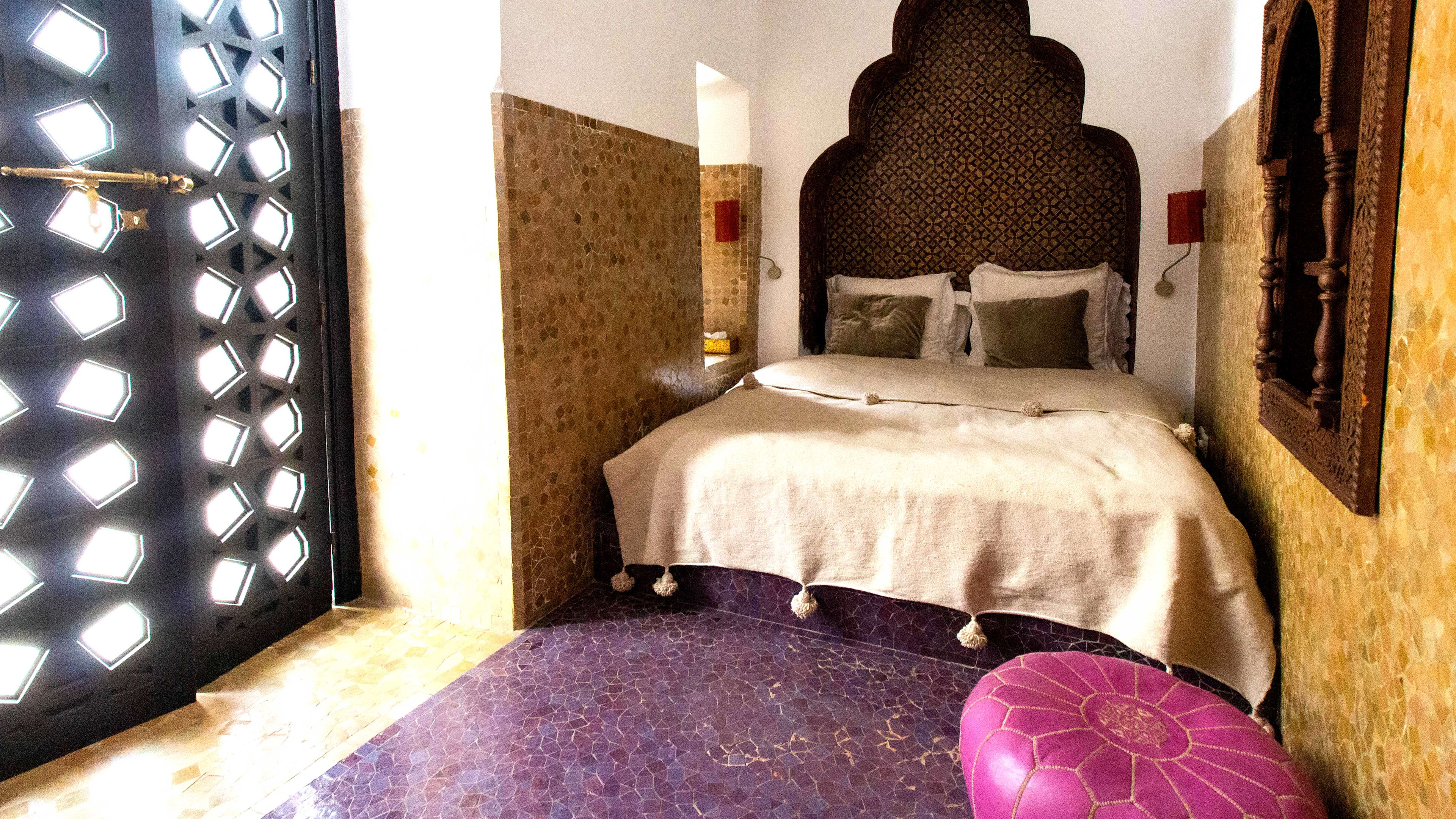 The Wangarata Room is playfully decorated with an eclectic mix of Americana pinball mirrors, Sixties Moroccan photographs and even a Swedish moose. Peruche has a bird motif in warm shades of pink and aubergine; it also has the largest vaulted bathroom. The White Room is the largest in the riad and has a balcony overlooking the courtyard.